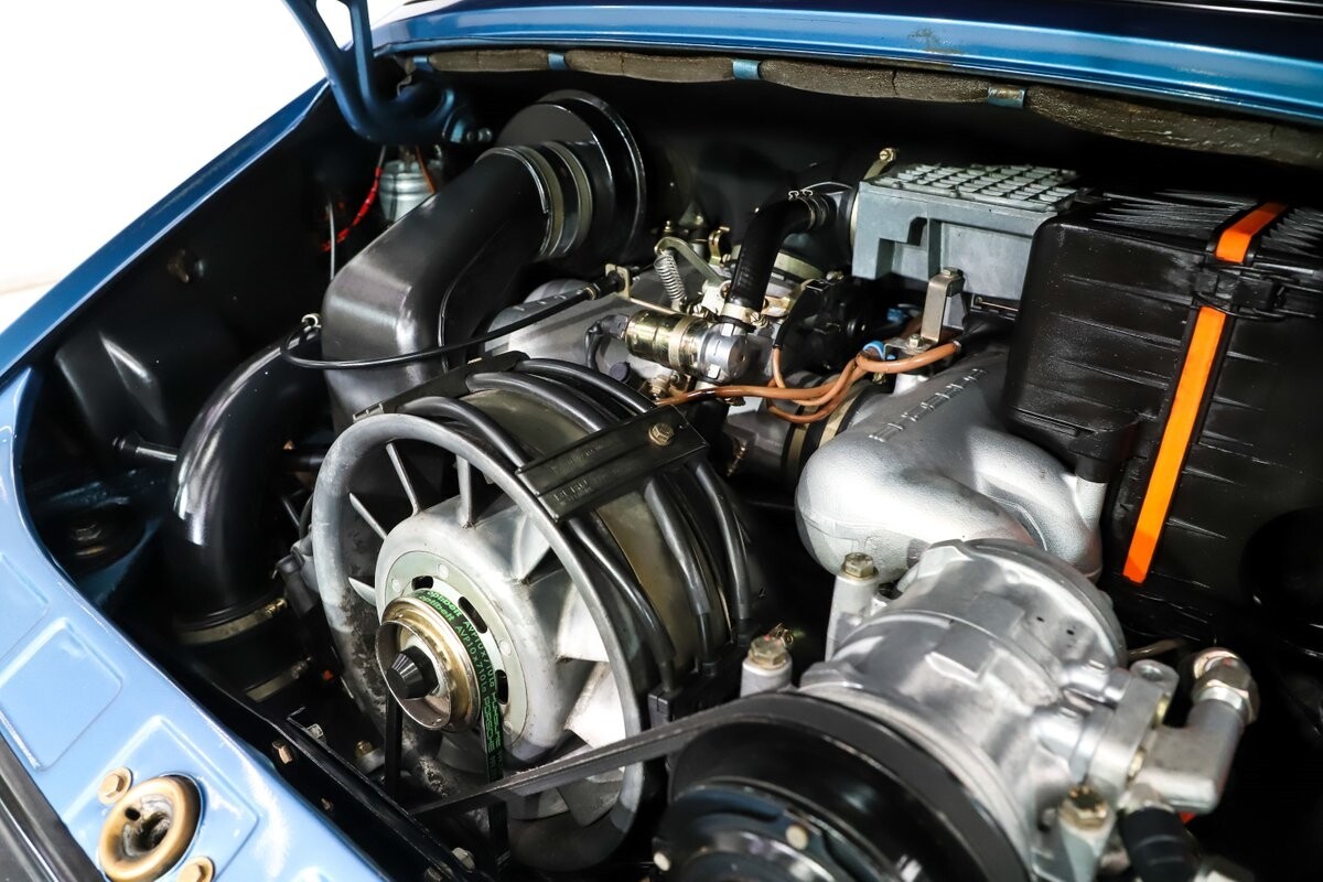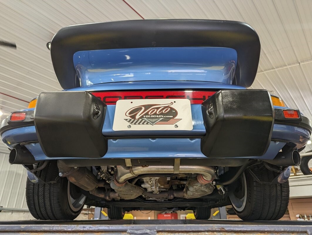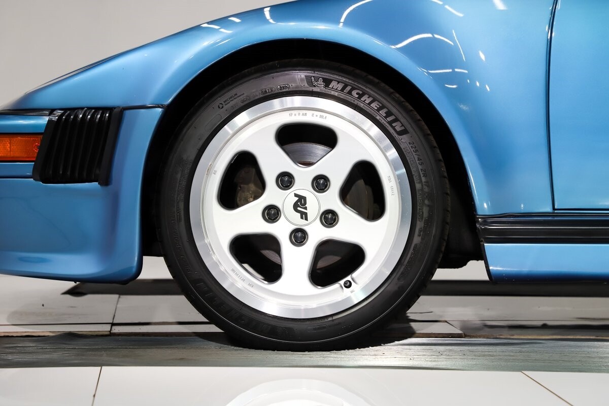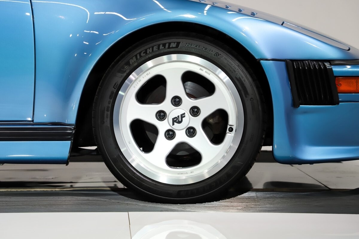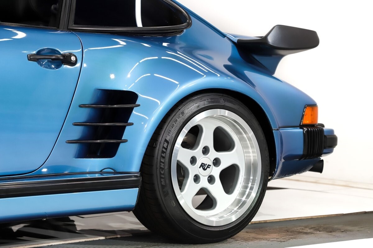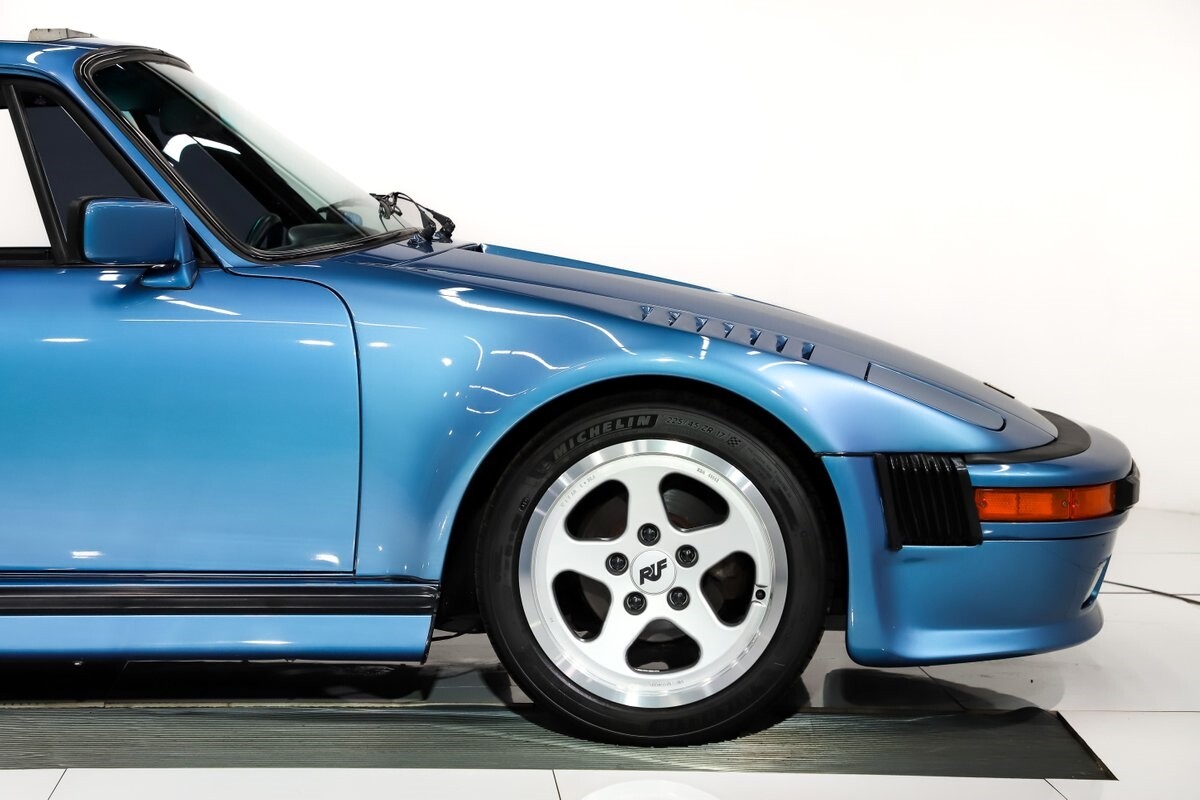 EXTERIOR: The body is stunning! RUF slantnose started in the late 80's and were made in Germany; they are very rare with under 100 made. Somehow this lucky owner was able to import a genuine RUF kit from Germany and converted his car here in the states. Take note of the steel wide body fenders, aluminum front and rear bonnet lids, and the fiberglass bumpers. They are all genuine RUF pieces. The staggered 17" RUF speed line wheels are polished aluminum and gorgeous. They are wrapped in a new Michelin pilot sport tire. Also, there is a rare sliding electric sunroof in working condition. The paint is finished in a rare early 70's Gemini blue metallic which is the original paint code of this 911. It was repainted when the conversion was done and shows very well with some small blemishes here and there. (Refer to our YouTube video to see the pointed-out flaws)