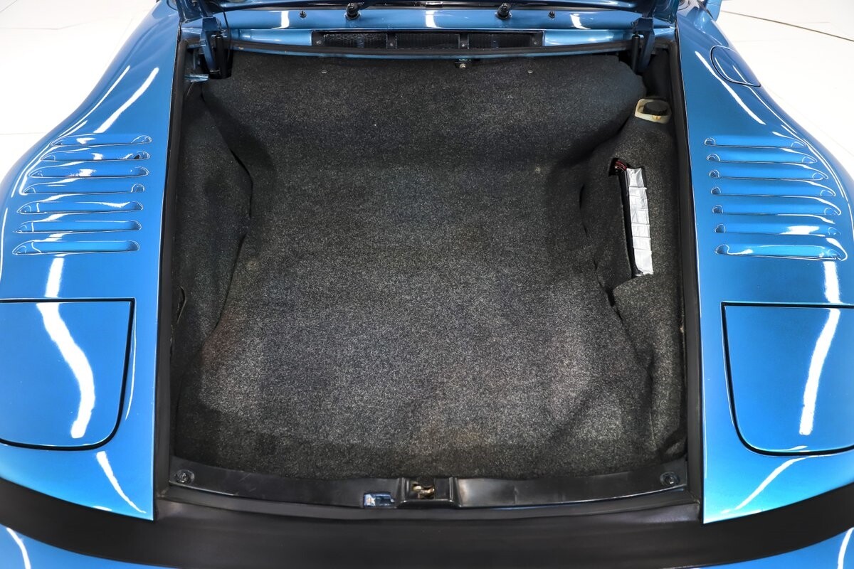 TRUNK COMPARTMENT: The frunk is in great shape as well, It has a complete carpet kit that's in nice shape. Underneath is the original spare tire as well as the factory jack and tool kit. The battery has been replaced and sits to the side of the spare. All the jambs are painted glossy and the hinges are functional and hold the bonnet up. Included is a car cover that fits nicely to the car.
