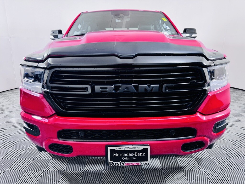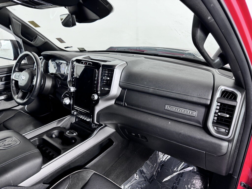 CARFAX One-Owner. Clean CARFAX. Flame Red Clearcoat 2022 Ram 1500 Laramie 4WD 8-Speed Automatic HEMI 5.7L V8 Multi Displacement VVT GPS Navigation, Back Up Camera, Leather, 1500 Laramie, 4D Crew Cab, HEMI 5.7L V8 Multi Displacement VVT, 8-Speed Automatic, 4WD, Flame Red Clearcoat, Black Leather, #1 Seat Foam Cushion, 2nd Row In Floor Storage Bins, 3 Rear Seat Head Restraints, 4 Way Front Headrests, 4G LTE Wi-Fi Hot Spot, 8.4 Touchscreen Display, Accent Color Premium Power Mirrors, All R1 High Radios, All Radio Equipped Vehicles, Apple CarPlay, Auto High Beam Headlamp Control, Auto-Dimming Exterior Driver Mirror, Black Exterior Truck Badging, Black Headlamp Bezels, Black Interior Accents, Black Painted Exterior Mirrors Caps, Blind Spot & Cross Path Detection, Body Color Door Handles, Body Color Front Bumper, Body Color Rear Bumper w/Step Pads, Bucket Seats, Connected Travel & Traffic Services, Connectivity - US/Canada, Convex Wide-Angle Mirror Insert, Delete LED Lamp - Floor Console Bin, Disassociated Touchscreen Display, Driver Seat Memory, Dual Exhaust w/Black Tips, Exterior Mirrors Courtesy Lamps, Exterior Mirrors w/Heating Element, Exterior Mirrors w/Memory, Exterior Mirrors w/Supplemental Signals, Foam Bottle Insert (Door Trim Panel), For Details, Visit , For More Info, Call855-202-9672, Front Seat Back Map Pockets, Full Length Upgraded Floor Console, Global Telematics Box Module (TBM), Google Android Auto, GPS Antenna Input, GPS Navigation, Grille Surround 3 Black Texture 2 Black, harman/kardon 19 Speaker Premium Sound, HD Radio, Heated Front Seats, Heated Steering Wheel, Integrated Center Stack Radio, Integrated Voice Command w/Bluetooth, Laramie Level II Equipment Group, Leather Trimmed Bucket Seats, Mopar Black Tubular Side Steps, Night Edition, ParkSense Front/Rear Park Assist w/Stop, Power 2-Way Driver Lumbar Adjust, Power 2-Way Passenger Lumbar Adjust, Power 8-Way Driver & Passenger Seats, Power-Folding Mirrors, Quick Order Package 25H Laramie, Radio: Uconnect 5 Nav w/8.4 Display, Rain Sensitive Windshield Wipers, Rear 60/40 Folding Seat, Remote Tailgate Release, SiriusXM Radio Service, SiriusXM w/360L, Sport Performance Hood, Twill Film Appliques, USB Host Flip, Ventilated Front Seats, Wireless Charging Pad.
