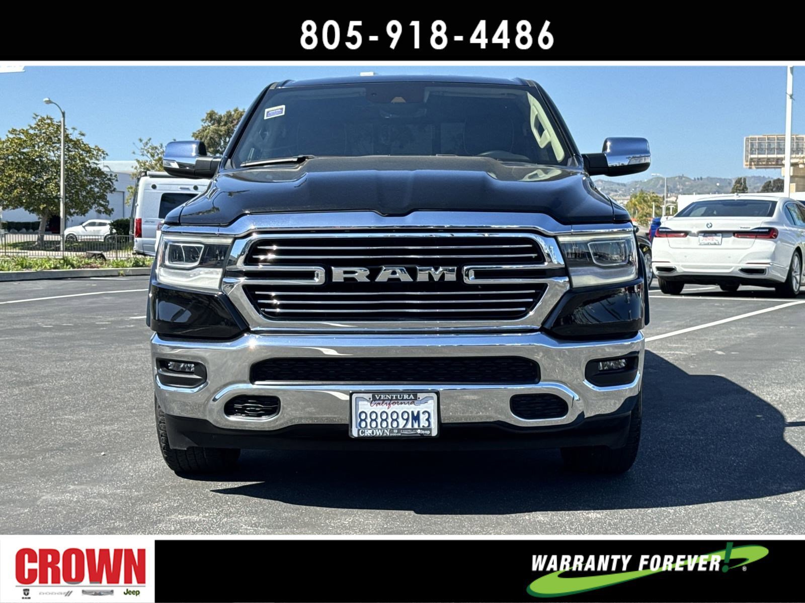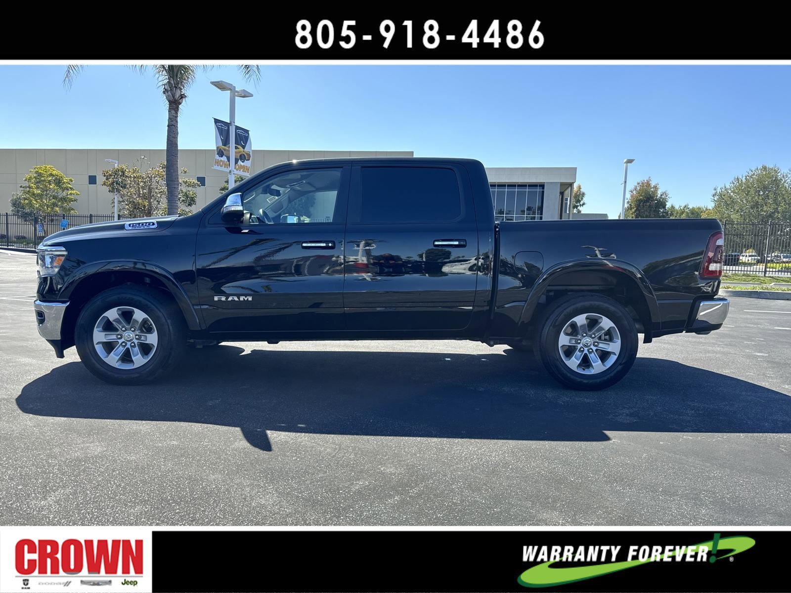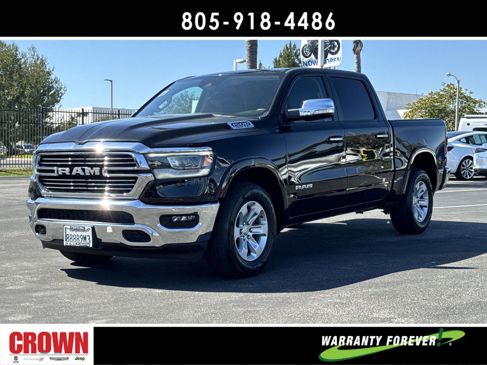 Certified. Diamond Black Crystal Pearlcoat 2021 Ram 1500 Laramie RWD 8-Speed Automatic HEMI 5.7L V8 Multi Displacement VVT 4G LTE Wi-Fi Hot Spot, 5-Year SiriusXM Travel Link Service, 8.4 Touchscreen Display, Apple CarPlay, Automatic temperature control, Disassociated Touchscreen Display, Driver Seat Memory, Front dual zone A/C, Front fog lights, Fully automatic headlights, Garage door transmitter, Google Android Auto, GPS Antenna Input, GPS Navigation, HD Radio, Heated Front Seats, Heated steering wheel, Illuminated entry, Integrated Center Stack Radio, Integrated Voice Command w/Bluetooth, Leather Trim 40/20/40 Bench Seat, Memory seat, Outside temperature display, Overhead console, ParkView Rear Back-Up Camera, Power 8-Way Driver & Passenger Seats, Quick Order Package 25H Laramie (DISC), Radio: Uconnect 4C Nav w/8.4 Display, Remote keyless entry, Security system, SiriusXM Radio Service, SiriusXM Satellite Radio, SiriusXM Traffic Plus, SiriusXM Travel Link, Split folding rear seat, Steering wheel mounted audio controls, USB Host Flip, Ventilated Front Seats, Wheels: 18 x 8 Aluminum Base Painted.Odometer is 19698 miles below market average!FCA US LLC Certified Pre-Owned Details:* Limited Warranty: 3 Month/3,000 Mile (whichever comes first) after new car warranty expires or from certified purchase date* Vehicle History* Warranty Deductible: $100* Transferable Warranty* Roadside Assistance* Includes First Day Rental, Car Rental Allowance, and Trip Interruption Benefits. SiriusXM 3 month trial subscription.* Powertrain Limited Warranty: 84 Month/100,000 Mile (whichever comes first) from original in-service date* 125 Point InspectionAwards:* JD Power Automotive Performance, Execution and Layout (APEAL) Study * Motor Trend Automobiles of the yearHere at Crown Dodge Chrysler Jeep RAM, we believe that great service means more than just offering our new Dodge, Chrysler, Jeep, and RAM lineup. We believe that great service also includes helpful advice, friendly car financing, and the highest quality parts and repairs for your car. Our staff works hard to make your full automotive experience at our car dealership in Ventura, CA enjoyable, and we look forward to helping you today! All vehicles at Crown Dodge have our SWAT security system $995,Clear Shield $395, Pulse $395, Wheel Locks $395, Windshield Protection $995, Nitro Fill $499, Screen Protector $395 and $1295 Paint/Fabric Protection pre-installed. Prices on the website do not include dealer-added equipment. Discounts include $2,000 Trade-In Dealer Assist Cash. Must trade in a 2015 or newer vehicle on a retail purchase. Trade-in must have less than 15,000 miles on average per year stated on Carfax Report, clean title, and Clean vehicle history report. Expires 02/19/2024. Expires 02/29/2024.