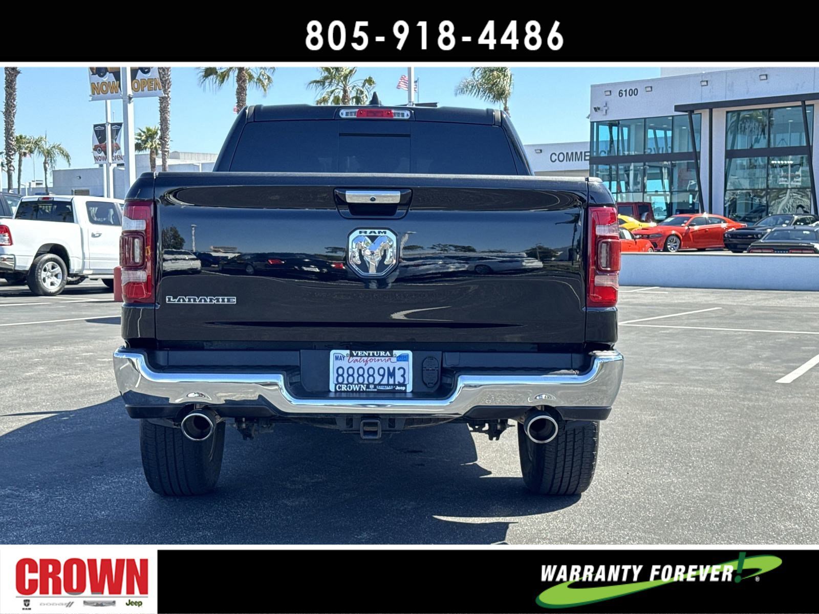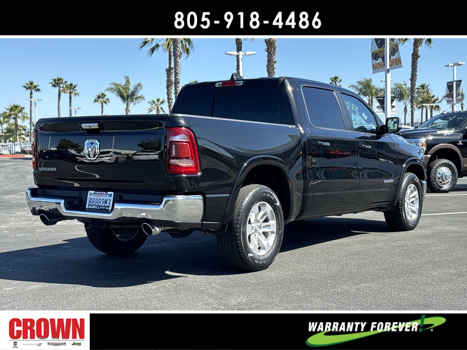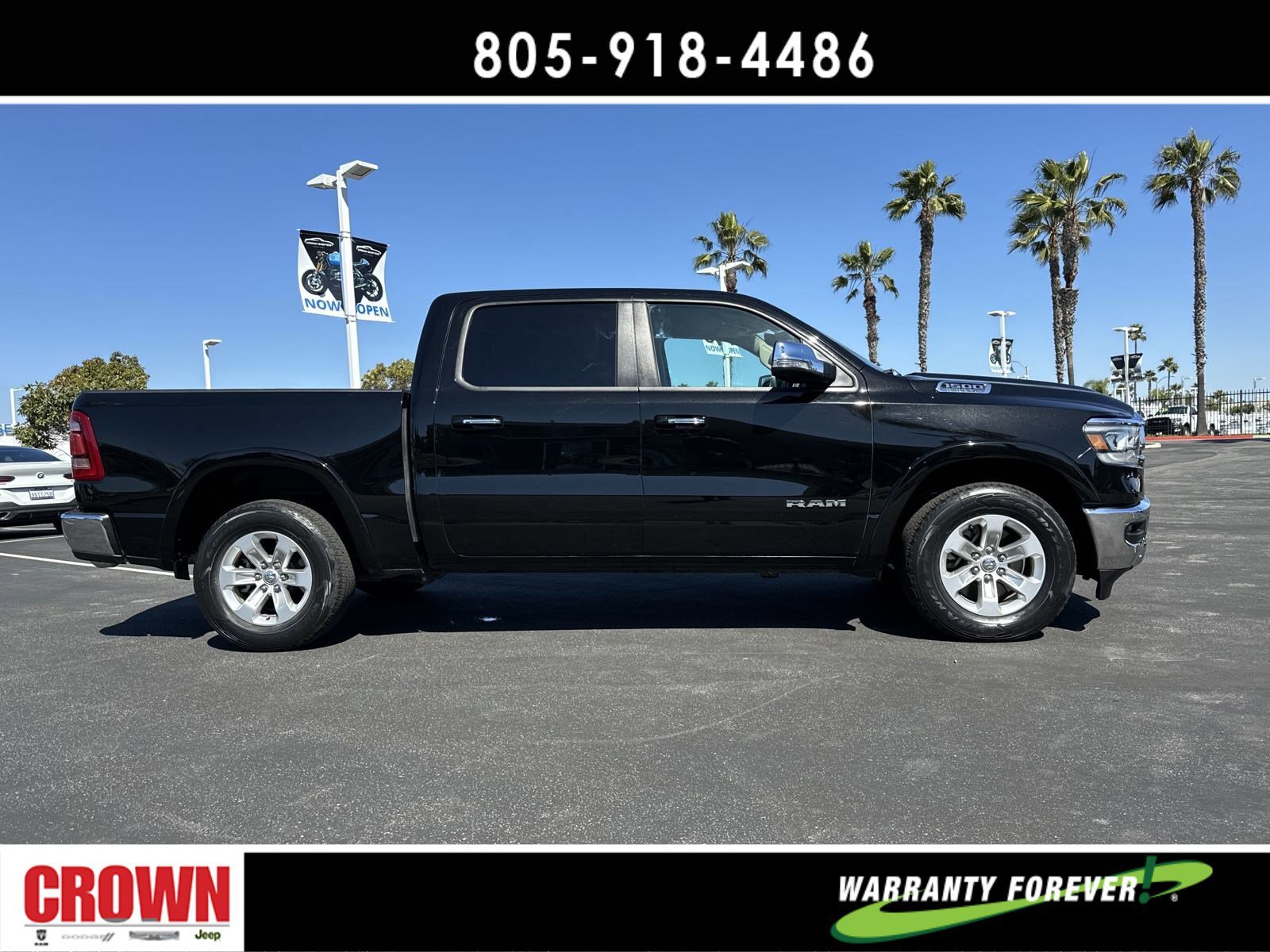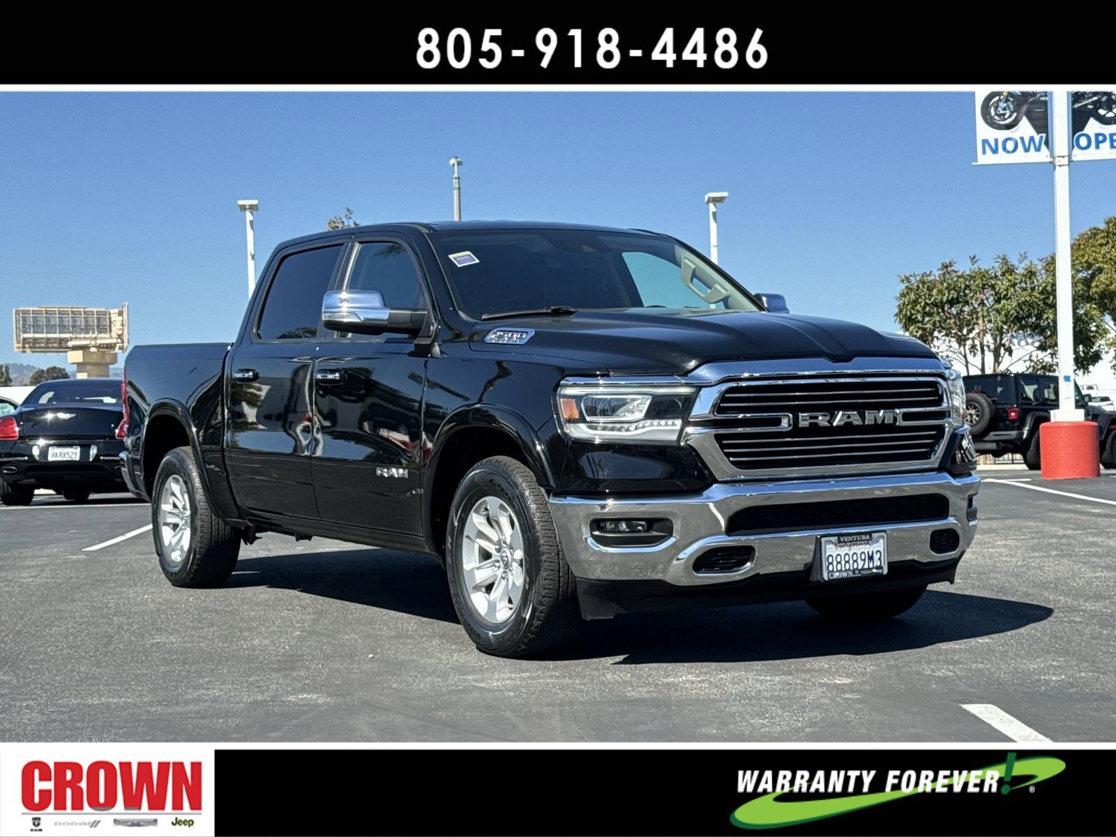 Certified. Diamond Black Crystal Pearlcoat 2021 Ram 1500 Laramie RWD 8-Speed Automatic HEMI 5.7L V8 Multi Displacement VVT 4G LTE Wi-Fi Hot Spot, 5-Year SiriusXM Travel Link Service, 8.4 Touchscreen Display, Apple CarPlay, Automatic temperature control, Disassociated Touchscreen Display, Driver Seat Memory, Front dual zone A/C, Front fog lights, Fully automatic headlights, Garage door transmitter, Google Android Auto, GPS Antenna Input, GPS Navigation, HD Radio, Heated Front Seats, Heated steering wheel, Illuminated entry, Integrated Center Stack Radio, Integrated Voice Command w/Bluetooth, Leather Trim 40/20/40 Bench Seat, Memory seat, Outside temperature display, Overhead console, ParkView Rear Back-Up Camera, Power 8-Way Driver & Passenger Seats, Quick Order Package 25H Laramie (DISC), Radio: Uconnect 4C Nav w/8.4 Display, Remote keyless entry, Security system, SiriusXM Radio Service, SiriusXM Satellite Radio, SiriusXM Traffic Plus, SiriusXM Travel Link, Split folding rear seat, Steering wheel mounted audio controls, USB Host Flip, Ventilated Front Seats, Wheels: 18 x 8 Aluminum Base Painted.Odometer is 19698 miles below market average!FCA US LLC Certified Pre-Owned Details:* Limited Warranty: 3 Month/3,000 Mile (whichever comes first) after new car warranty expires or from certified purchase date* Vehicle History* Warranty Deductible: $100* Transferable Warranty* Roadside Assistance* Includes First Day Rental, Car Rental Allowance, and Trip Interruption Benefits. SiriusXM 3 month trial subscription.* Powertrain Limited Warranty: 84 Month/100,000 Mile (whichever comes first) from original in-service date* 125 Point InspectionAwards:* JD Power Automotive Performance, Execution and Layout (APEAL) Study * Motor Trend Automobiles of the yearHere at Crown Dodge Chrysler Jeep RAM, we believe that great service means more than just offering our new Dodge, Chrysler, Jeep, and RAM lineup. We believe that great service also includes helpful advice, friendly car financing, and the highest quality parts and repairs for your car. Our staff works hard to make your full automotive experience at our car dealership in Ventura, CA enjoyable, and we look forward to helping you today! All vehicles at Crown Dodge have our SWAT security system $995,Clear Shield $395, Pulse $395, Wheel Locks $395, Windshield Protection $995, Nitro Fill $499, Screen Protector $395 and $1295 Paint/Fabric Protection pre-installed. Prices on the website do not include dealer-added equipment. Discounts include $2,000 Trade-In Dealer Assist Cash. Must trade in a 2015 or newer vehicle on a retail purchase. Trade-in must have less than 15,000 miles on average per year stated on Carfax Report, clean title, and Clean vehicle history report. Expires 02/19/2024. Expires 02/29/2024.