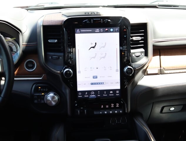Our Diesel powered 2022 RAM 1500 Longhorn Crew Cab 4X4 can make every month feel like Truck Month in Delmonico Red Pearl! Motivated by a TurboCharged 3.0 Liter EcoDiesel V6 providing 260hp and 480lb-ft of torque to an 8 Speed Automatic transmission. Heavy-duty shocks add further capability, and this Four Wheel Drive truck returns nearly 29mpg on the highway. RAM also brings you a bold design with LED lighting, fog lamps, a Mopar spray-in bed liner, upsized 20-inch wheels, power running boards, and chrome accents. Exclusive upscale accommodations are waiting for you in our Longhorn cabin. It pampers you with heated/ventilated leather front and heated rear seats, a heated wood/leather steering wheel, wireless charging, dual-zone automatic climate control, and head-up display. An upgraded Uconnect 5 Nav infotainment system keeps your world close at hand with a 12-inch touchscreen, full-color navigation, WiFi compatibility, Android Auto /Apple CarPlay®, Bluetooth®, voice recognition, and Harman/Kardon® premium sound system. RAM promotes peace of mind with intelligent safety measures such as a backup camera, blind spot and cross-path detection, parallel/perpendicular park assist, pedestrian emergency braking, forward collision warning, front/rear automatic braking, parking sensors, digital rearview mirror, stability/traction control, hill-start assist, and more. You're ready to rock when driving our 1500 Longhorn! Save this Page and Call for Availability. We Know You Will Enjoy Your Test Drive Towards Ownership!