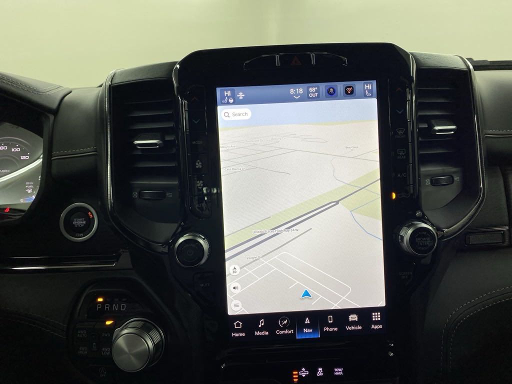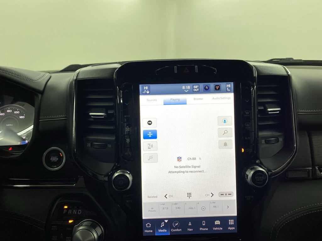 ABS brakes, Accent Color Door Handles, Accent Color Premium Power Mirrors, Alloy wheels, Auto-Dimming Exterior Driver Mirror, Black Day Light Opening Moldings, Black Exterior Truck Badging, Black Grille Surround Texture 7 Black, Black Headlamp Bezels, Black Painted Exterior Mirrors Caps, Body Color Front Bumper, Body Color Rear Bumper w/Step Pads, Compass, Convex Wide-Angle Exterior Mirror Insert, Dual Exhaust w/Black Tips, Electronic Stability Control, Exterior Mirrors Courtesy Lamps, Exterior Mirrors w/Heating Element, Exterior Mirrors w/Memory, Exterior Mirrors w/Supplemental Signals, Front dual zone A/C, harman/kardon 19 Speaker Premium Sound, Heated door mirrors, Heated Front Seats, Heated Front Seats, Heated rear seats, Heated Second Row Seats, Illuminated entry, Low tire pressure warning, Navigation System, Night Edition, ParkView Rear Back-Up Camera, Power-Folding Mirrors, RAM Grille Badge - Black, Remote keyless entry, Sport Performance Hood, Tow Hooks, Traction control, Tri-Fold Tonneau Cover, Wheels: 22 x 9 Black Aluminum. 4WD HEMI 5.7L V8 Multi Displacement VVT eTorque