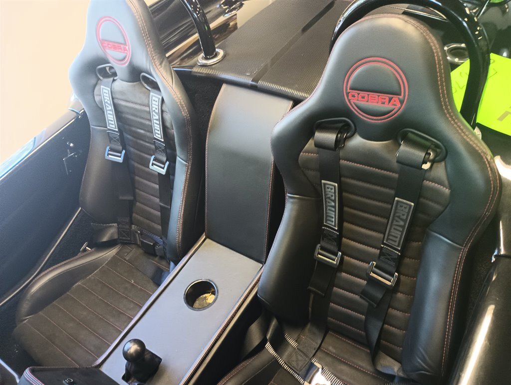Powerfull and Fast 1965 Factory Five Shelby Cobra Replica (titled as a 2013). Professionally built and modified with a POWERFUL 6.2 liter LS3 V8 engine, 4-speed manual transmission, power steering, roll bar, side pipes, push button starter, Braum racing seats with racing belts, carbon fiber dual stripes and hood scoop, speed hunt gauges and 18-in custom wheels.