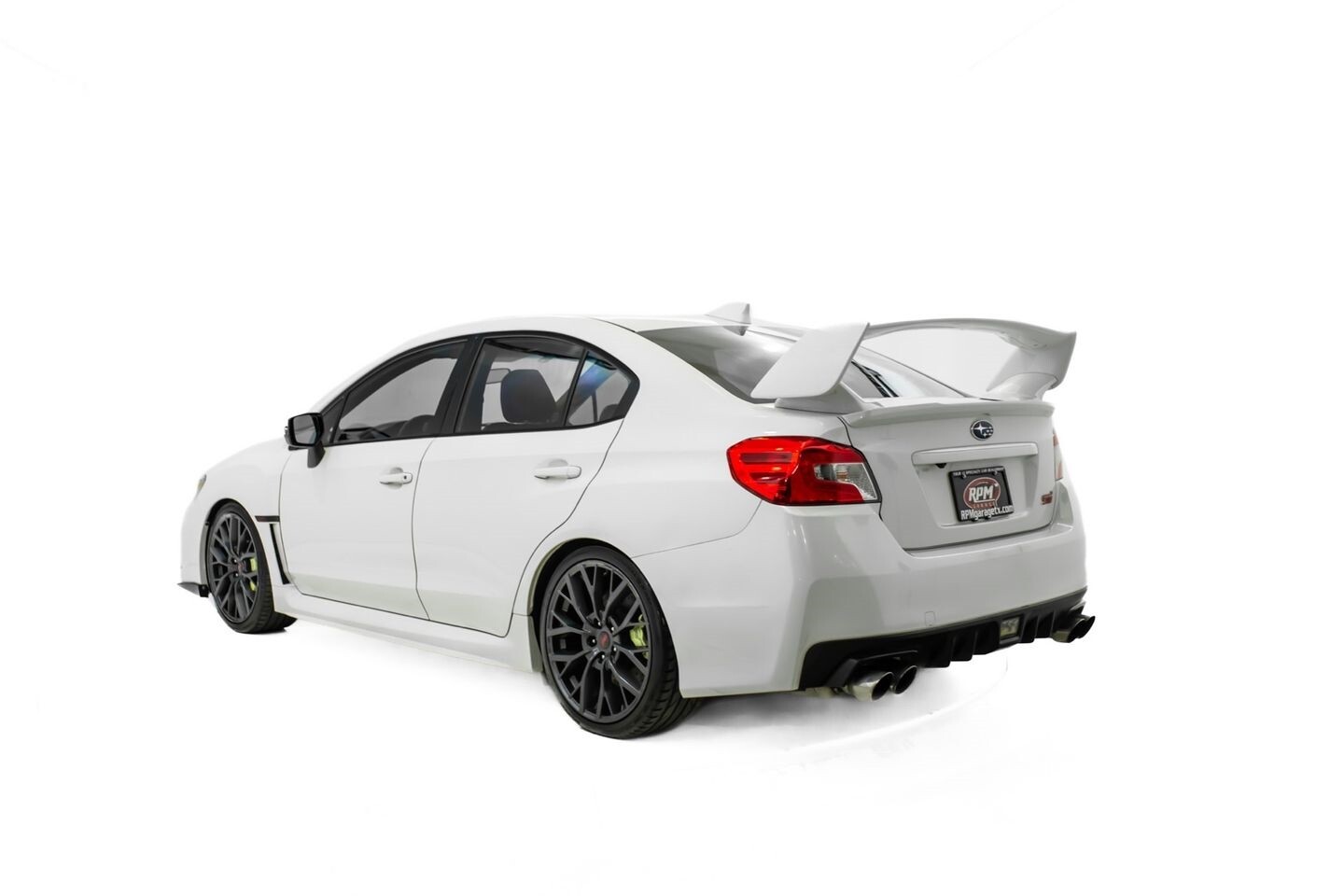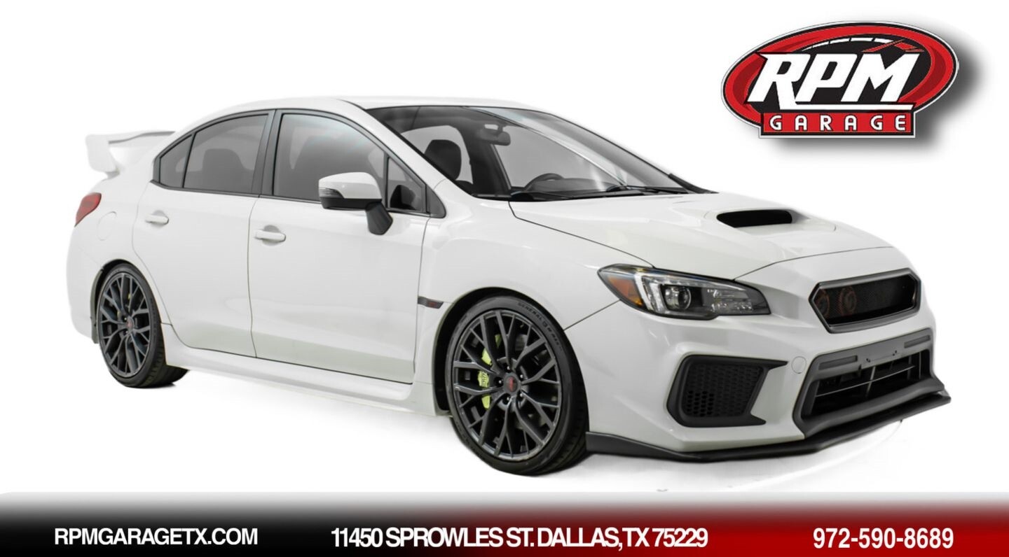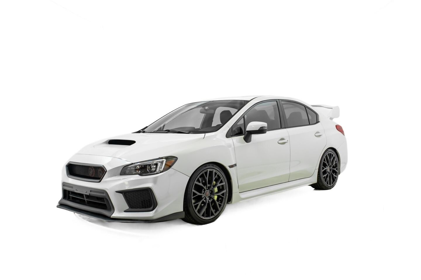 This 2018 Subaru WRX STI Limited is an iconic sedan with decades of rally heritage. Under the hood, a turbocharged 2.5-liter boxer four-cylinder engine produces 305 horsepower and 290 lb-ft of torque, all of which is sent through a six-speed manual transmission to all four wheels. The engine is not stock, however, having received a Cobb cold-air intake, an ETS top-mount Intercooler, an IAG V3 Street Series air/oil separator, a Tomei cold-side silicone turbo inlet, an Aeromotive fuel pressure regulator, and an aftermarket exhaust manifold, among other modifications. This [VEHICLE TYPE] comes equipped with OEM 18" STI wheels and is finished in Crystal White Pearl, a shining color that highlights the sleek lines of the exterior. In the interior, this WRX STI offers heated leather bucket seats, push-to-start, "STI" floor mats, a flat-bottomed leather "STI" steering wheel, selectable drive modes and differential settings, multi-zone A/C, dash-mounted digital gauges, and an infotainment system with Bluetooth, apps, phone connectivity, CD, and AUX, truly making this car the complete package.