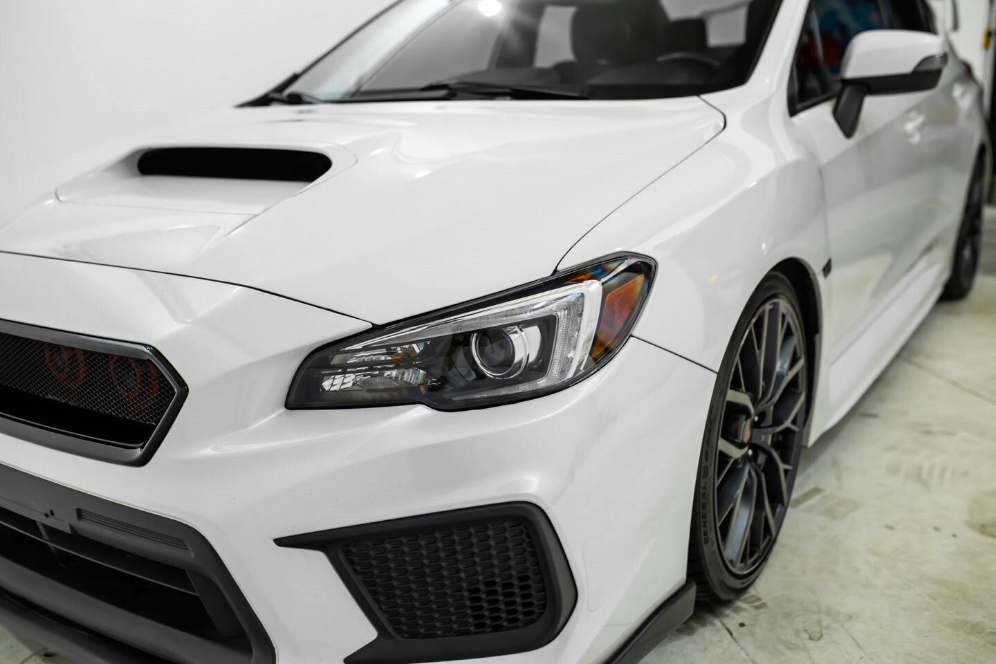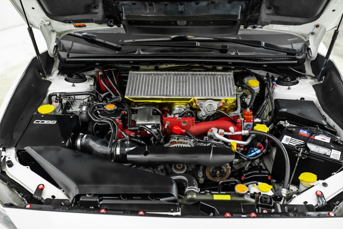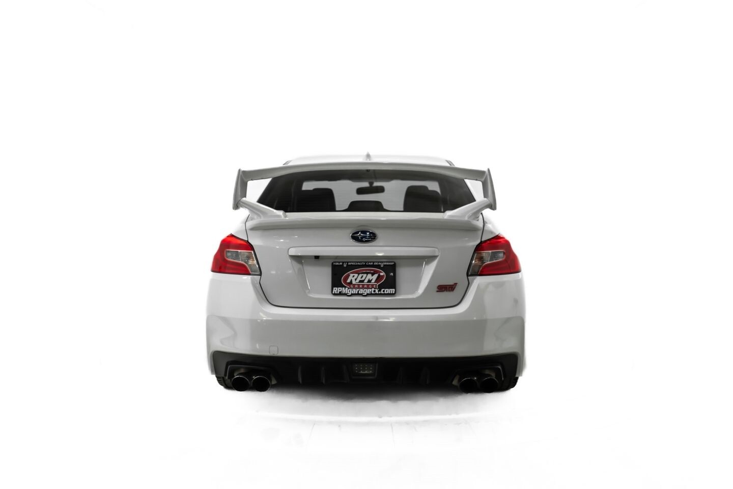 This 2018 Subaru WRX STI Limited is an iconic sedan with decades of rally heritage. Under the hood, a turbocharged 2.5-liter boxer four-cylinder engine produces 305 horsepower and 290 lb-ft of torque, all of which is sent through a six-speed manual transmission to all four wheels. The engine is not stock, however, having received a Cobb cold-air intake, an ETS top-mount Intercooler, an IAG V3 Street Series air/oil separator, a Tomei cold-side silicone turbo inlet, an Aeromotive fuel pressure regulator, and an aftermarket exhaust manifold, among other modifications. This [VEHICLE TYPE] comes equipped with OEM 18" STI wheels and is finished in Crystal White Pearl, a shining color that highlights the sleek lines of the exterior. In the interior, this WRX STI offers heated leather bucket seats, push-to-start, "STI" floor mats, a flat-bottomed leather "STI" steering wheel, selectable drive modes and differential settings, multi-zone A/C, dash-mounted digital gauges, and an infotainment system with Bluetooth, apps, phone connectivity, CD, and AUX, truly making this car the complete package.
