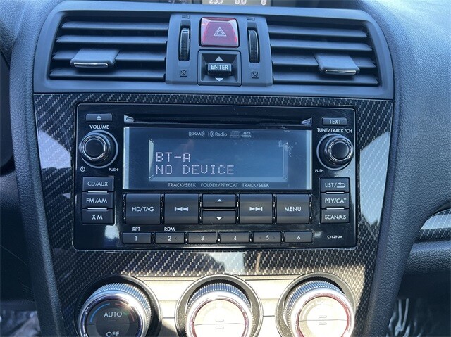 This Impreza WRX is nicely equipped with Standard Model, 4-Wheel Disc Brakes, 6 Speakers, ABS brakes, Air Conditioning, Alloy wheels, AM/FM radio: SiriusXM, Automatic temperature control, Brake assist, Bumpers: body-color, CD player, Checkered Cloth Upholstery, Driver door bin, Driver vanity mirror, Dual front impact airbags, Dual front side impact airbags, Electronic Stability Control, Exterior Parking Camera Rear, Four wheel independent suspension, Front anti-roll bar, Front Bucket Seats, Front Center Armrest, Front reading lights, Illuminated entry, Knee airbag, Leather Shift Knob, Low tire pressure warning, Occupant sensing airbag, Outside temperature display, Overhead airbag, Panic alarm, Passenger door bin, Passenger vanity mirror, Performance Design Front Bucket Seats, Power door mirrors, Power steering, Power windows, Radio data system, Radio: AM/FM/HD/MP3/WMA w/Single-Disc CD Player, Rear anti-roll bar, Rear seat center armrest, Rear window defroster, Remote keyless entry, Security system, Speed control, Speed-sensing steering, Split folding rear seat, Sport steering wheel, Steering wheel mounted audio controls, Tachometer, Telescoping steering wheel, Tilt steering wheel, Traction control, Trip computer, Variably intermittent wipers, and Wheels: 17 x 8.0J Aluminum Alloy/Dark Gray Finish.