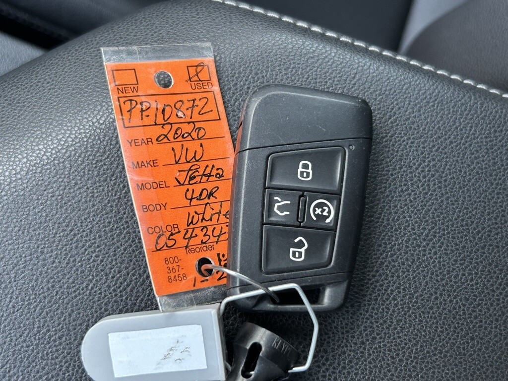 Certified. 2020 Volkswagen Jetta 4D Sedan Pure White 8-Speed Automatic 1.4T SE CARFAX One-Owner. LEATHER SEATS, MOONROOF, APPLE ANDROID CARPLAY, VW FACTORY CERTIFIED PRE-OWNED, Titan Black w/Perforated V-Tex Leatherette Seat Trim, ABS brakes, Alloy wheels, Electronic Stability Control, Front dual zone A/C, Front Wiper Heating Area At Bottom Of Windshield, Heated door mirrors, Heated Front Comfort Seats, Heated front seats, Heated Front Washer Nozzles, Heated Rear Outboard Seating Positions, Heated Steering Wheel, Illuminated entry, Low tire pressure warning, Power moonroof, Remote Engine Start w/Remote Key Fob, Remote keyless entry, SE Cold Weather Package, Traction control, Washer Fluid Level Indicator. FWD 1.4L TSI