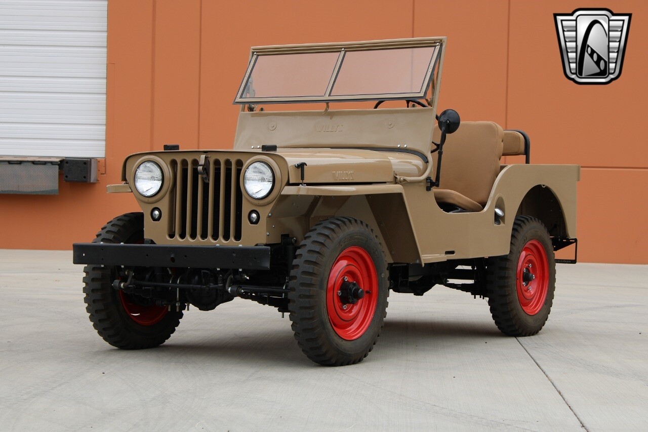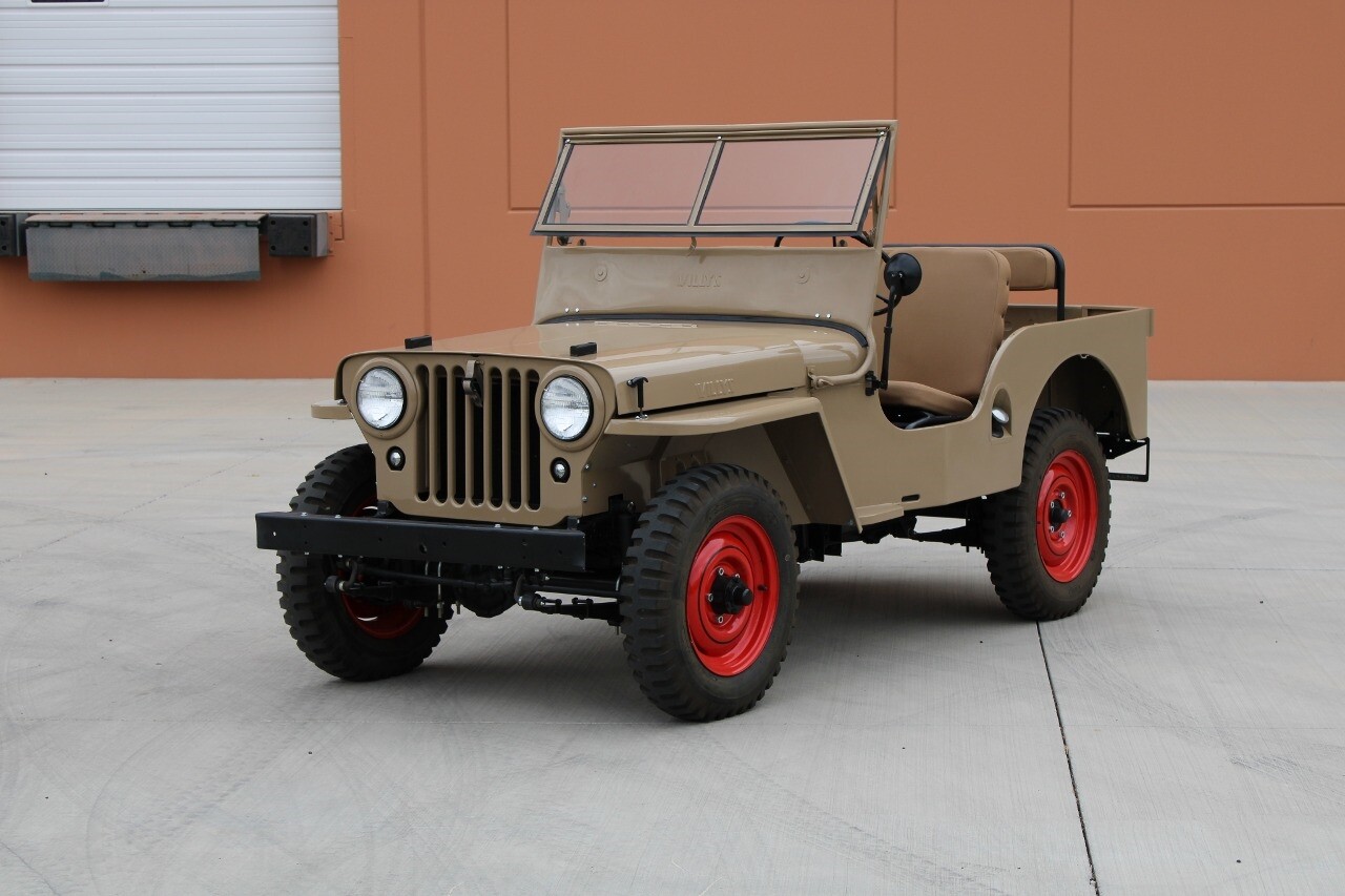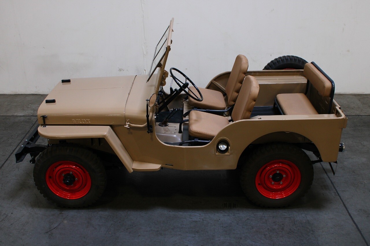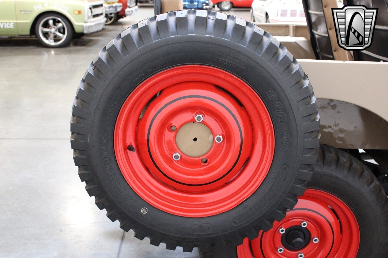 Introducing the 1946 Willys CJ2A, a true gem for collectors and enthusiasts of classic automobiles. This rare model stands out with its striking harvest tan exterior, a color that captures the essence of its era. The exterior is complemented by a matching harvest tan cloth interior, creating a cohesive and visually appealing aesthetic that is sure to turn heads wherever you go.