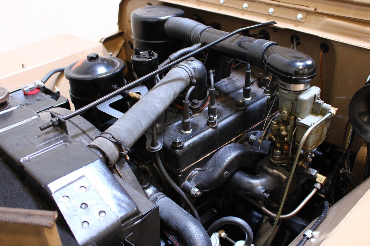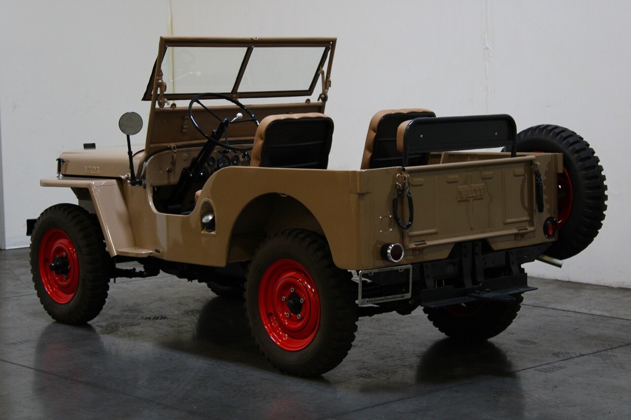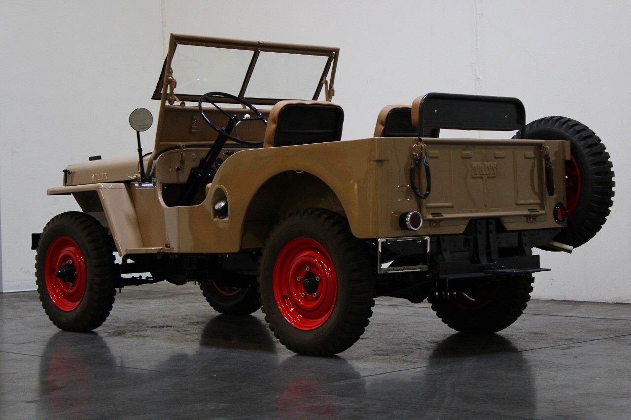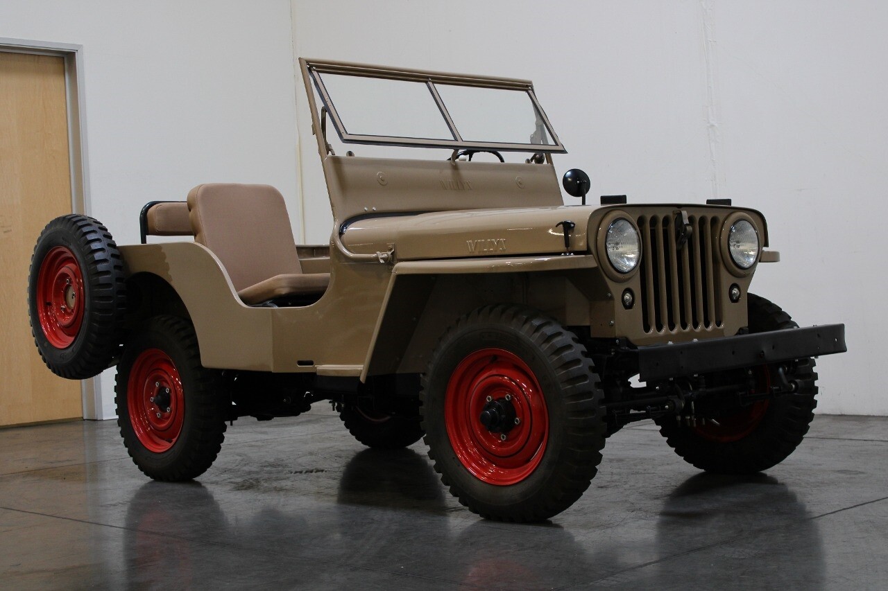 Introducing the 1946 Willys CJ2A, a true gem for collectors and enthusiasts of classic automobiles. This rare model stands out with its striking harvest tan exterior, a color that captures the essence of its era. The exterior is complemented by a matching harvest tan cloth interior, creating a cohesive and visually appealing aesthetic that is sure to turn heads wherever you go.