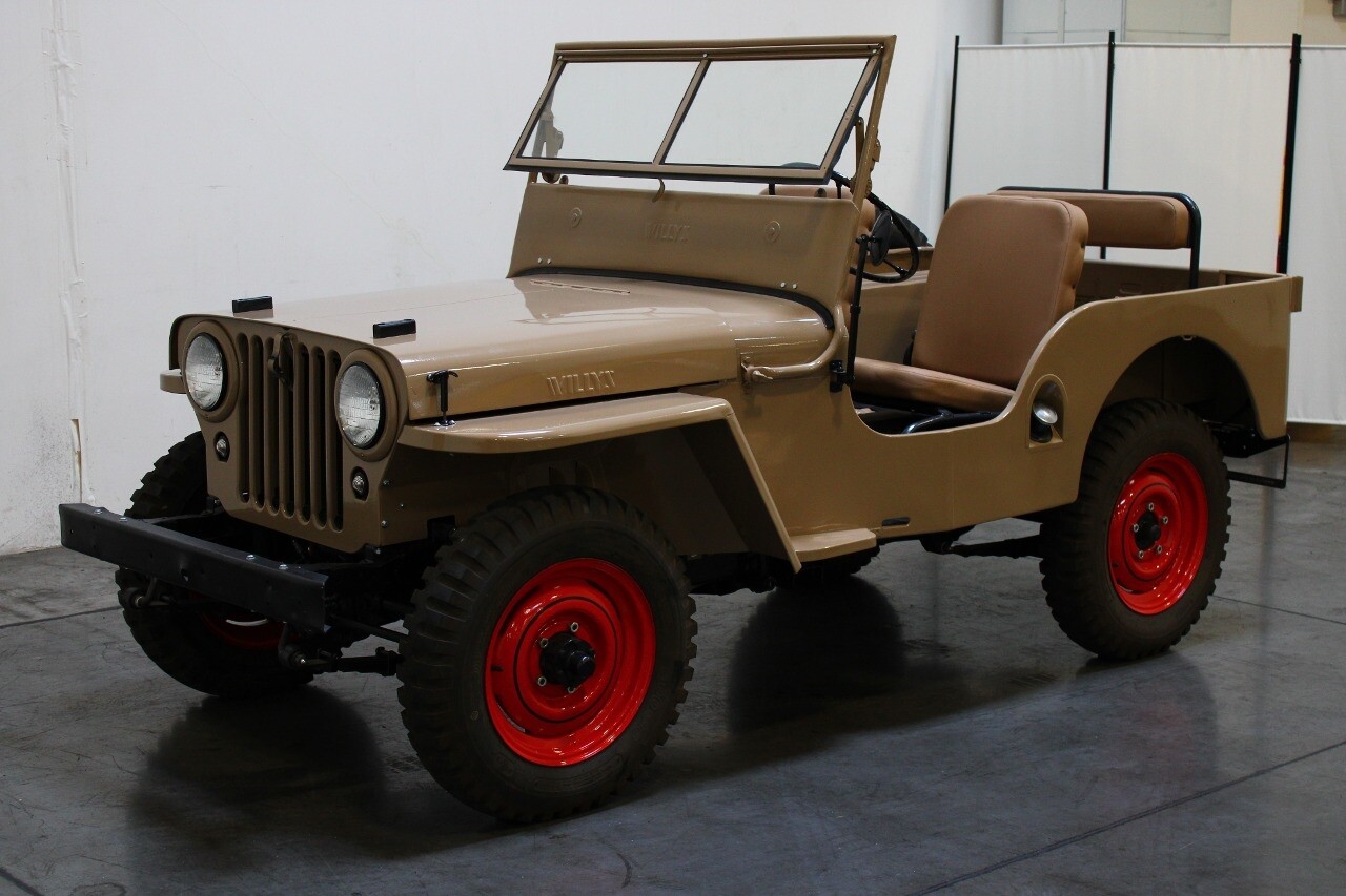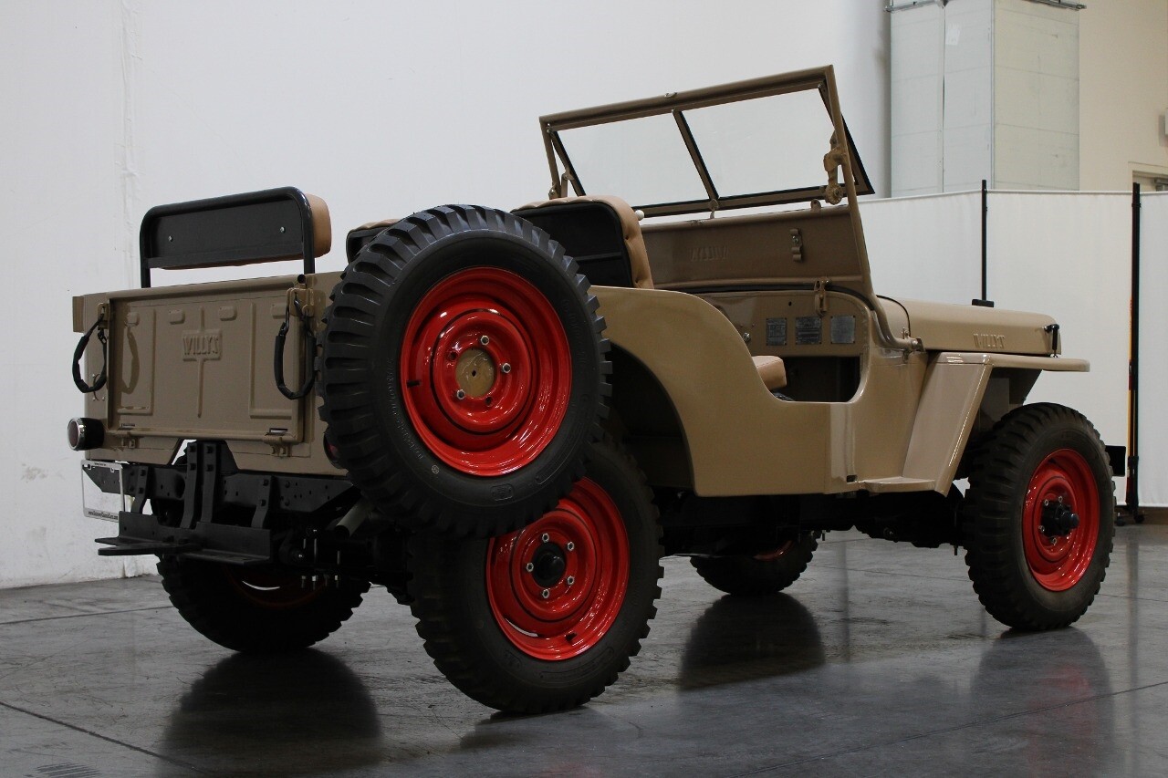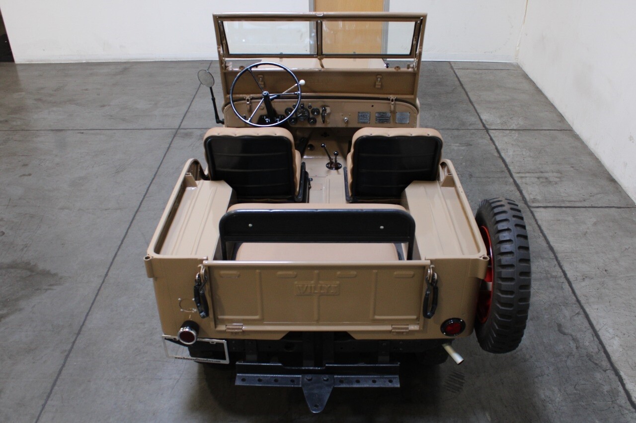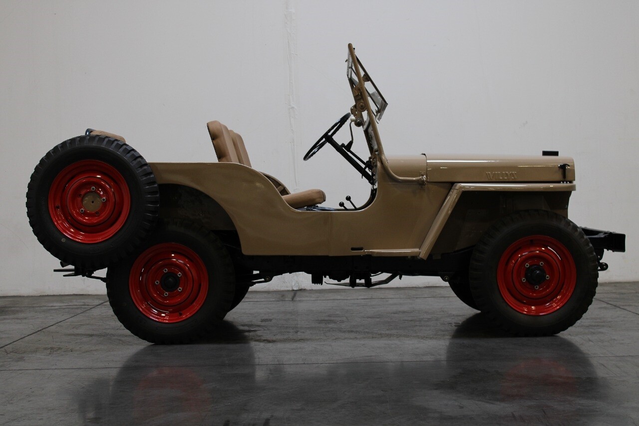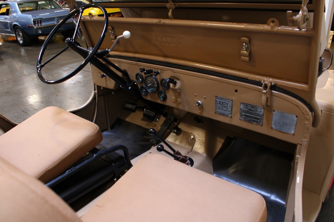 Introducing the 1946 Willys CJ2A, a true gem for collectors and enthusiasts of classic automobiles. This rare model stands out with its striking harvest tan exterior, a color that captures the essence of its era. The exterior is complemented by a matching harvest tan cloth interior, creating a cohesive and visually appealing aesthetic that is sure to turn heads wherever you go.