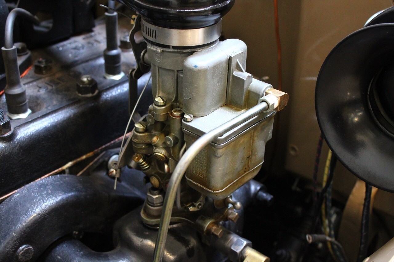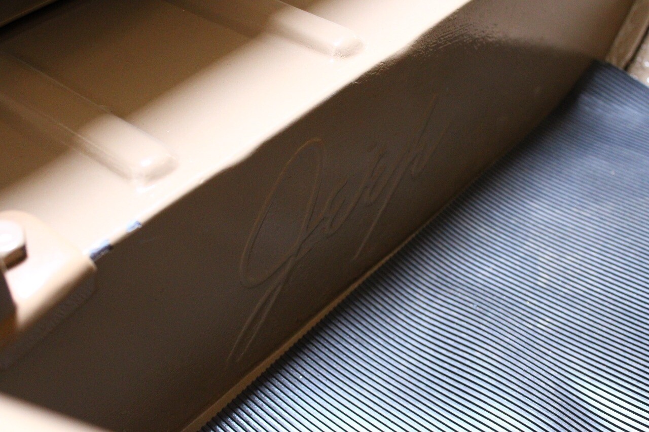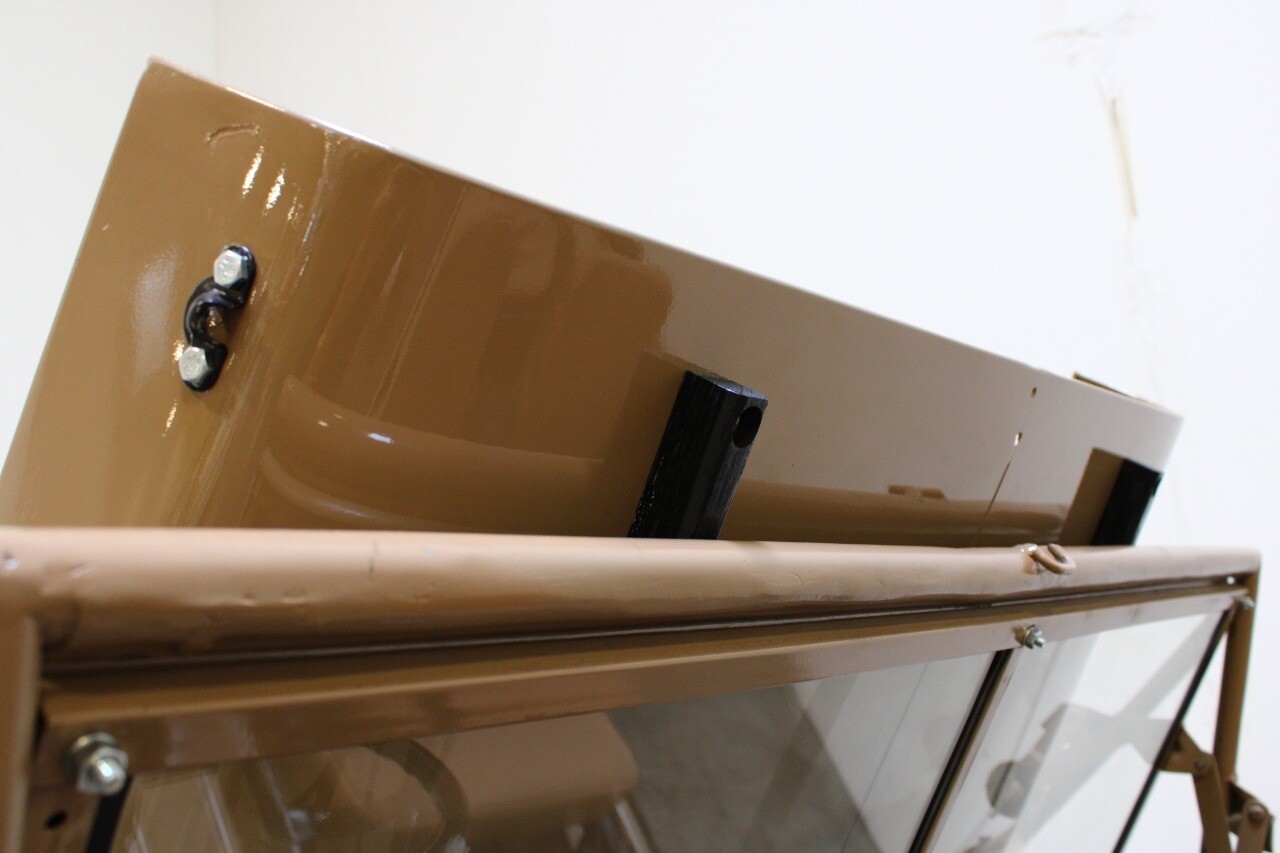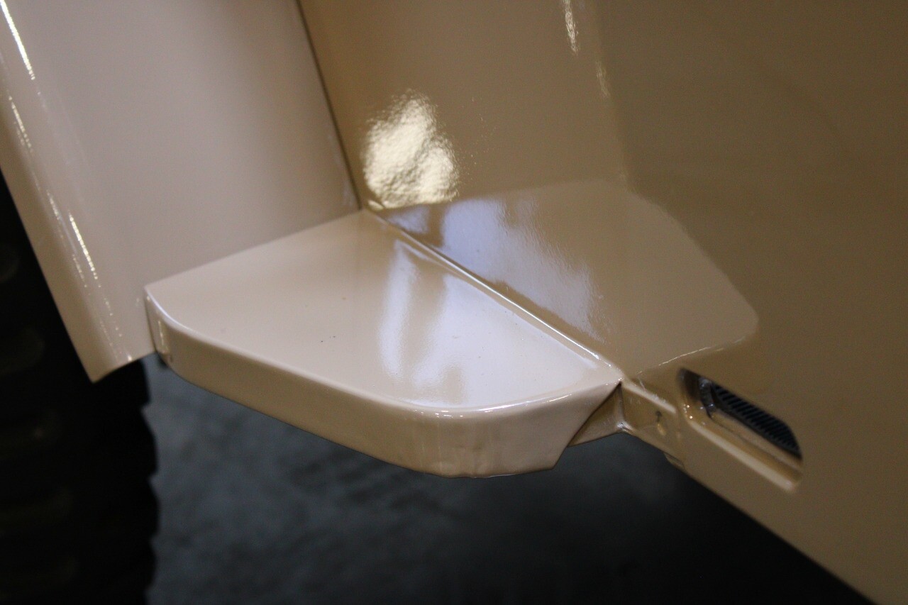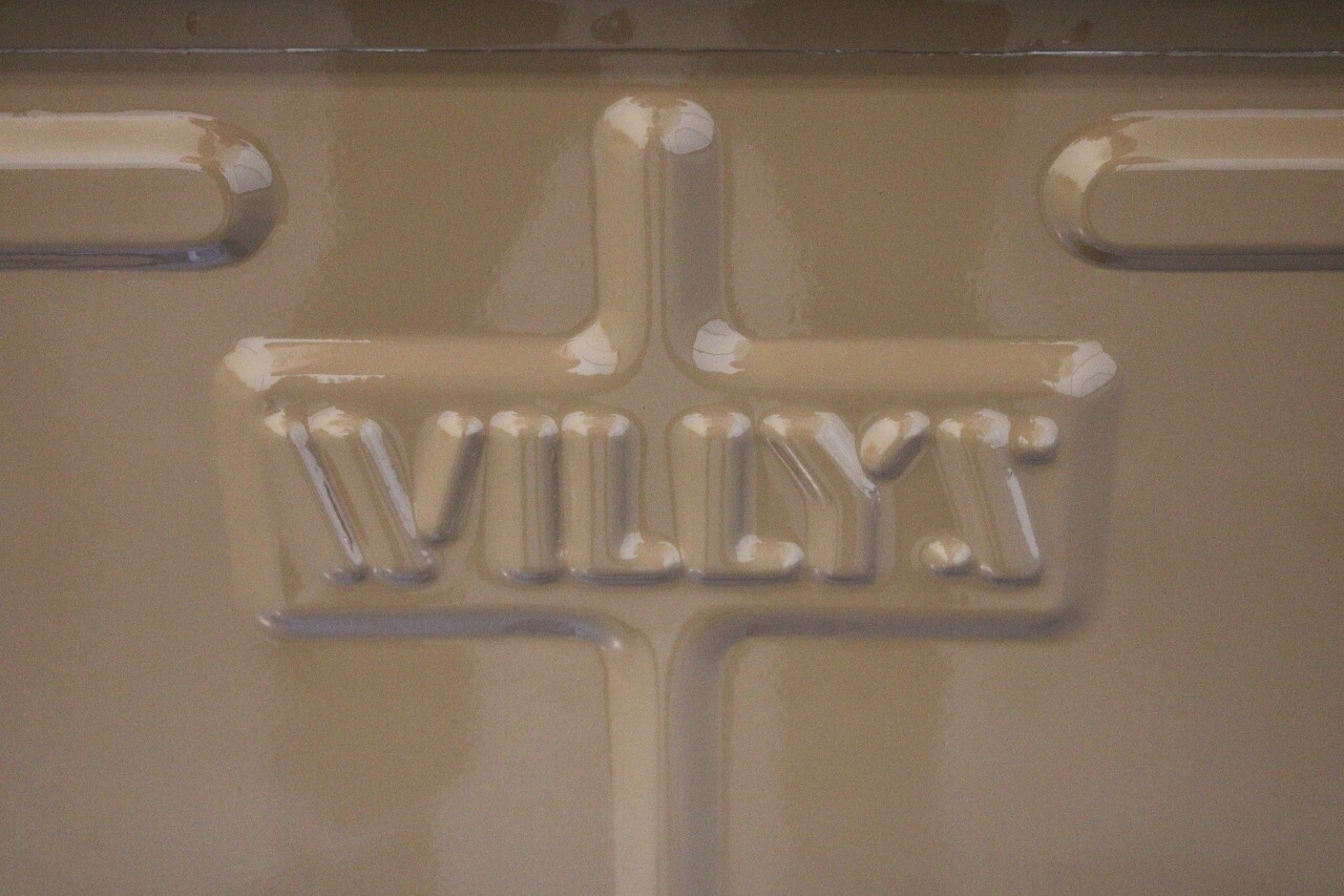 Inside, the harvest tan canvas interior continues the theme. The seats and interior details have been thoughtfully designed to provide interior simplicity while maintaining the vehicle's vintage charm. The simplicity and functionality of the interior design reflect the practical and rugged nature of the Willys CJ2A, a vehicle originally built to handle a variety of terrains and tasks.