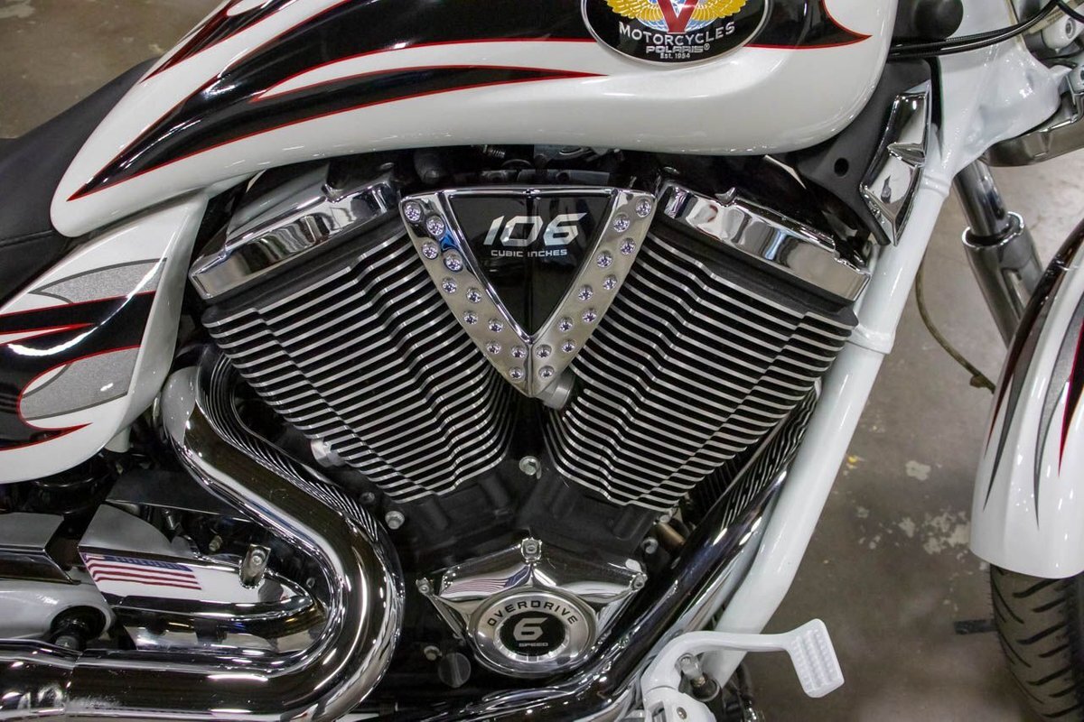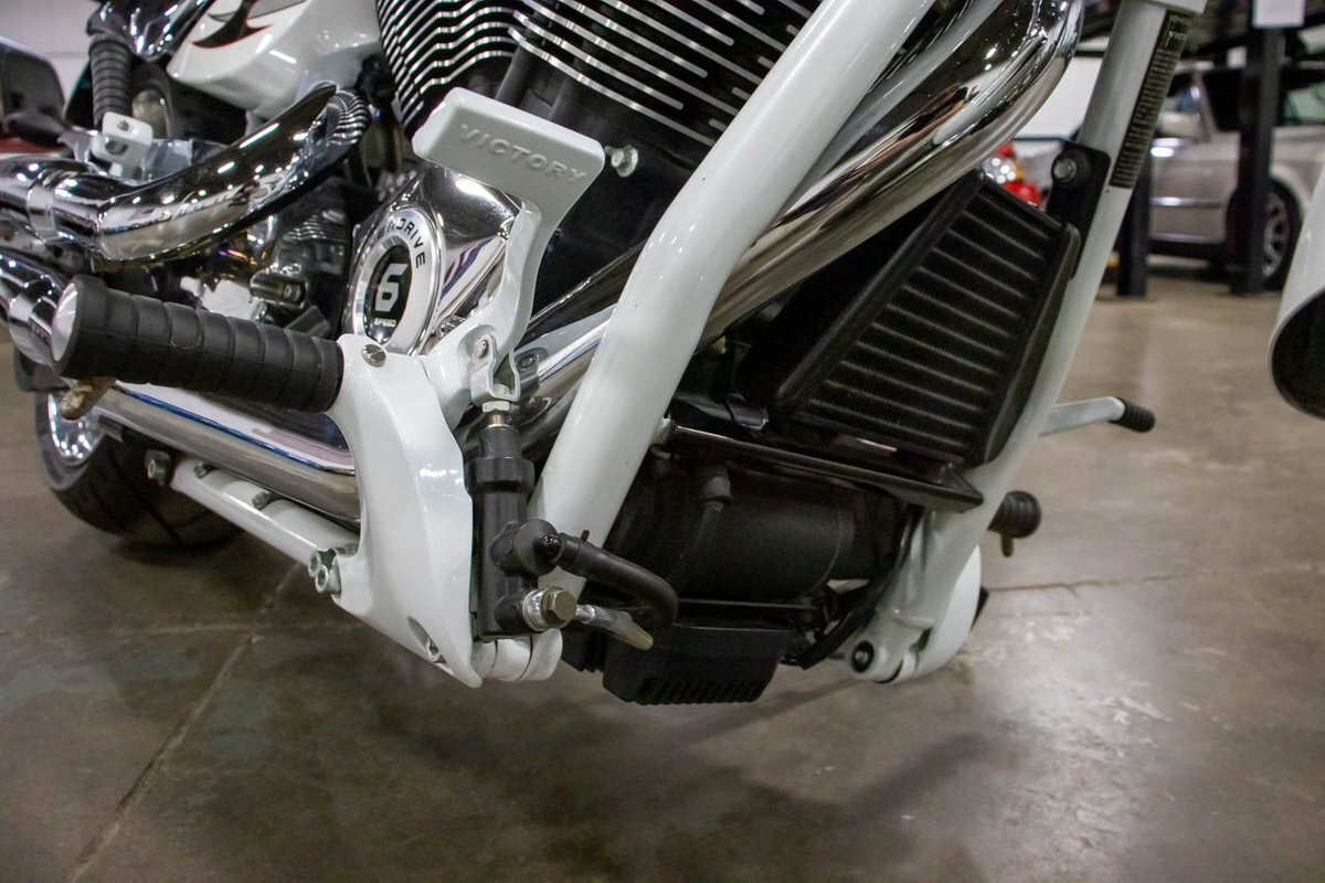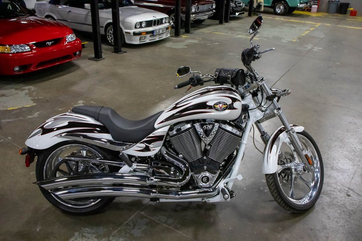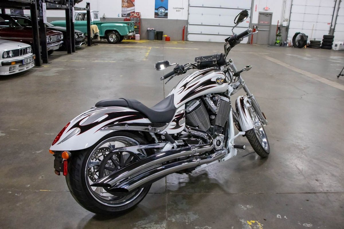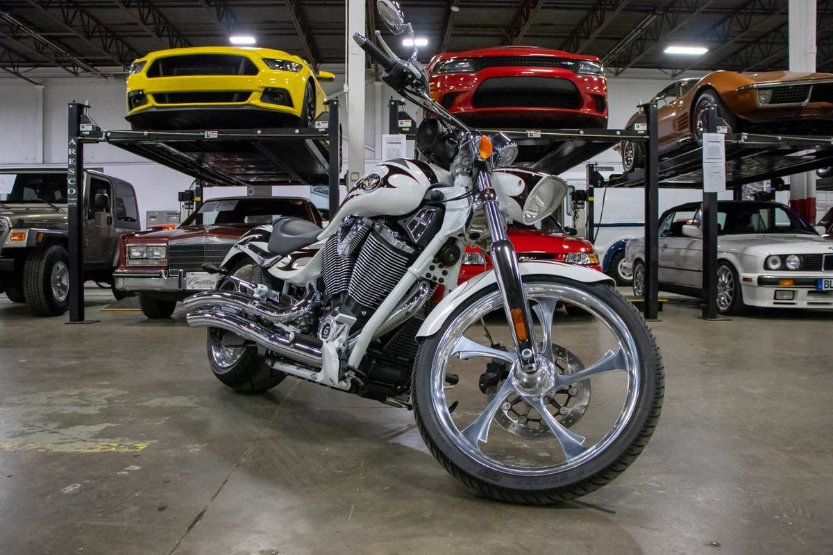 GR Auto Gallery is pleased to present this very low-mileage, 2012 Victory Vegas Jackpot for your consideration. This Jackpot comes with a White exterior paint with a Black seat. Powering this Victory is a 1734cc 4-cylinder paired with a manual transmission. This Bike comes with some nice features such as; aftermarket Chrome pipes that were installed by the dealer to give it 40 more cc, and a handlebar storage bag. Ride this one out of our showroom or have us assist with shipping it to you anywhere in the United States! Don't hesitate to give us a call with any questions or for more information.