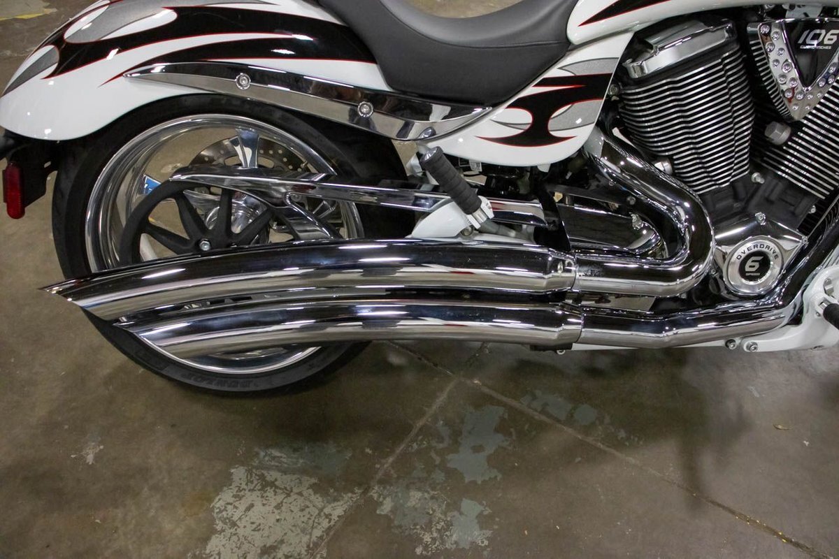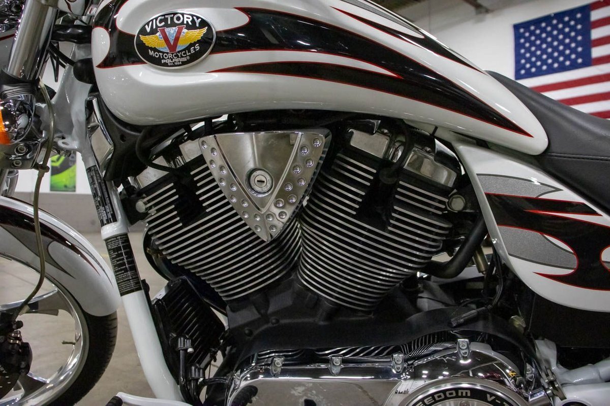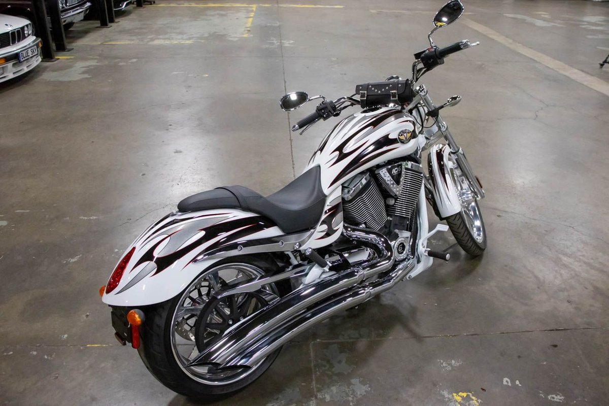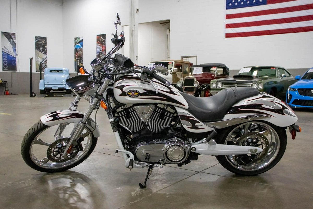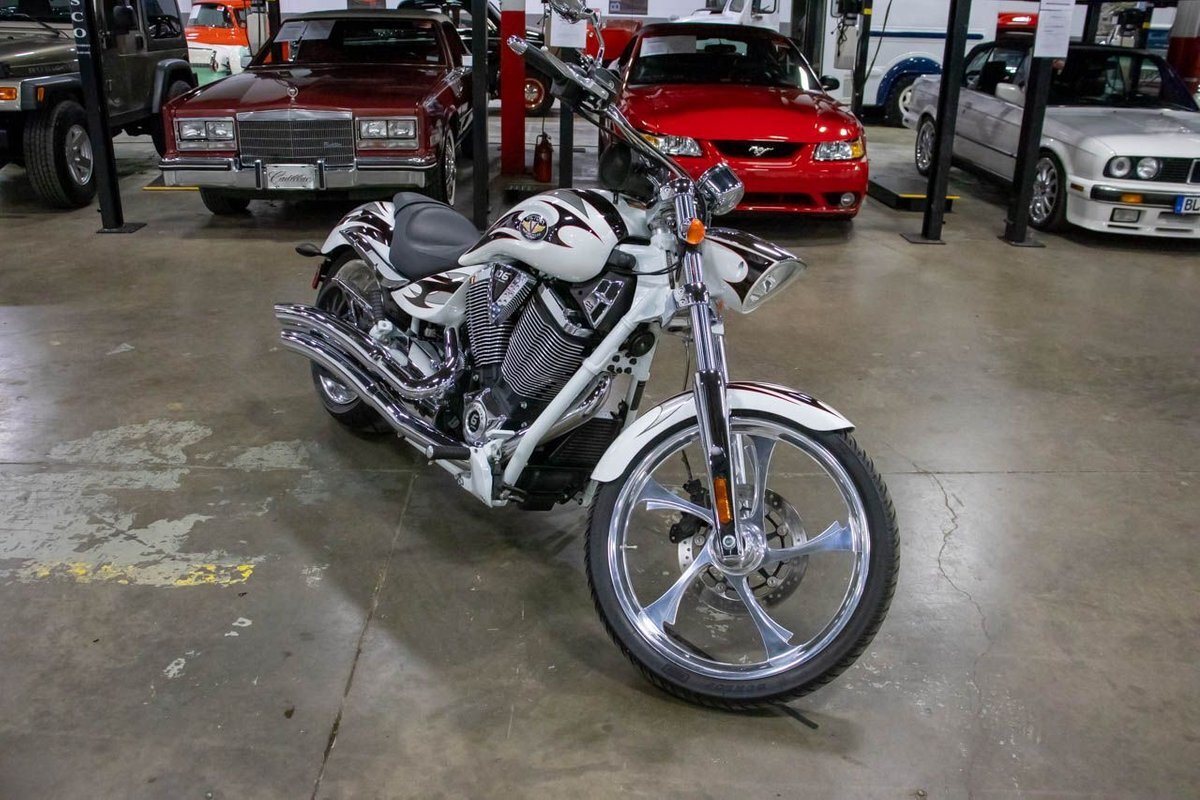 GR Auto Gallery is pleased to present this very low-mileage, 2012 Victory Vegas Jackpot for your consideration. This Jackpot comes with a White exterior paint with a Black seat. Powering this Victory is a 1734cc 4-cylinder paired with a manual transmission. This Bike comes with some nice features such as; aftermarket Chrome pipes that were installed by the dealer to give it 40 more cc, and a handlebar storage bag. Ride this one out of our showroom or have us assist with shipping it to you anywhere in the United States! Don't hesitate to give us a call with any questions or for more information.