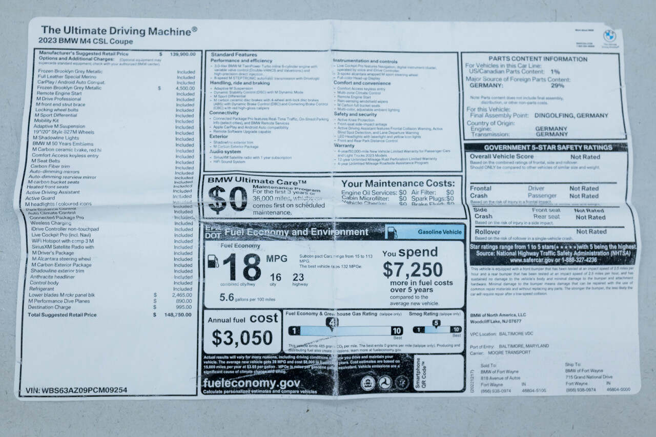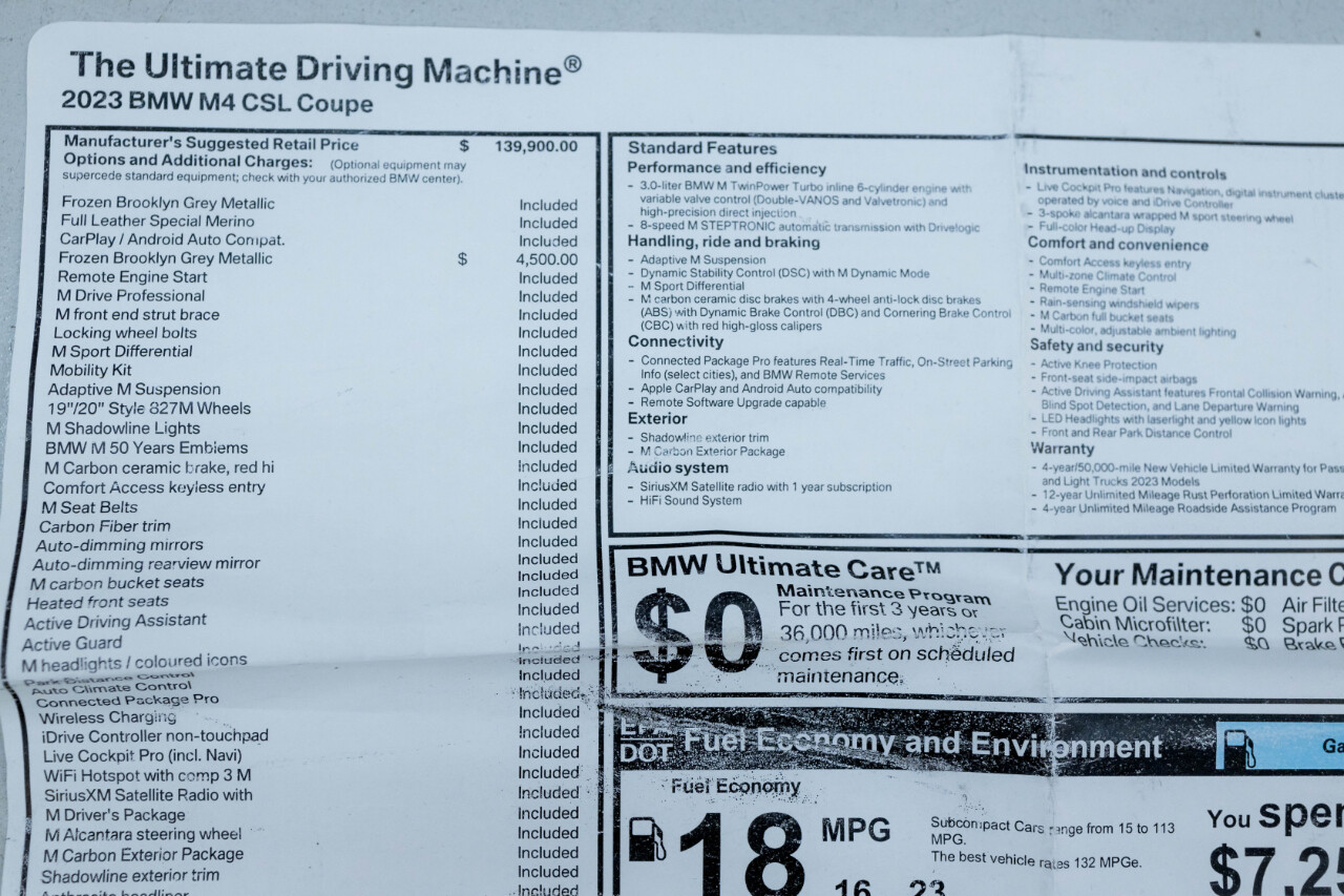 FULL HIGH RESOLUTION PHOTOS AND DETAILED DESCRIPTION ON YOU HAVE A VEHICLE YOU ARE LOOKING TO SELL, PLEASE CALL US AT 770-769-1398WE SHOW VEHICLES BY APPOINTMENT ONLY. PLEASE CALL TO SCHEDULE AN APPOINTMENT IN ORDER TO VIEW A LISTING IN PERSON.NEW ARRIVAL!! EXTREMELY RARE 1/300G82 BMW M4 CSL IN GREAT CONDITION WITH $50K IN MODIFICATIONS THAT ARE TOO EXTENSIVE TO LIST! HAS FRONT CLIP STEALTH PPF. RUNS, DRIVES, AND SOUNDS INCREDIBLE! COMES WITH HRE WHEELS, BOOKS, MANUALS, AND ORIGINAL WINDOW STICKER!EXTERIOR IS FINISHED IN FROZEN BROOKLYN GREY METALLIC OVER SPECIAL MERINO FULL LEATHER INTERIOR.NOTABLE MOTIFICATIONS INCLUDE:HRE R101 WHEELSVALVETRONIC EXHAUSTTUNEDME UNLOCKFLEX FUELCSF FIRE ENGINE RED CHARGE COOLERAND SO MUCH MORE!FACTORY OPTIONS AND FEATURES INCLUDE:3.0L TWIN TURBO INLINE-6 CYLINDER ENGINE8-SPEED AUTOMATIC M STEPTRONIC TRANSMISSIONHEATED M CARBON BUCKET SEATSM ALCANTARA STEERING WHEELLOWER BLADES M ROCKER PANEL BLACKM PERFORMANCE DIVE PLANESM FRONT END STRUT BRACEM CARBON EXTERIOR PACKAGEM DRIVE PROFESSIONALM SPORT DIFFERENTIALADAPTIVE M SUSPENSIONM SHADOWLINE LIGHTSBMW M 50 YEARS EMBLEMSM CARBON CERAMIC BRAKESM SEAT BELTSCARBON FIBER TRIMM DRIVER'S PACKAGESHADOWLINE EXTERIOR TRIMANTHRACITE HEADLINERWIRELESS CHARGINGREVERSE CAMERABLUETOOTHNAVIGATIONAPPLE CARPLAYAND MUCH MORE.GAS MOTORCARS IS A FAMILY OWNED AND OPERATED CAR DEALERSHIP LOCATED IN MARIETTA, GA. WE ONLY SELL VEHICLES OF THE HIGHEST QUALITY. WE SHIP VEHICLES WORLDWIDE AT THE BUYER'S EXPENSE. WE TAKE CONSIGNMENTS AS WELL AS TRADES.WE SHOW VEHICLES BY APPOINTMENT ONLY.PLEASE CALL AHEAD TO SCHEDULE A DATE AND TIME IN ORDER TO VIEW A LISTING IN PERSON.CONNECT WITH US ON INSTAGRAM @GASMOTORCARSIt is the customers sole responsibility to verify the existence and condition of any equipment listed. Neither the dealership nor DealerCarSearch is responsible for misprints on prices or equipment. It is the customers sole responsibility to verify the accuracy of the prices with the dealer, including the pricing for all added accessories. Visit Gas Motorcars online at to see more pictures of this vehicle or call us at770-769-1398 today to schedule your test drive.