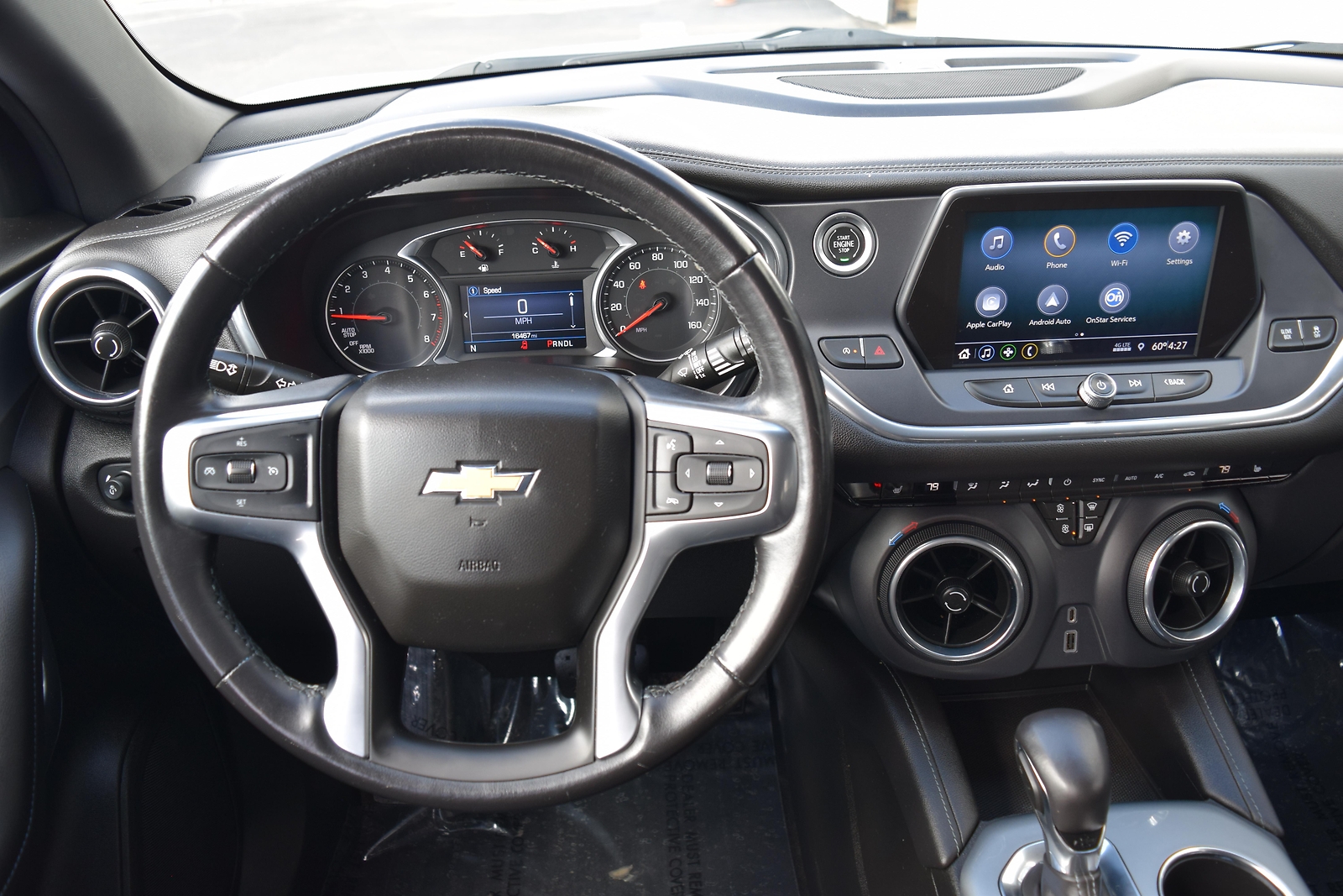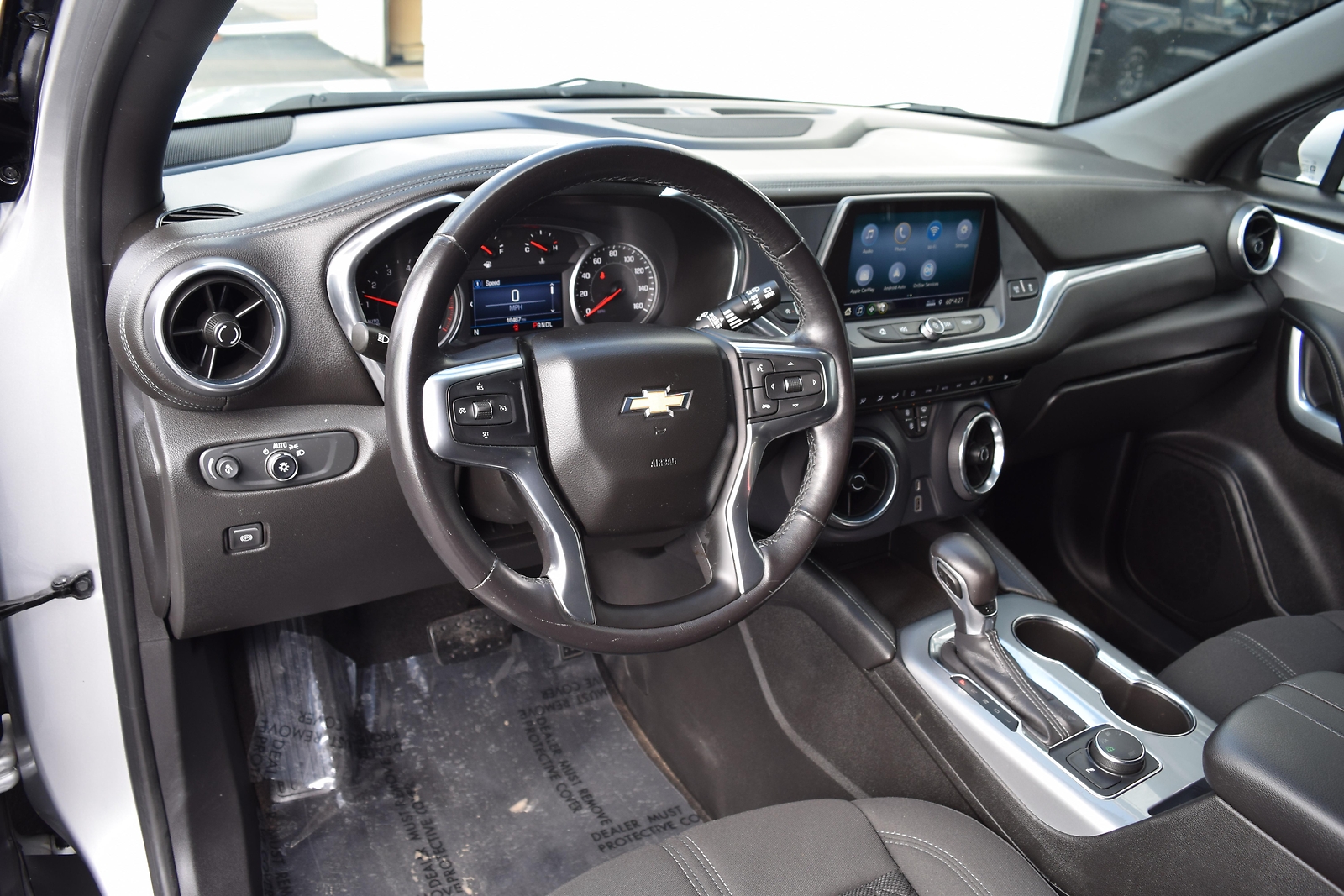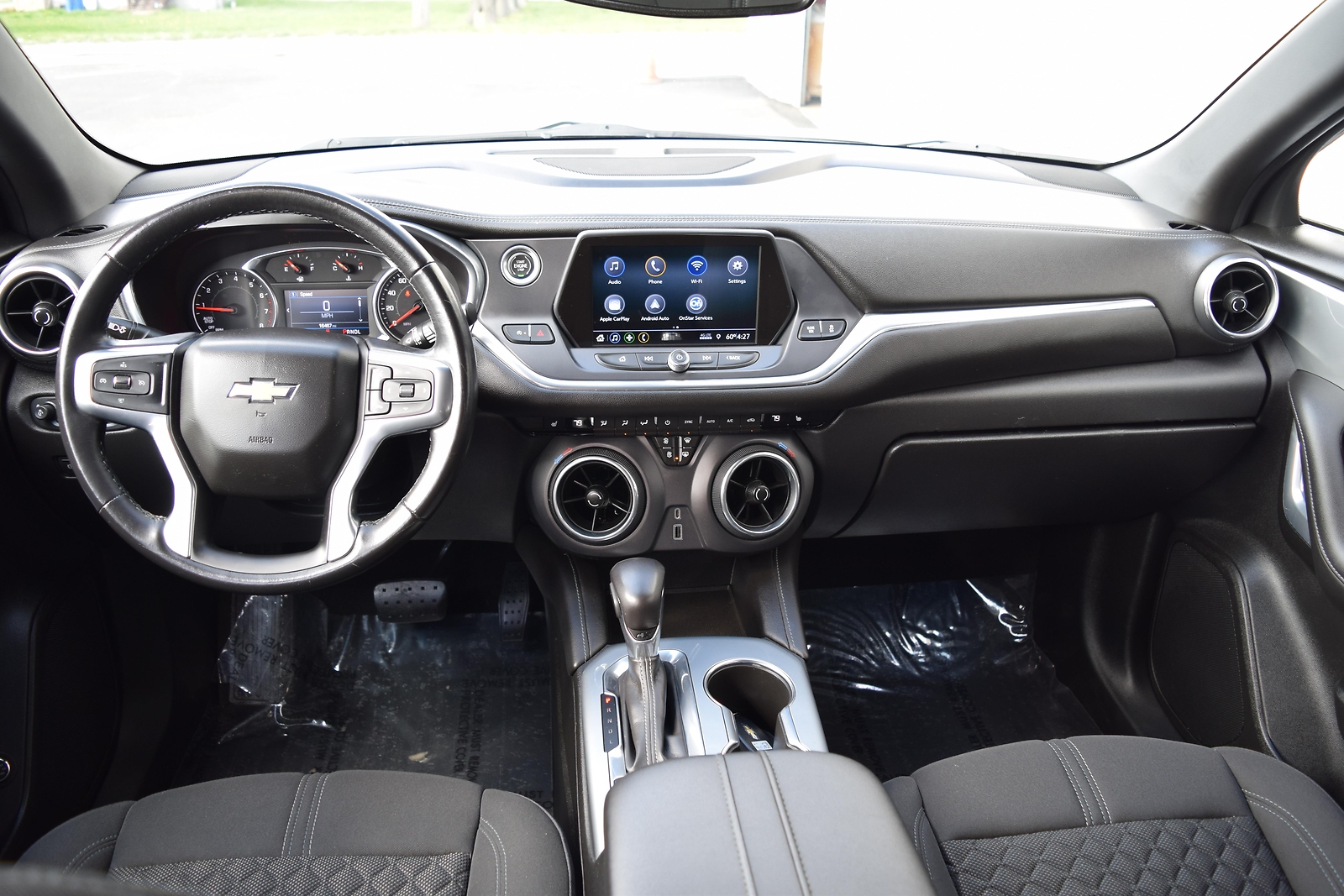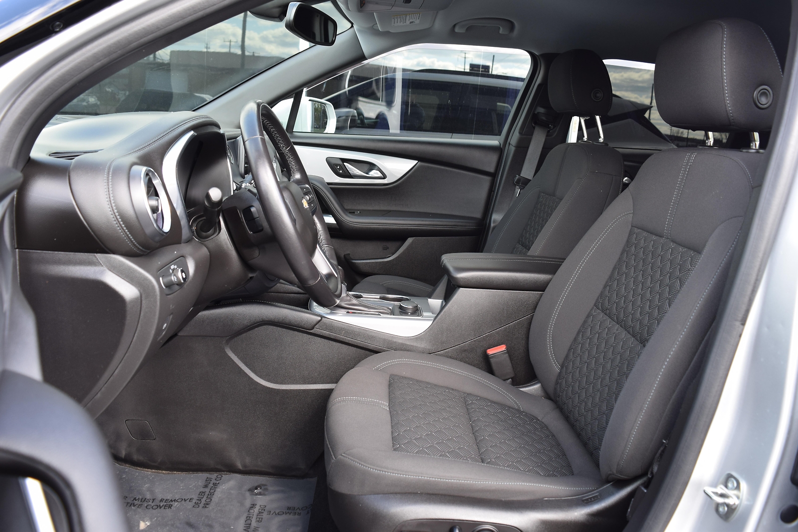 Silver Ice Metallic EXTERIOR MATCHED WITH A JET BLACK (HEATED FRONT SEATS ) CLOTH / INTERIOR ON THIS 2020 Chevrolet Blazer LT AWD EDITION(STICKER NEW WAS $56090)..................IT HAS THE LEGEND , STRONG 2.0 LITER V6 DURABLE WORKHORSE ENGINE( 230 HORSEPOWER & ......SPORT DRIVING MODE FEATURE................................SMOOTH SHIFTING AUTOMATIC TRANSMISSION / PADDLE SHIFT ON STEERING WHEEL...........16,647 SUPER LOW MILES..............AWD /ALL WHEEL DRIVE SYSTEM).........................AWD EDITION(LT).......................COLD A/C..........OEM TINTED WINDOWS.............(((POWER OPERATED SUNROOF WITH SHADE OPTION))).................FULL CLOTH SEATING ..................................FOLD DOWN SECOND SEATING / FOR MORE STORAGE ROOM........................................DRIVER SIDE MEMORY SEAT......................MEDIA / INFORMATION SCREEN...................U-CONNECT SERVICES.............BLUETOOTH................******VOICE ACTIVATED NAVIGATION MAPS SYSTEM******............WIDE SCREEN TOUCH INFORMATION CENTER-SEE PICTURES...............REAR POWER OPERATED OPEN/CLOSE TAIL GATE...............................REAR PARK ASSIST / ALERT SENSORS............................. BACK UP CAMERA SYSTEM...........................PUSH BUTTON START ON/OFF....................CAME WITH ONE KEY / ONE FOB............FACTORY REMOTE START.................18" OEM SPECIAL WHEELS ON 18" TIRES. 85% TIRE THEAT............................AUX...............12V DC..................TRACTION CONTROL..................HEATED LEATHER WRAPPED STEERING WHEEL.........................HEATED STEERING WHEEL............STEERING WHEEL CONTROLS.........POWER OPERATED TELESCOPIC STEERING WHEEL..............LED LIGHTS.................XENON / LED HEADLIGHTS...........POWER OPERATED REAR TAILGATE OPEN-CLOSE...........................FLOOR MATS.............TINTED WINDOWS..................COLD A/C.................MUCH MUCH MUCH MORE