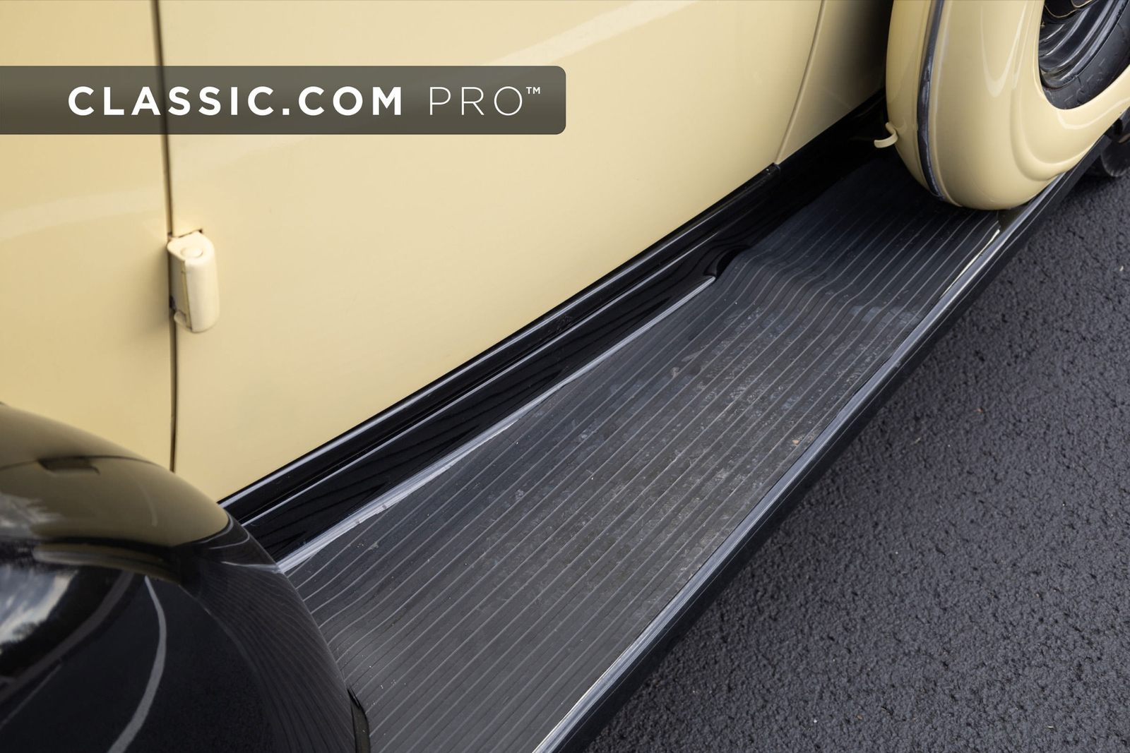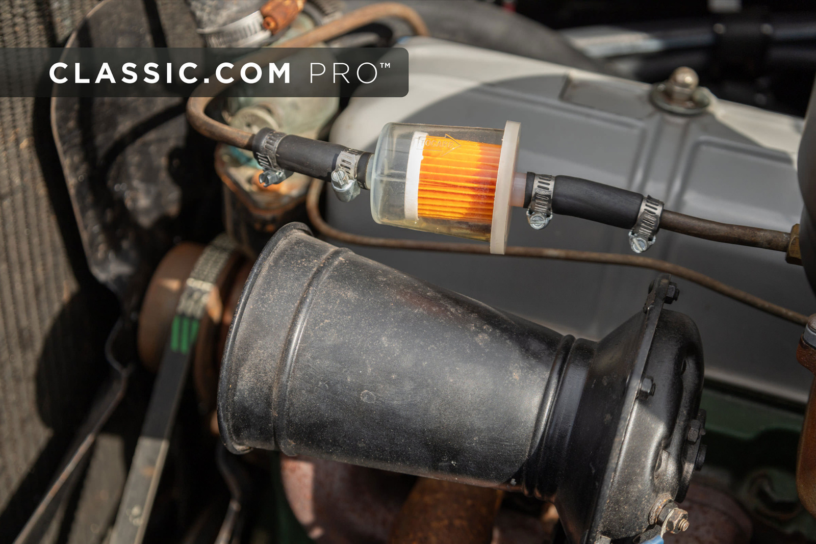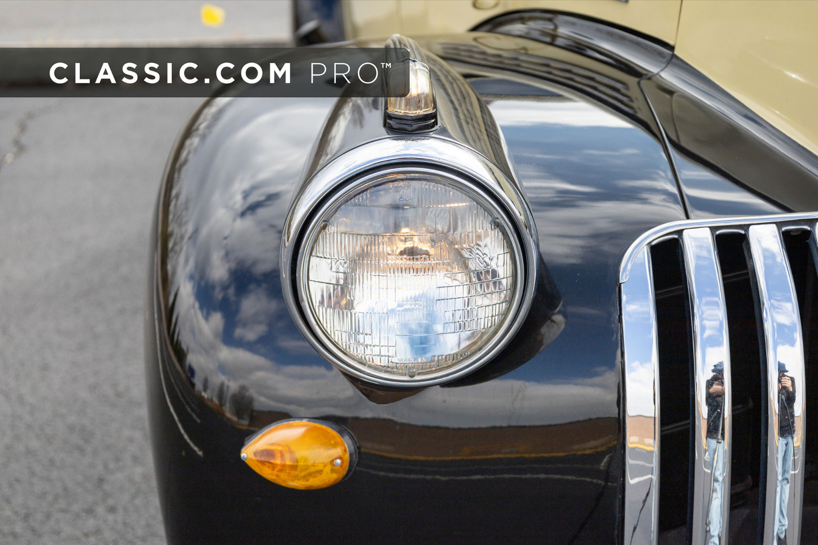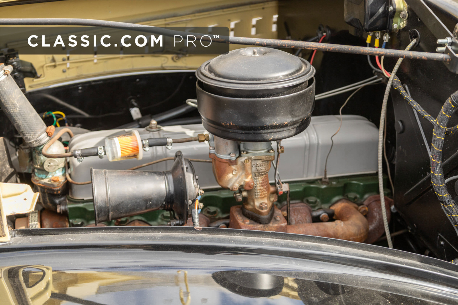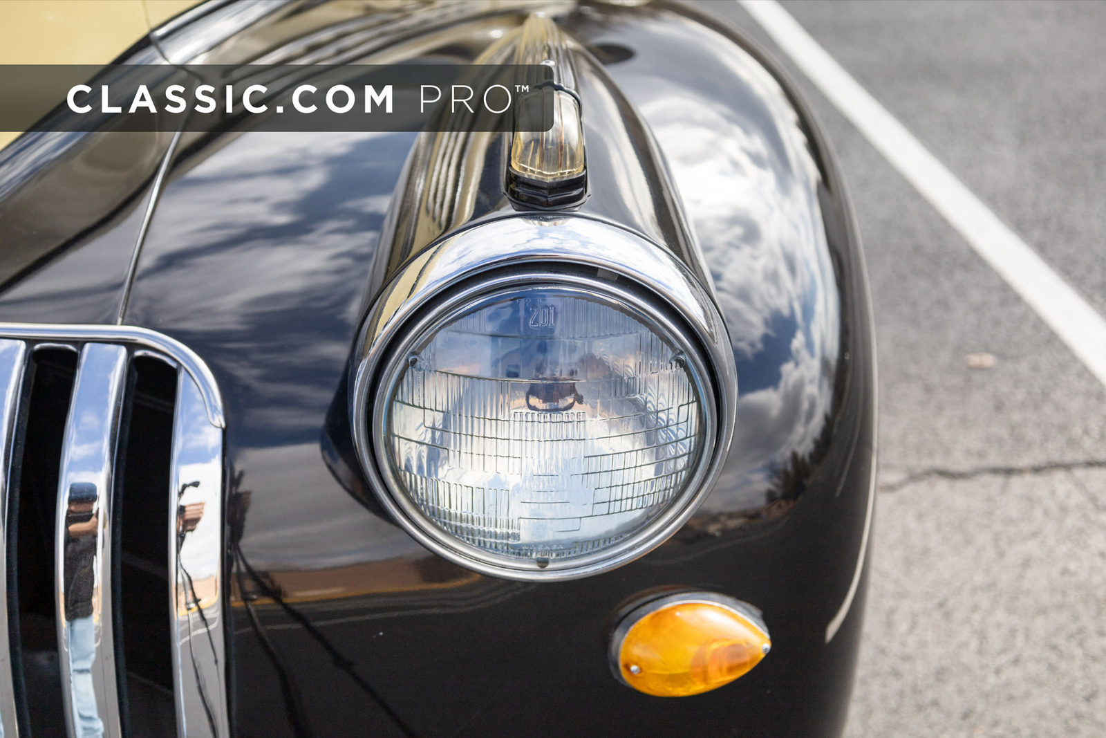 A third-party inspection report and professional photography detail the well-cared-for condition of the vehicle. The exterior paint is in good condition and presents very well, fifteen years after the restoration. The inspection and photos note a dent and paint scuff on the right rear fender where it appears to have made contact with another object. Minor scratches to the rear bumper and cracking of the rubber on the running boards are consistent with the age of the restoration. The interior is in good condition and all features operate as they should. Mechanically, a road test confirmed the smooth operation of essential components. The sale includes one key, an original 1941 shop manual and binder with photos of the restoration.