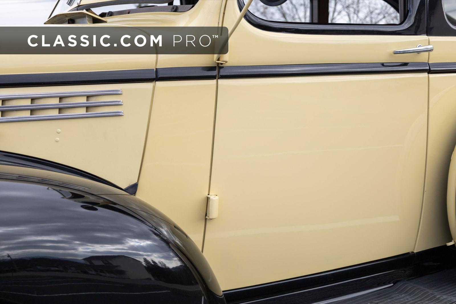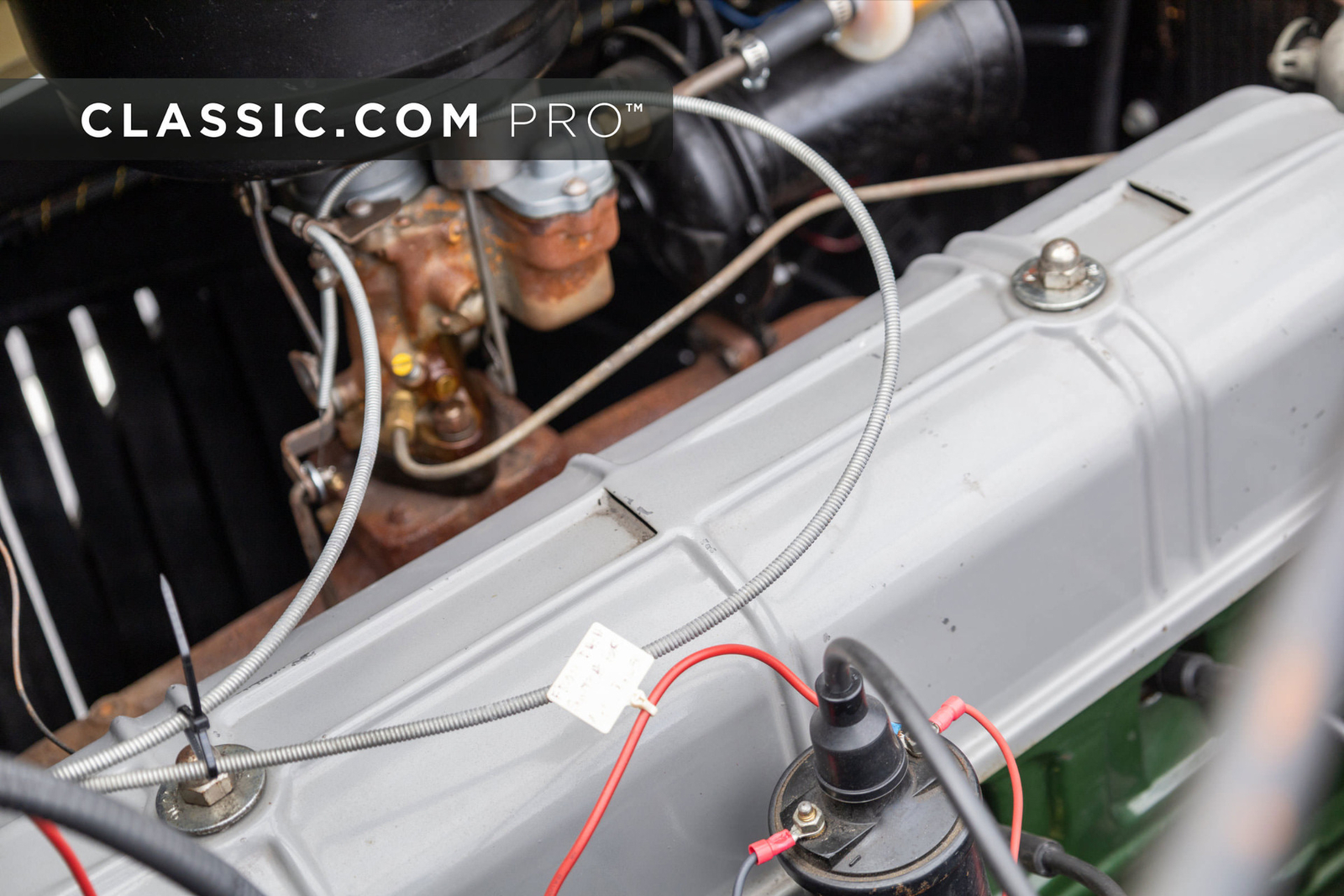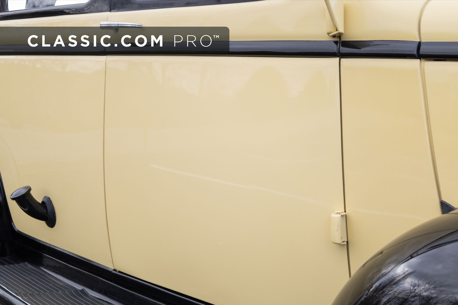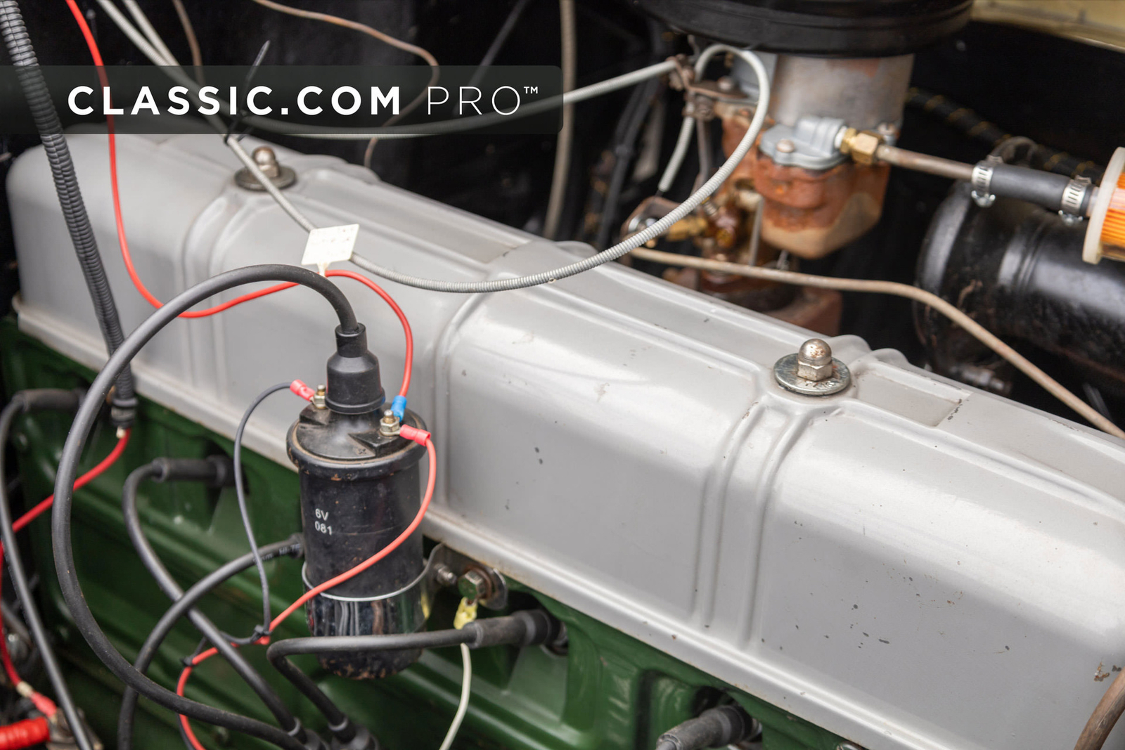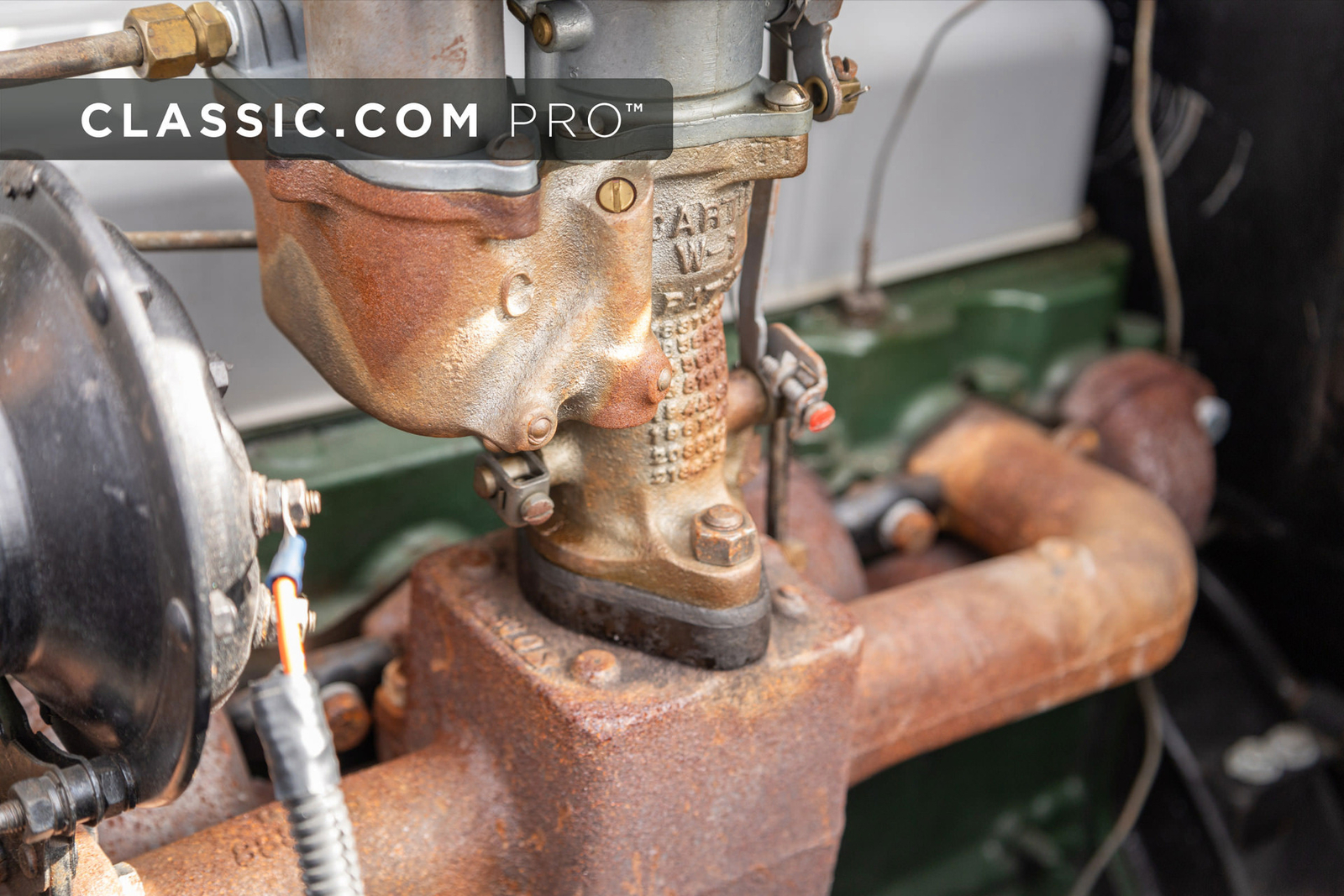 A third-party inspection report and professional photography detail the well-cared-for condition of the vehicle. The exterior paint is in good condition and presents very well, fifteen years after the restoration. The inspection and photos note a dent and paint scuff on the right rear fender where it appears to have made contact with another object. Minor scratches to the rear bumper and cracking of the rubber on the running boards are consistent with the age of the restoration. The interior is in good condition and all features operate as they should. Mechanically, a road test confirmed the smooth operation of essential components. The sale includes one key, an original 1941 shop manual and binder with photos of the restoration.