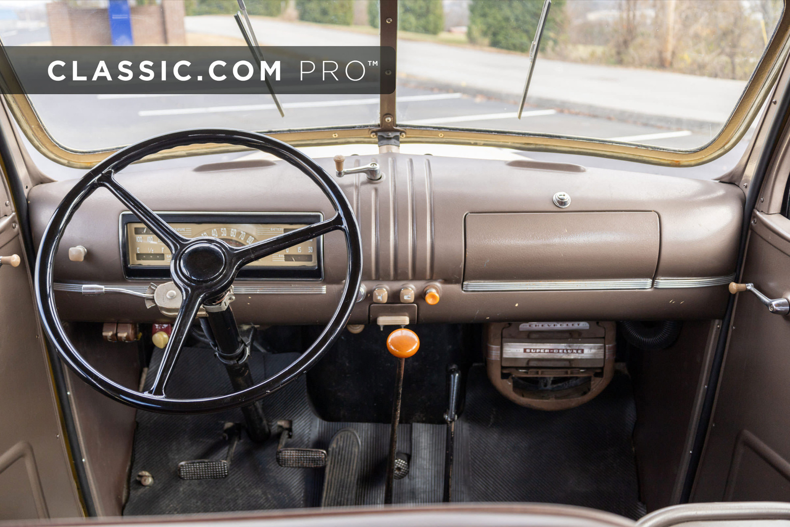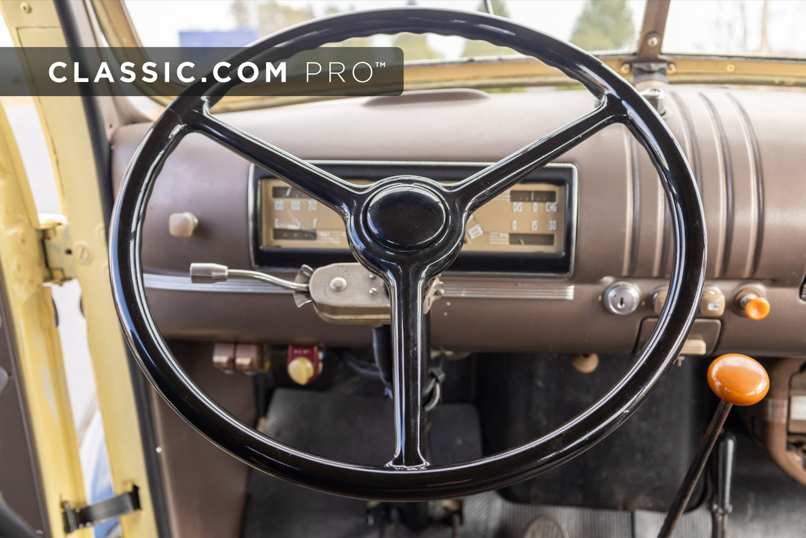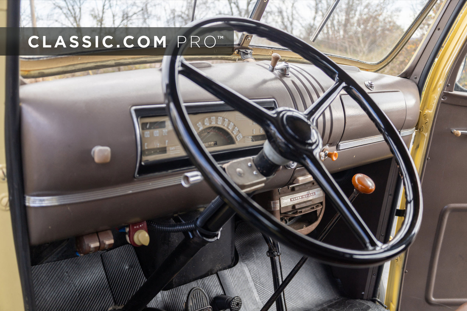This 1941 Chevrolet Suburban was treated to a full restoration in 2008 and shows 41,776 miles on the odometer but the total mileage is unknown. It’s powered by a 3.5L inline-six-cylinder engine paired with a manual transmission driving the rear wheels. The restoration included a repaint in beige with black fenders, and a chrome grille and bumpers. The interior is covered in brown vinyl upholstery that matches the bronze-painted dashboard and door and side panels. The wooden floor planks are complemented by tan upholstered upper trim and headliner. The refinished condition allows original Suburban features to shine including the manually adjustable vented windshield, six manually operated retractable windows and a folding passenger seat with in-floor storage. This example includes the original Chevrolet Super-Deluxe front heater and a Tropical Aire floor-mounted heater for the rear seat.