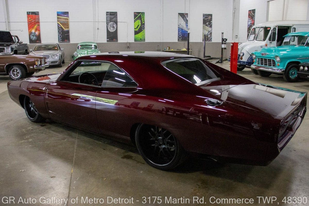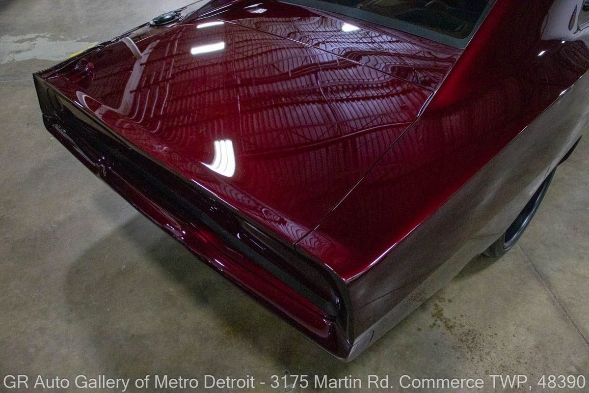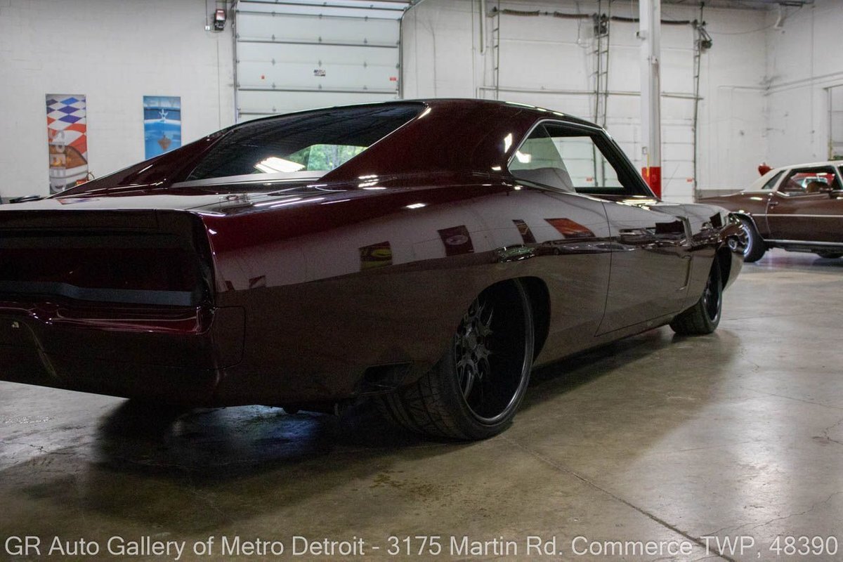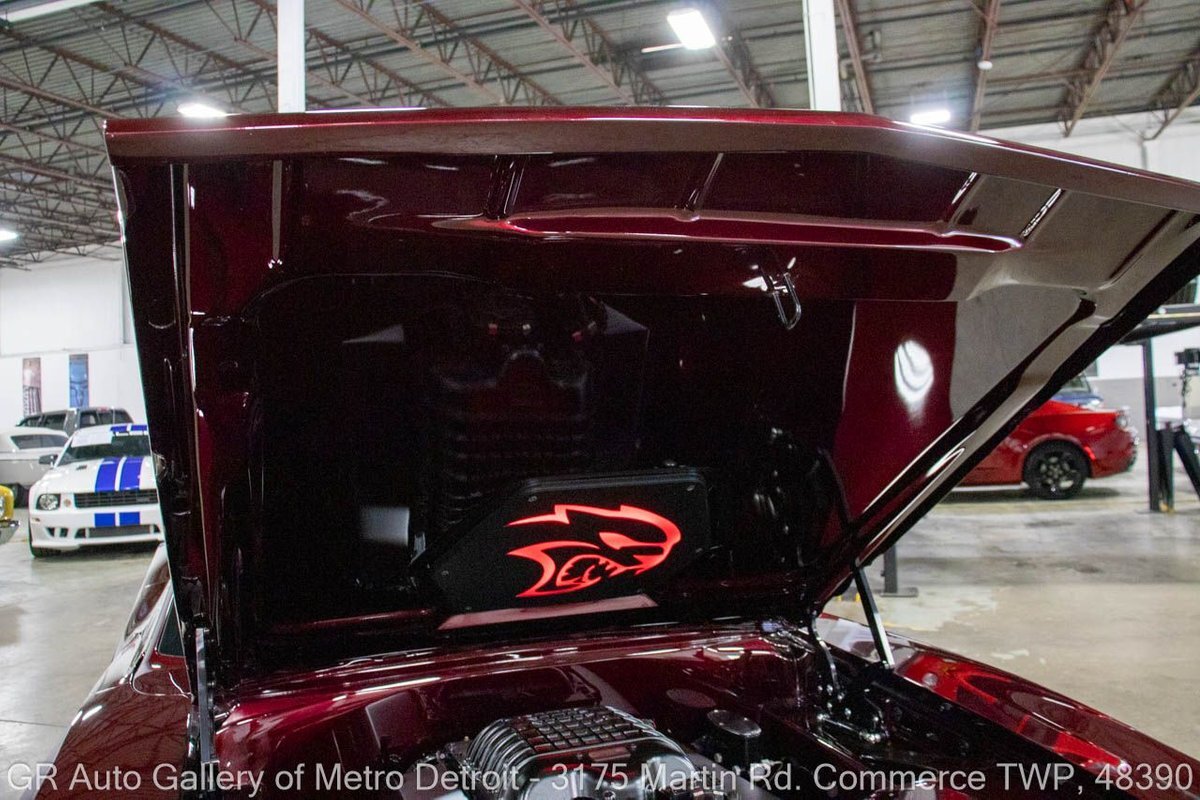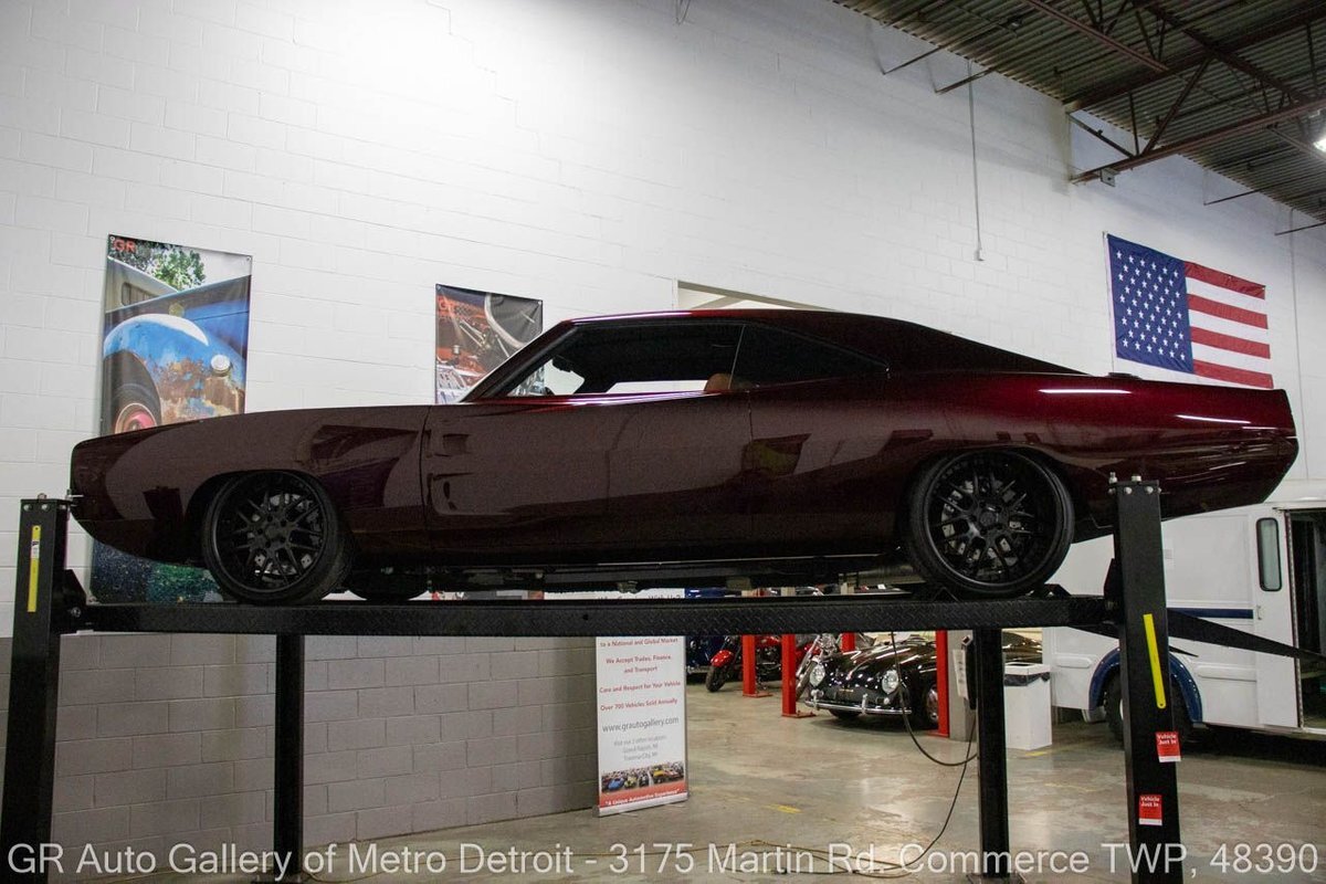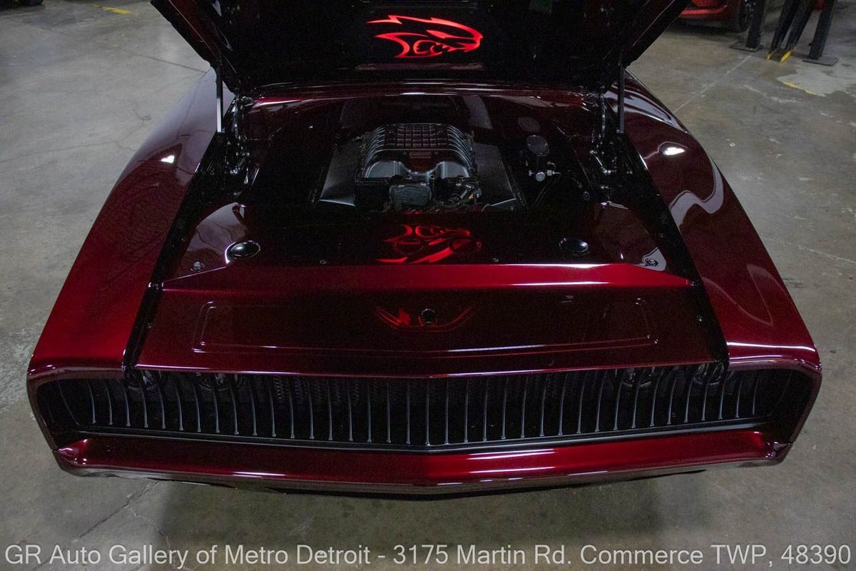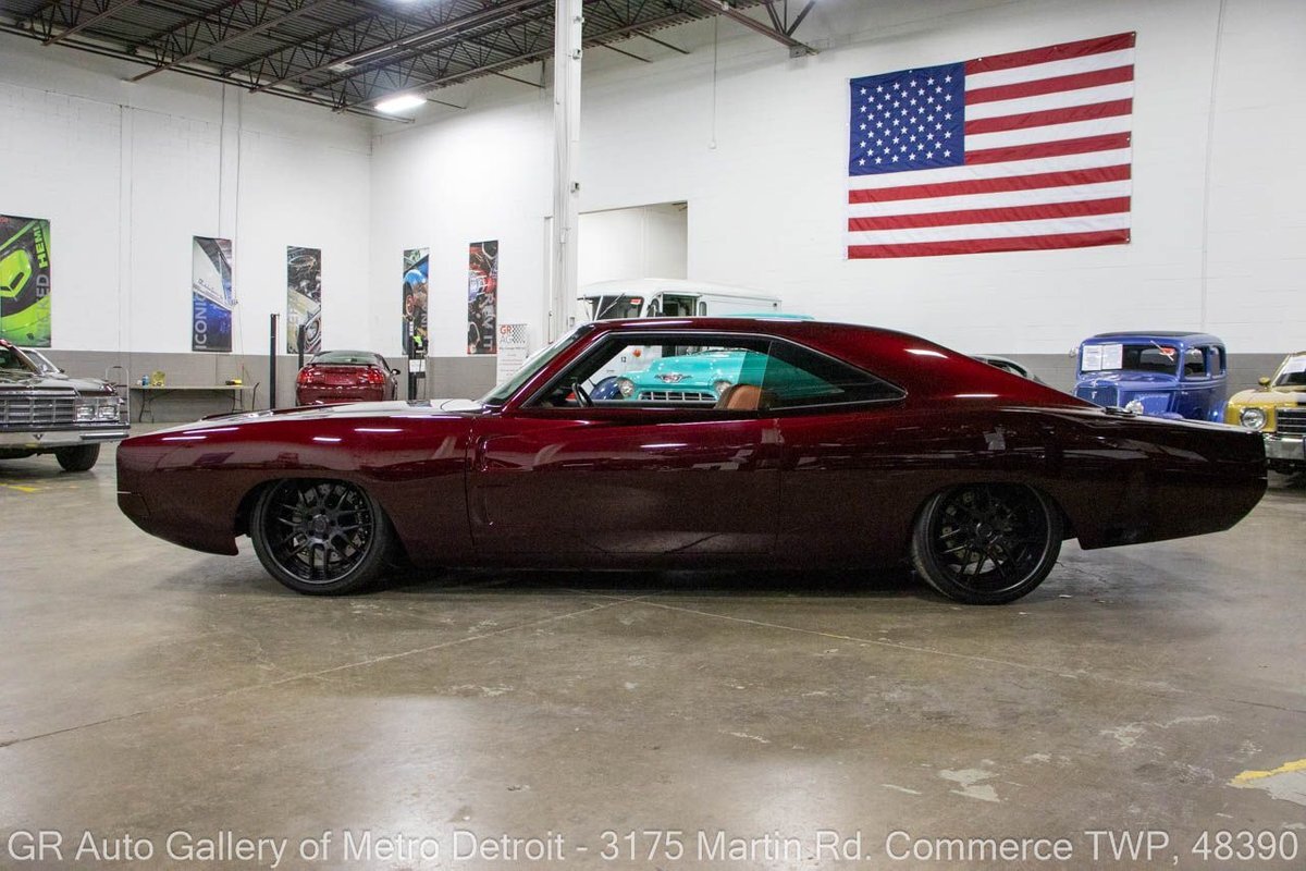 GR Auto Gallery is excited to offer this one-of-a-kind custom 1968 Dodge Charger for your consideration. This Charger features a powerful 6.2 Liter supercharged V8 Hellcat "Hellcrate" motor, producing an impressive 707 horsepower, paired with a 4L80E automatic transmission and Currie rear end. The Brandi Wine Candy metallic exterior pairs beautifully with the Cinnamon leather interior. This Charger boasts an array of custom features including Edelbrock EFI fuel pressure regulators, derale performance frame rail cooler, digital guard dawg g2o keyless push to start, ride tech single adjustable coil over shocks and springs, stainless braided brake hoses and calipers, steel and brass brake fittings for calipers and hard lines, cross-drilled and slotted rotors, Gen 3 hemi engine mounts (5.7/6.1/6.2/6.4), Nu-relics power windows, Kenwood aftermarket stereo, Bwoody performance charger heat exchanger, Howe precision ball joints, aftermarket LED light side steps/under the hood, aftermarket back up camera, sequential tail lights, exhaust valve cut-offs, E-level accu air ride remote. This Charger received a top-tier, no-penny-spared build that started in 2019, and took 2 years to get it on the road. The build was completed by Jesse's Classics and Customs. Every nut and bolt is custom on this vehicle, it has won countless awards, debuted at Sema in 2022, and was endorsed by Mark Worman Graveyard cars. You will not find another build like this - showing in immaculate condition, show built ready for its new home, with tons of documentation of each piece paired with this vehicle and receipts. Don't miss out on your opportunity to own this masterpiece. Drive this one out of our showroom or have us assist with shipping it to you anywhere in the United States! Don't hesitate to call us with any questions or for more information.