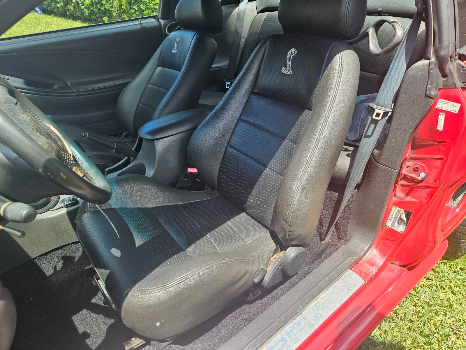 This 1997 Ford Mustang Cobra is being digitally presented for sale. This Mustang Cobra has a red exterior color, complemented by a black leather interior. Under the hood, you'll find a powerful 4.6L DOHC V8 engine paired with a 5-speed manual transmission. Cold A/C inside. History is unknown and refelcted mileage accuracy is unknown as well, but the vehicle does runs and drives well. Bought it as a project but to busy with other projects. Has new radiator, water pump, and aftermarket cooling fans. Sold as is. Winner is responsible for pick up. No delivery. Good luck!