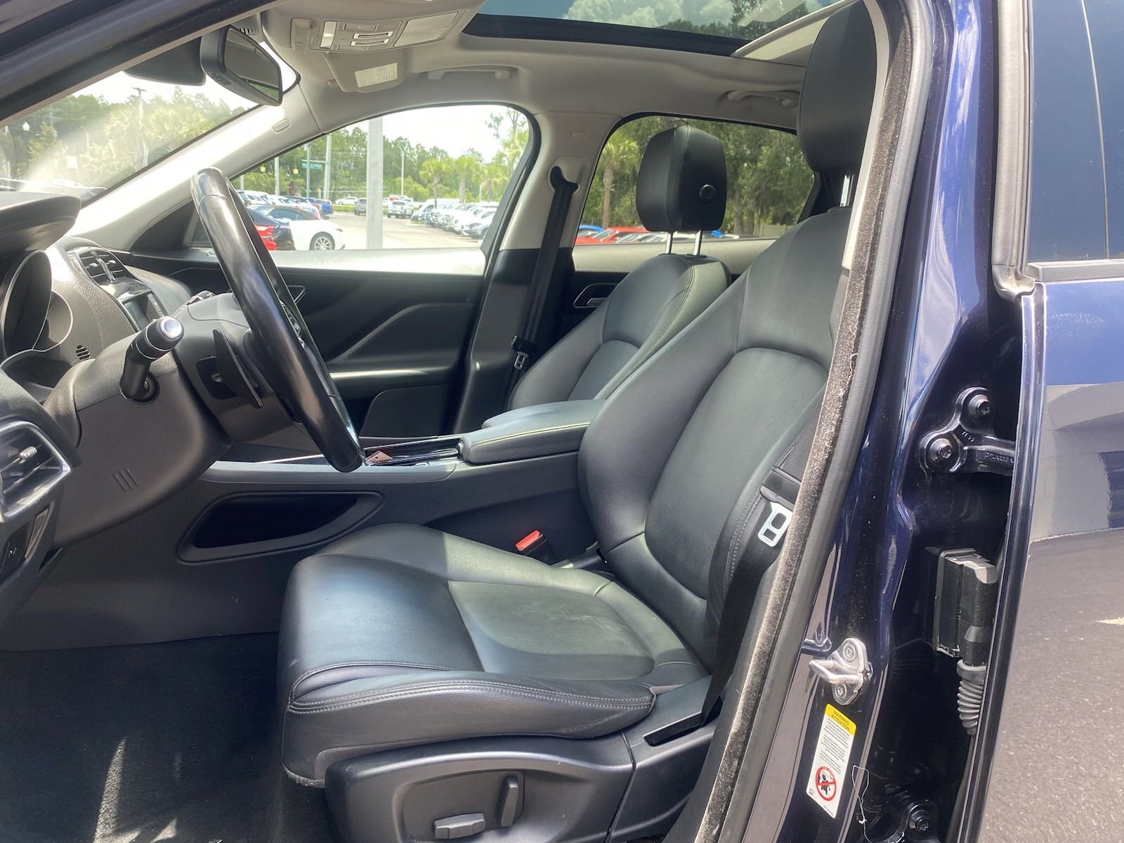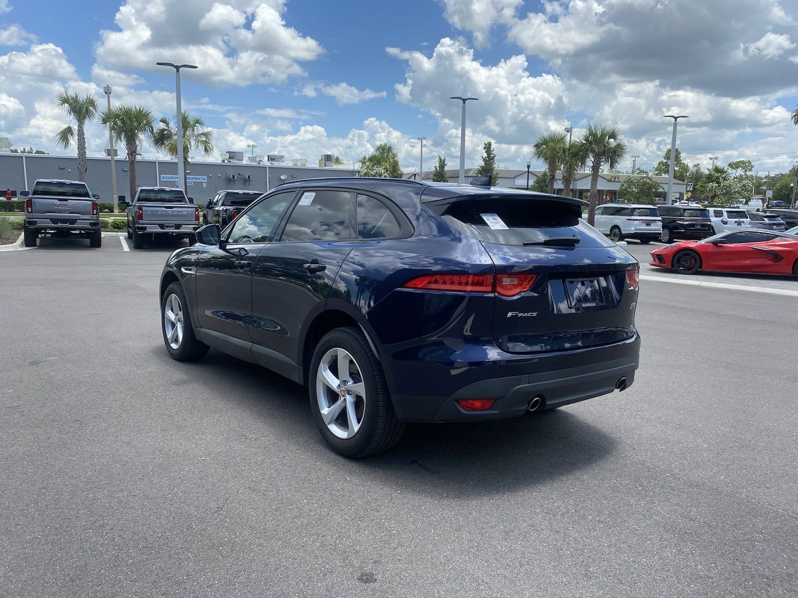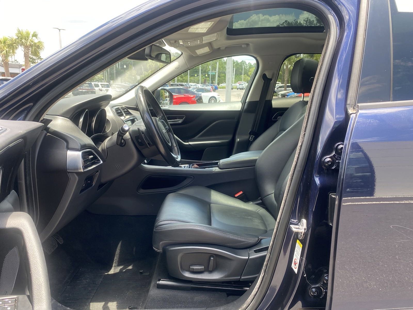 F-PACE 25t Premium, 4D Sport Utility, 2.0L I4 Turbocharged, 8-Speed Automatic, AWD, Loire Blue Metallic, 11 Speakers, 3.73 Axle Ratio, 4-Wheel Disc Brakes, ABS brakes, Air Conditioning, Alloy wheels, AM/FM radio, Auto-dimming door mirrors, Auto-dimming Rear-View mirror, Automatic temperature control, Brake assist, Bumpers: body-color, Compass, Delay-off headlights, Driver door bin, Driver vanity mirror, Dual front impact airbags, Dual front side impact airbags, Electronic Stability Control, Emergency communication system: InControl Protect, Exterior Parking Camera Rear, Four wheel independent suspension, Front anti-roll bar, Front Bucket Seats, Front Center Armrest, Front dual zone A/C, Front reading lights, Fully automatic headlights, Garage door transmitter: HomeLink, Heated door mirrors, Illuminated entry, Leather steering wheel, Low tire pressure warning, LuxTec Seat Trim, Memory seat, Occupant sensing airbag, Outside temperature display, Overhead airbag, Overhead console, Panic alarm, Passenger door bin, Passenger vanity mirror, Power door mirrors, Power driver seat, Power Liftgate, Power moonroof, Power passenger seat, Power steering, Power windows, Radio data system, Radio: Meridian 380W Sound System, Rear anti-roll bar, Rear fog lights, Rear reading lights, Rear window defroster, Rear window wiper, Remote keyless entry, Security system, Speed control, Speed-sensing steering, Split folding rear seat, Spoiler, Steering wheel mounted audio controls, Tachometer, Telescoping steering wheel, Tilt steering wheel, Traction control, Trip computer, Turn signal indicator mirrors, Variably intermittent wipers, Wheels: 19" 5-Spoke (Style 5037), F-PACE 25t Premium, 4D Sport Utility, 2.0L I4 Turbocharged, 8-Speed Automatic, AWD, Loire Blue Metallic, 11 Speakers, 3.73 Axle Ratio, 4-Wheel Disc Brakes, ABS brakes, Air Conditioning, Alloy wheels, AM/FM radio, Auto-dimming door mirrors, Auto-dimming Rear-View mirror, Automatic temperature control, Brake assist, Bumpers: body-color, Compass, Delay-off headlights, Driver door bin, Driver vanity mirror, Dual front impact airbags, Dual front side impact airbags, Electronic Stability Control, Emergency communication system: InControl Protect, Exterior Parking Camera Rear, Four wheel independent suspension, Front anti-roll bar, Front Bucket Seats, Front Center Armrest, Front dual zone A/C, Front reading lights, Fully automatic headlights, Garage door transmitter: HomeLink, Heated door mirrors, Illuminated entry, Leather steering wheel, Low tire pressure warning, LuxTec Seat Trim, Memory seat, Occupant sensing airbag, Outside temperature display, Overhead airbag, Overhead console, Panic alarm, Passenger door bin, Passenger vanity mirror, Power door mirrors, Power driver seat, Power Liftgate, Power moonroof, Power passenger seat, Power steering, Power windows, Radio data system, Radio: Meridian 380W Sound System, Rear anti-roll bar, Rear fog lights, Rear reading lights, Rear window defroster, Rear window wiper, Remote keyless entry, Security system, Speed control, Speed-sensing steering, Split folding rear seat, Spoiler, Steering wheel mounted audio controls, Tachometer, Telescoping steering wheel, Tilt steering wheel, Traction control, Trip computer, Turn signal indicator mirrors, Variably intermittent wipers, Wheels: 19" 5-Spoke (Style 5037). 2018 Jaguar F-PACE 25t Premium Loire Blue Metallic AWD 8-Speed Automatic 2.0L I4 Turbocharged 22/27 City/Highway MPGAwards:* 2018 Brand Image Awards