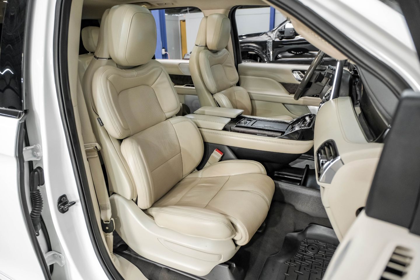 Introducing the epitome of luxury and performance: the 2020 Lincoln Navigator Reserve 4WD. This magnificent SUV, cloaked in a pristine white exterior, is not just a vehicle; it's a statement of sophistication and power. Step inside, and you'll be enveloped by the sumptuous tan leather interior, exuding an ambiance of elegance and comfort that only Lincoln can deliver.