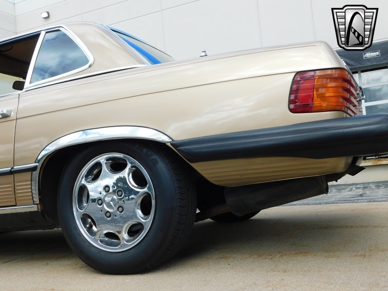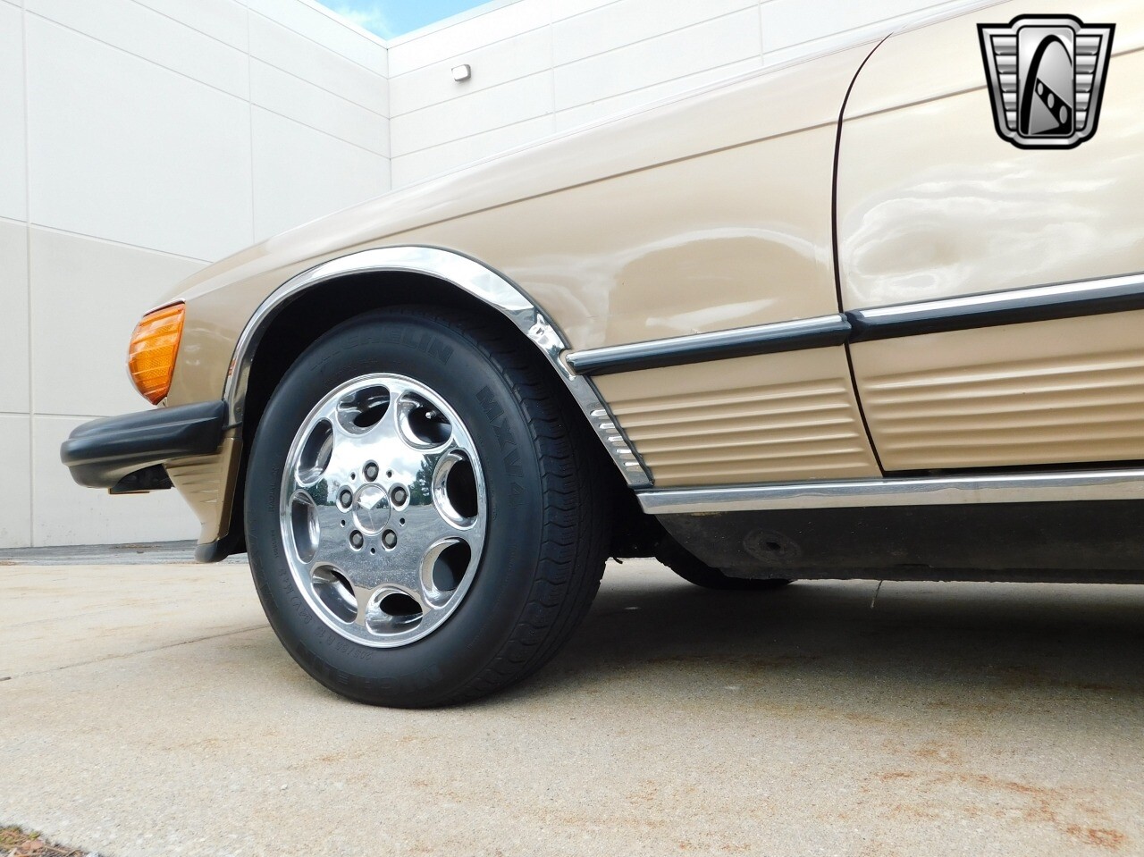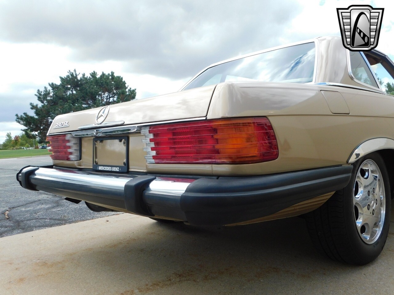 Introducing the stylish and exceptional 1982 Mercedes-Benz 380SL in splendid Champagne Metallic exterior color. This remarkable piece of automotive history promises a dreamlike drive with its robust 3.8L V8 engine, paired with a smooth-flowing automatic transmission.