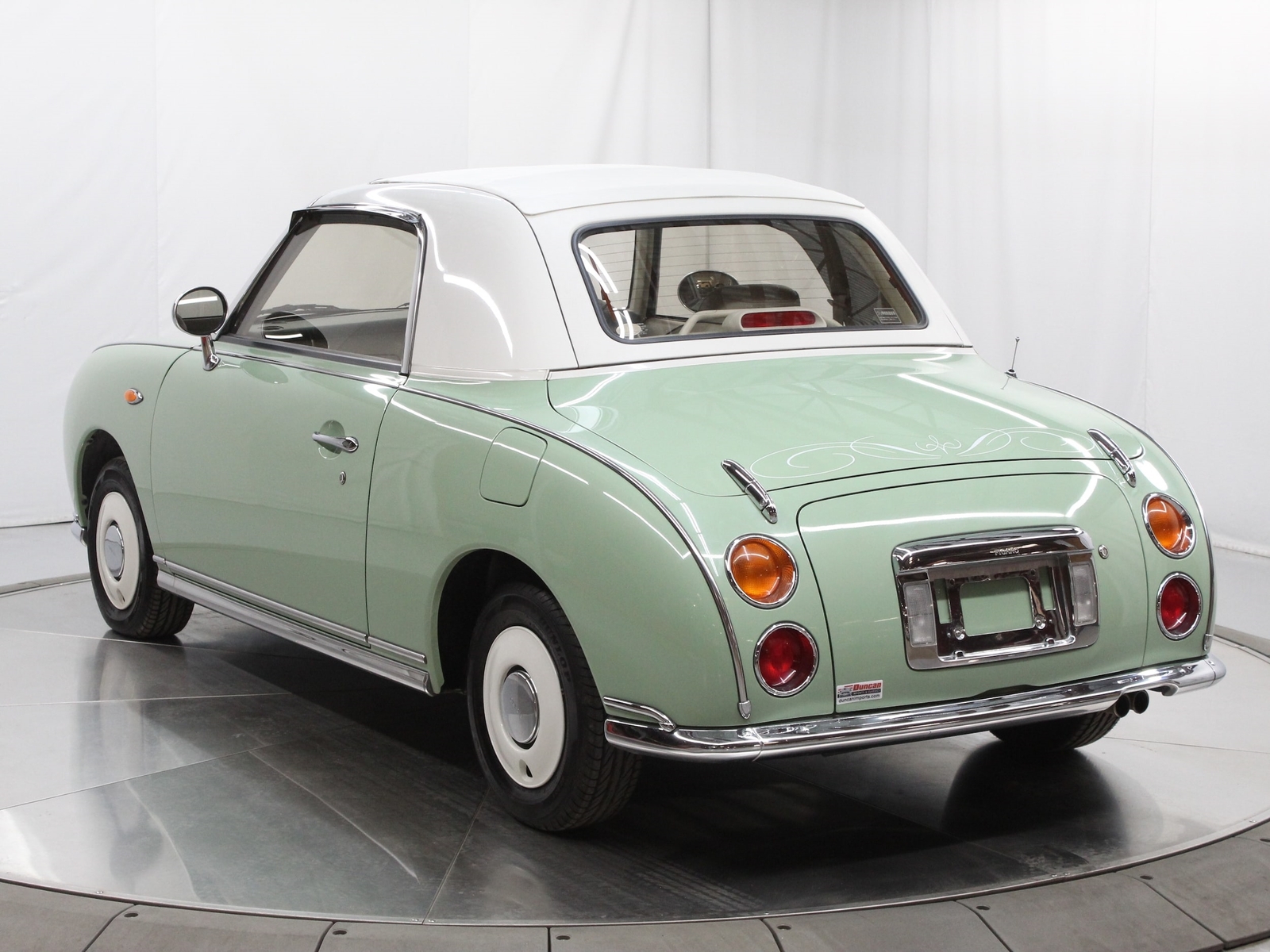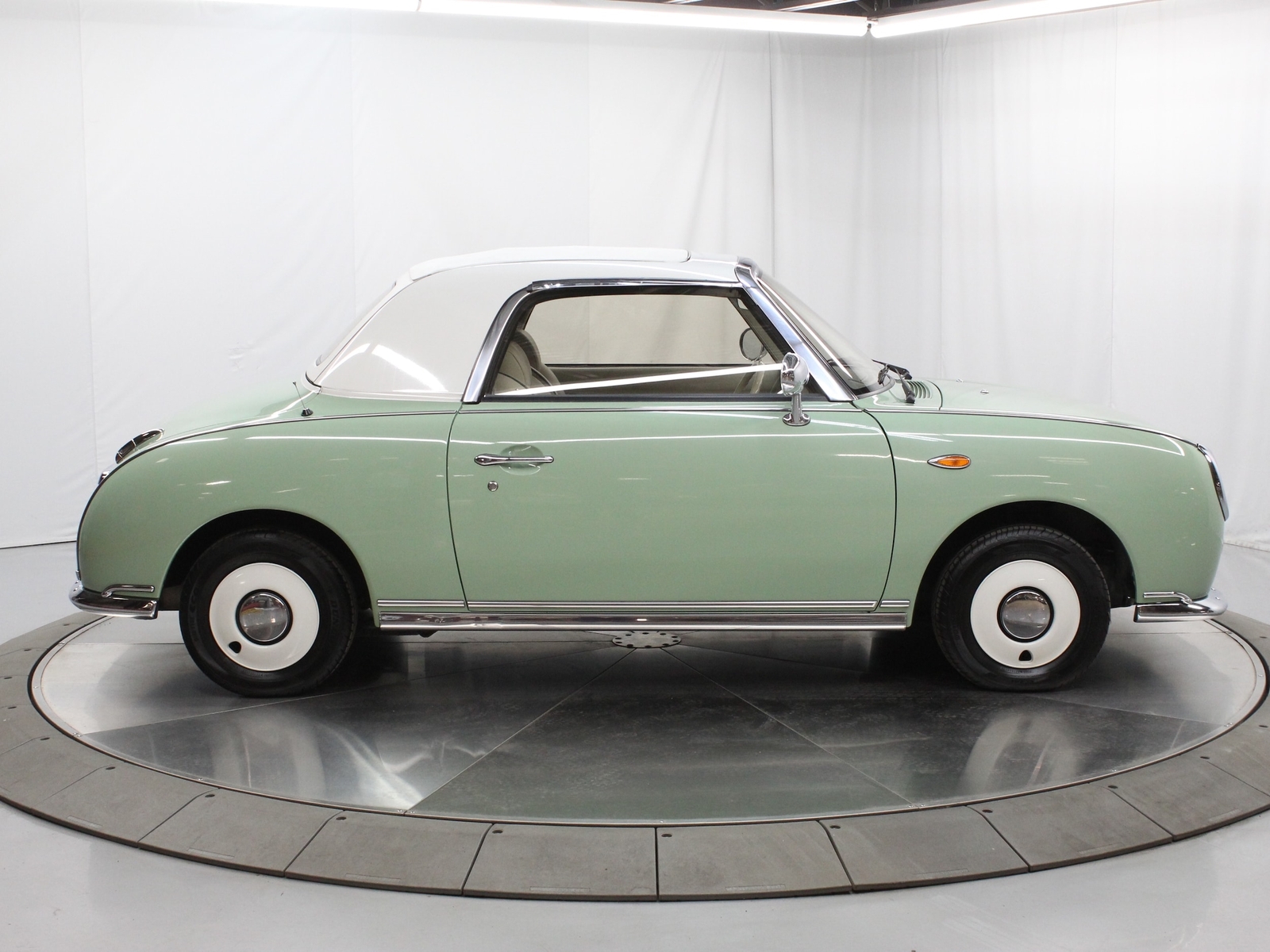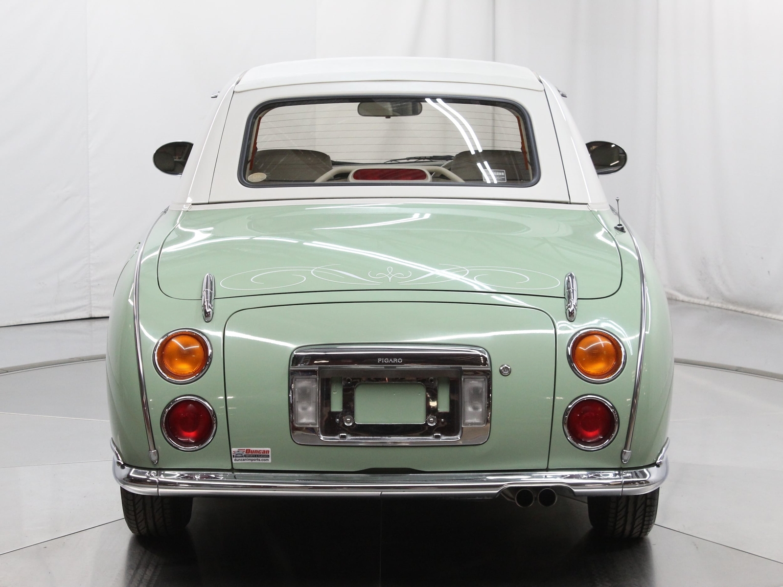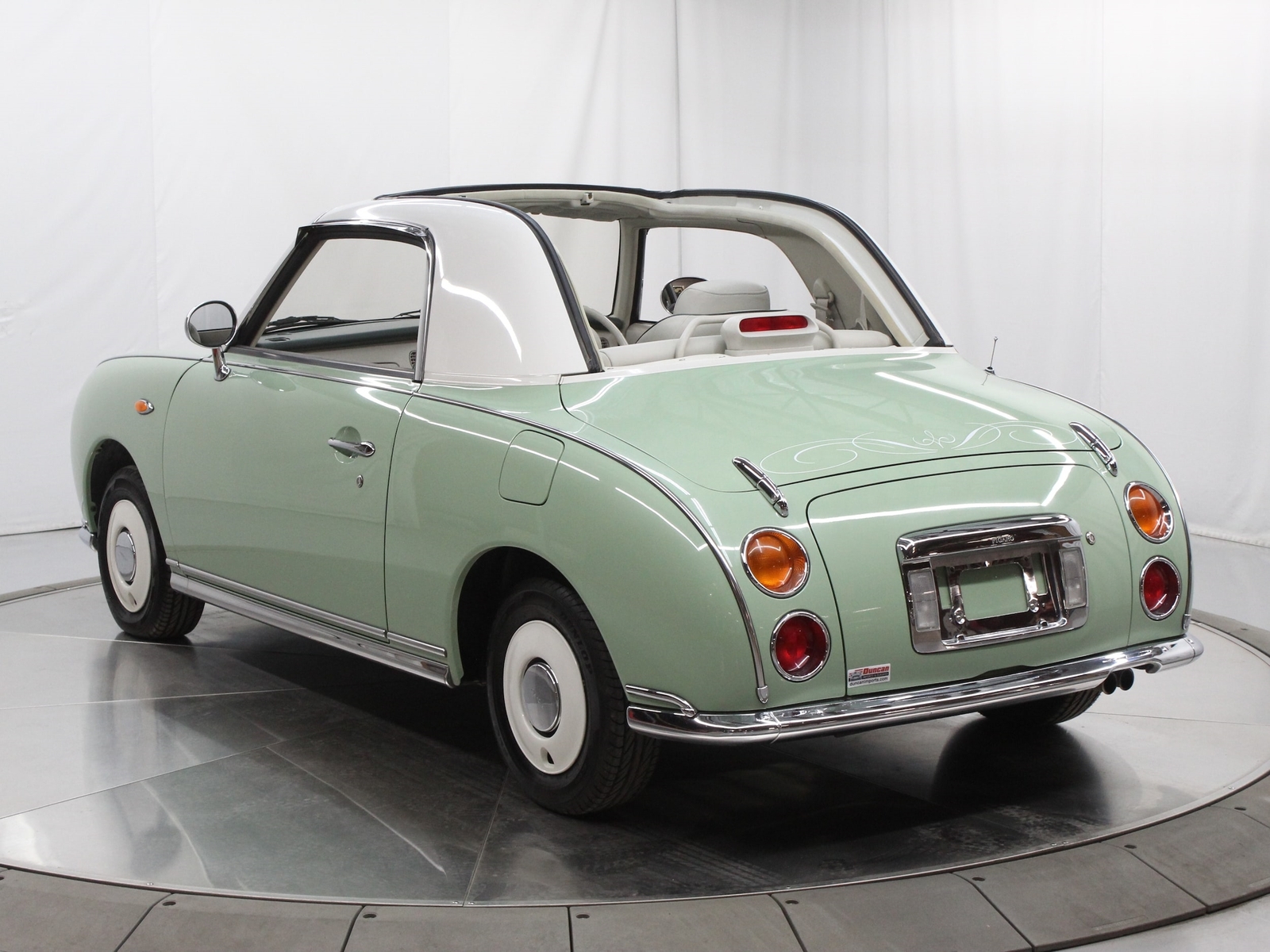 23,981 Kilometers The Nissan Figaro was manufactured in Japan, and the concept debuted at the 1989 Tokyo Motor Show, receiving favorable reviews. Production began in 1991, and there were only 20,073 units ever built all of which were sold exclusively through Nissan Cherry stores in Japan. This “Pike Car” drew inspiration from the art-deco fashion of the 1930’s, combining it with state-of-the-art technology of the 1990’s. Each unit comes with standard features such as ivory leather seats with contrasting piping, soft-feel paint on the dashboard, cd/cassette player, and chrome interior accents. This fixed-profile convertible is powered by a 1.0-liter turbocharged engine paired with a 3-speed automatic transmission, producing 75 horsepower and 78 lb-ft of torque. Finished in only four different colors, the paint choices represented the four seasons: Emerald Green for Spring, Pale Aqua for Summer, Topaz Mist for Autumn, and Lapis Grey for Winter. Third party pre-purchase inspections are welcomed and encouraged. All vehicles sold by Duncan come with a clean U.S. title.