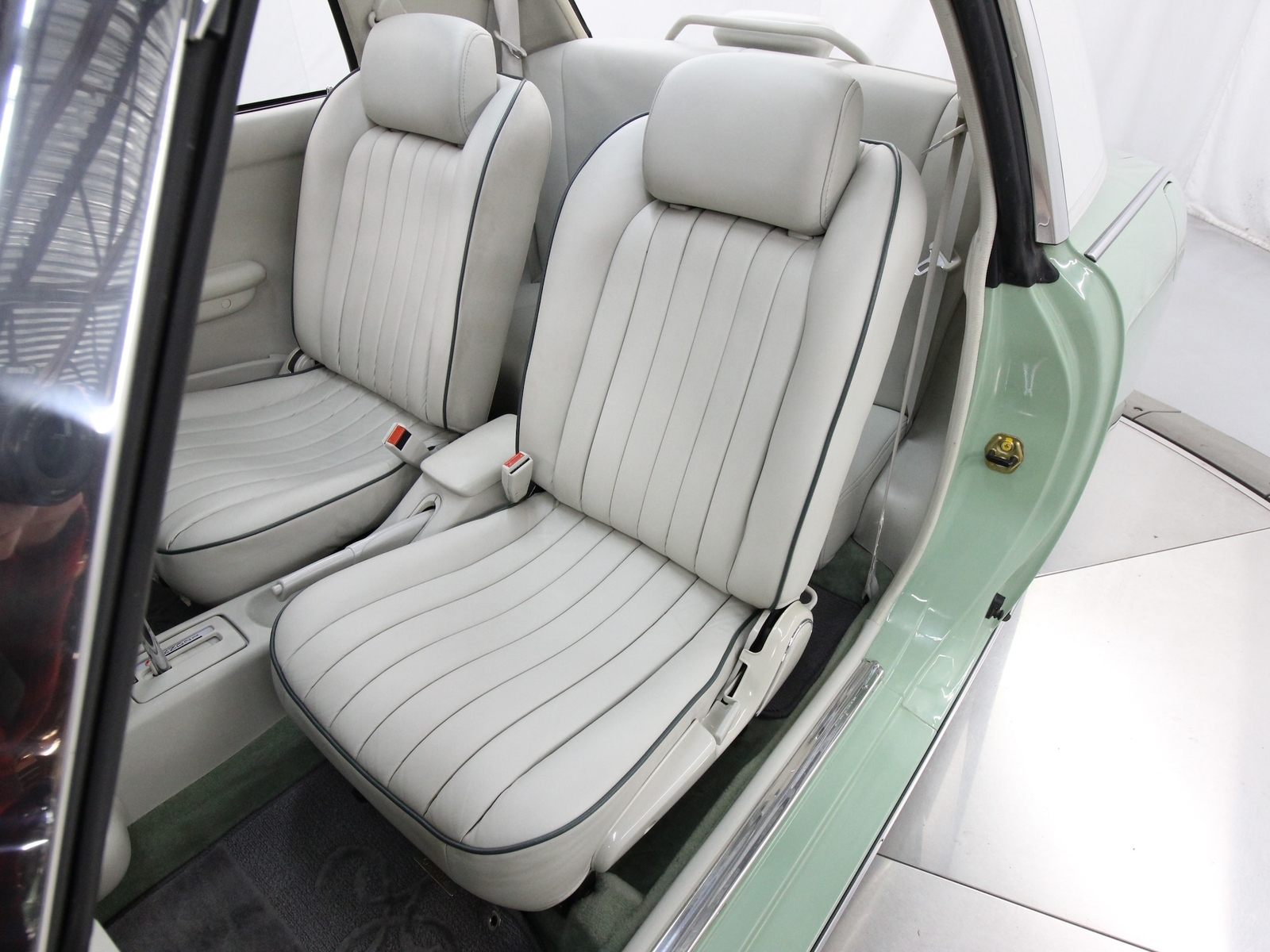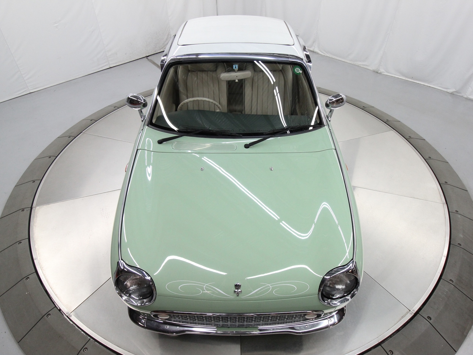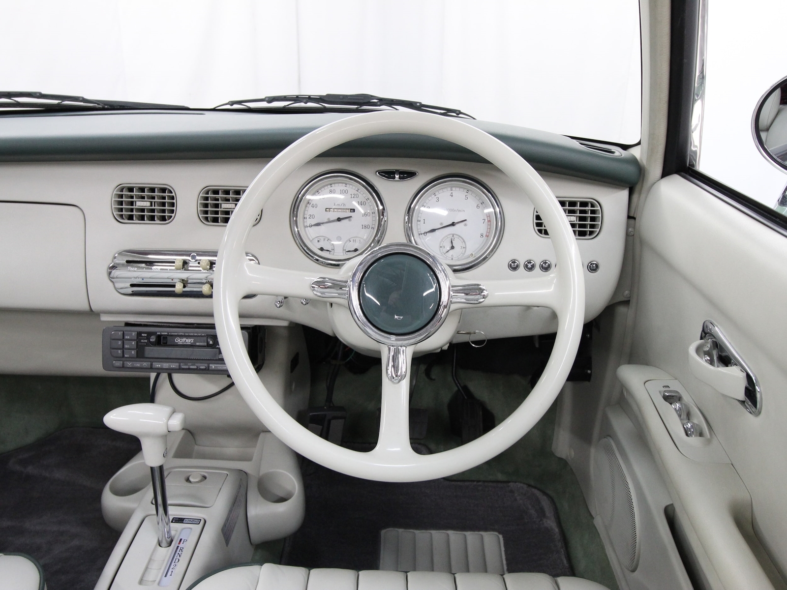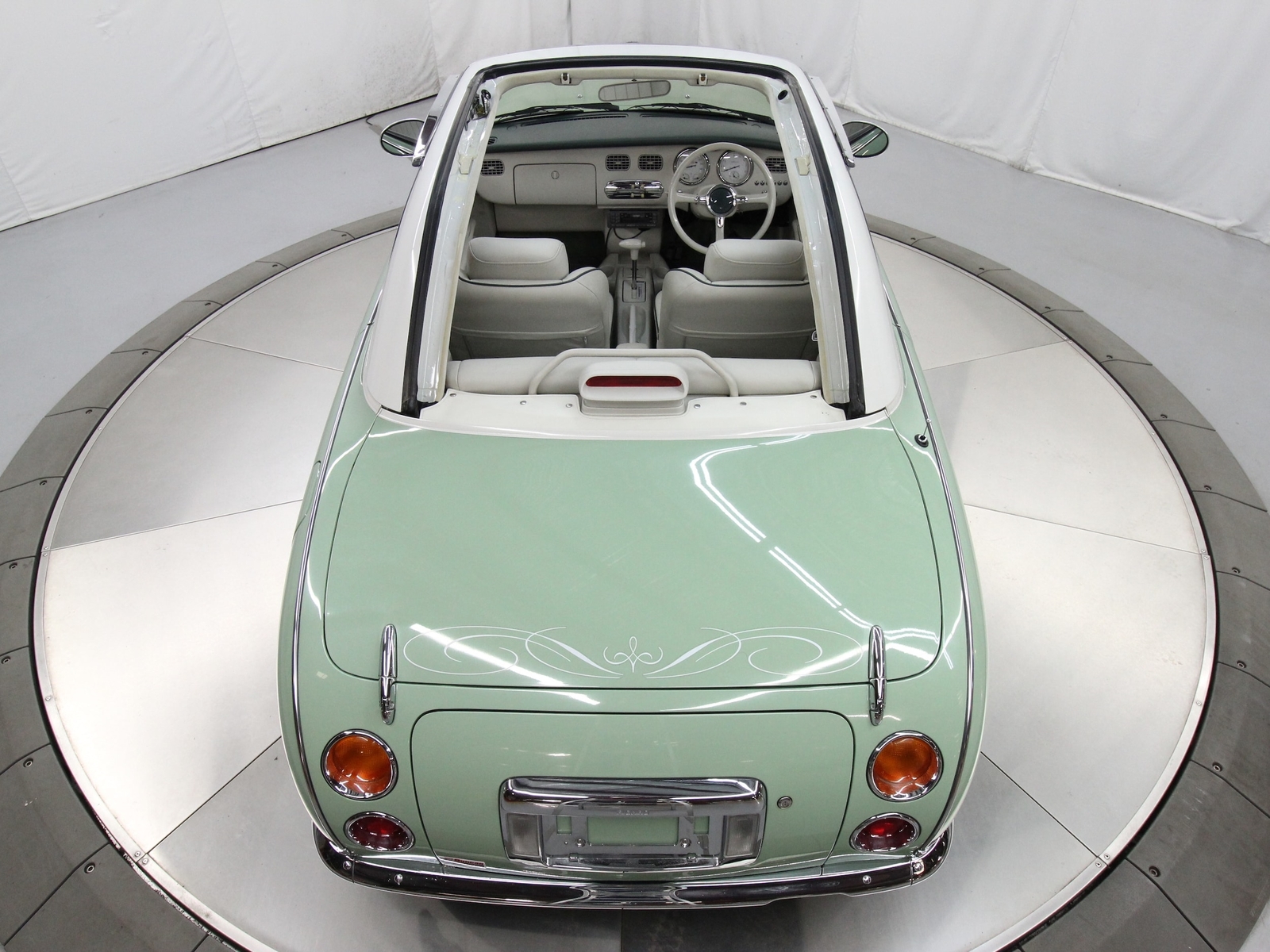 23,981 Kilometers The Nissan Figaro was manufactured in Japan, and the concept debuted at the 1989 Tokyo Motor Show, receiving favorable reviews. Production began in 1991, and there were only 20,073 units ever built all of which were sold exclusively through Nissan Cherry stores in Japan. This “Pike Car” drew inspiration from the art-deco fashion of the 1930’s, combining it with state-of-the-art technology of the 1990’s. Each unit comes with standard features such as ivory leather seats with contrasting piping, soft-feel paint on the dashboard, cd/cassette player, and chrome interior accents. This fixed-profile convertible is powered by a 1.0-liter turbocharged engine paired with a 3-speed automatic transmission, producing 75 horsepower and 78 lb-ft of torque. Finished in only four different colors, the paint choices represented the four seasons: Emerald Green for Spring, Pale Aqua for Summer, Topaz Mist for Autumn, and Lapis Grey for Winter. Third party pre-purchase inspections are welcomed and encouraged. All vehicles sold by Duncan come with a clean U.S. title.
