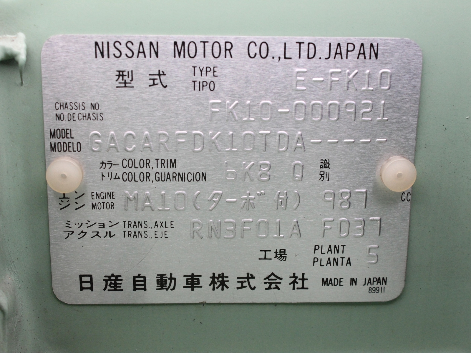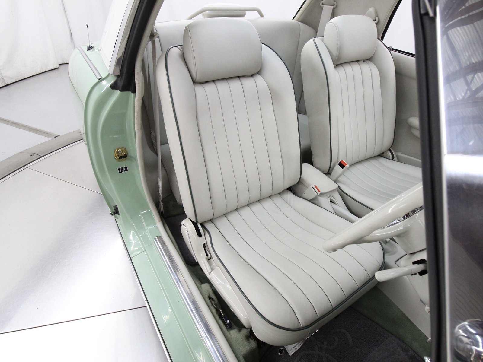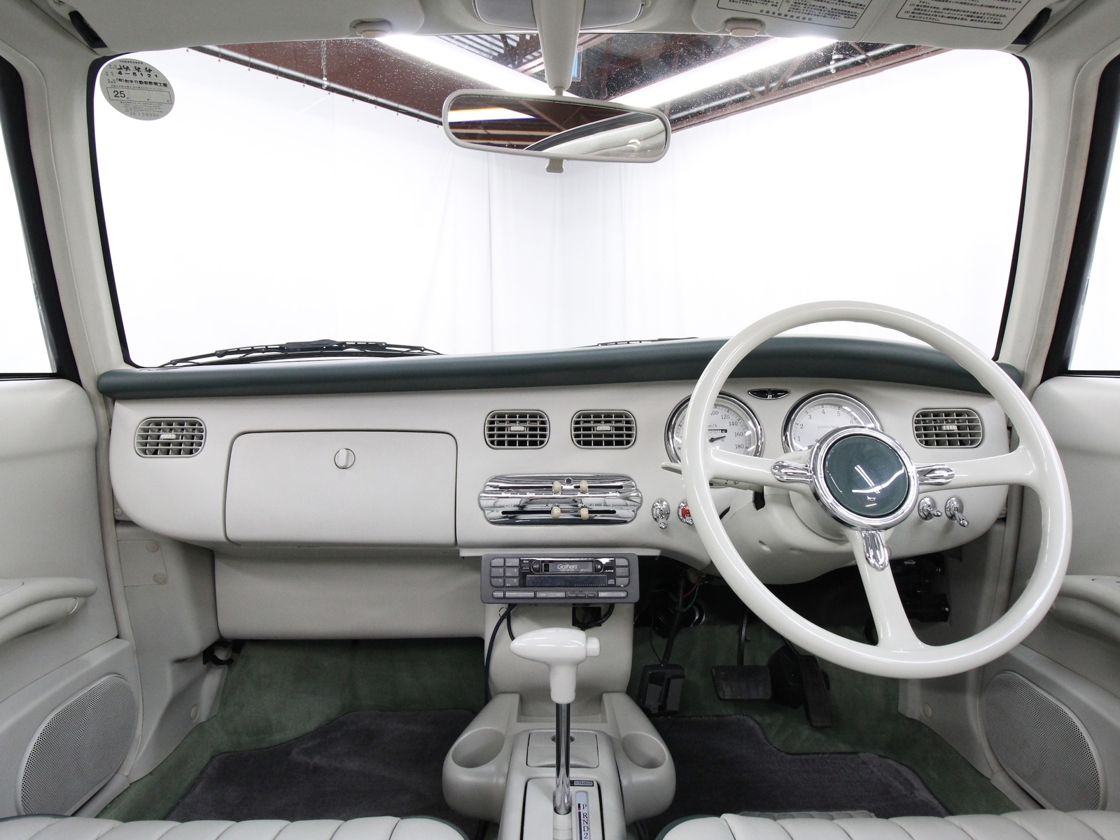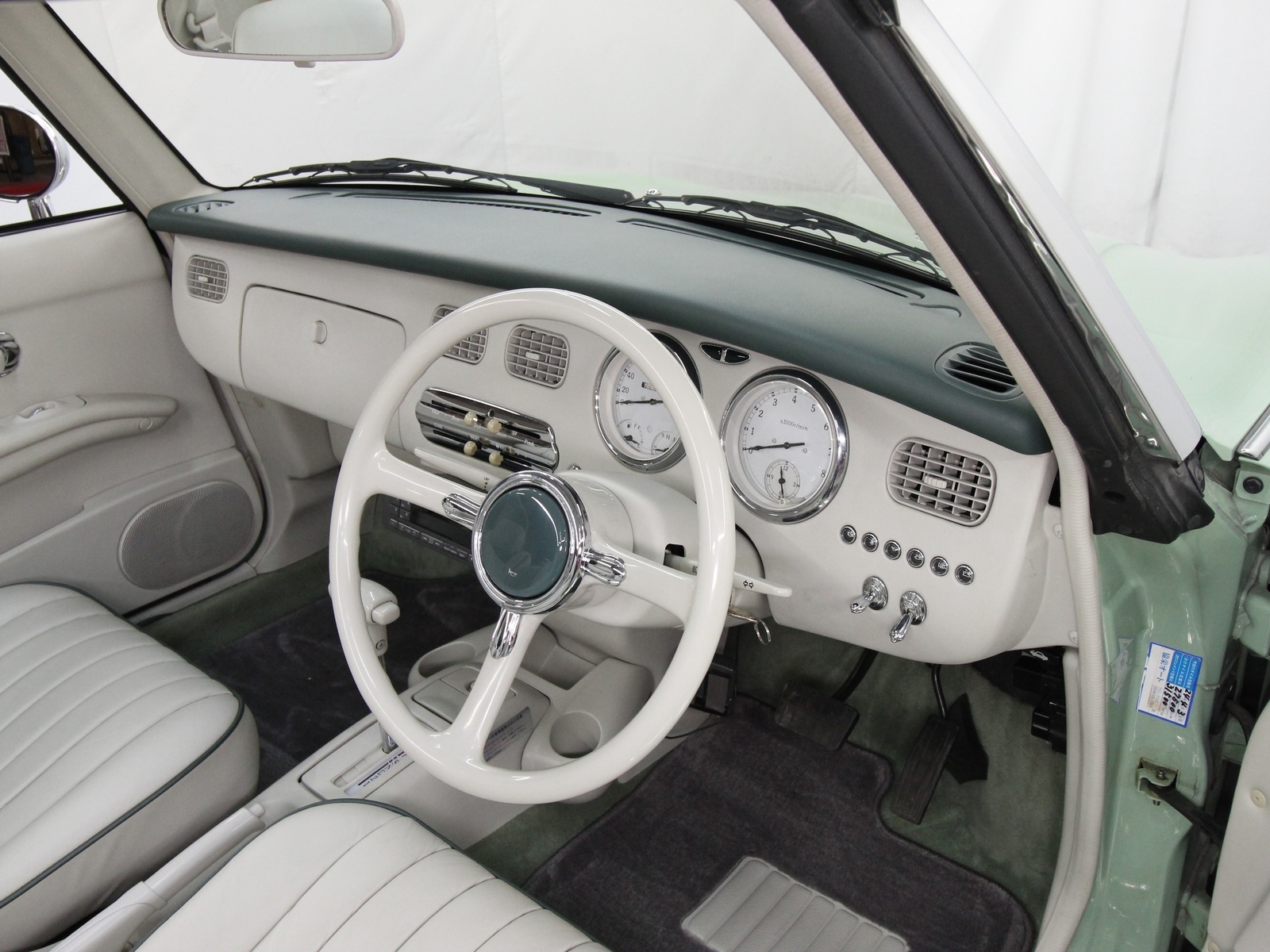23,981 Kilometers The Nissan Figaro was manufactured in Japan, and the concept debuted at the 1989 Tokyo Motor Show, receiving favorable reviews. Production began in 1991, and there were only 20,073 units ever built all of which were sold exclusively through Nissan Cherry stores in Japan. This “Pike Car” drew inspiration from the art-deco fashion of the 1930’s, combining it with state-of-the-art technology of the 1990’s. Each unit comes with standard features such as ivory leather seats with contrasting piping, soft-feel paint on the dashboard, cd/cassette player, and chrome interior accents. This fixed-profile convertible is powered by a 1.0-liter turbocharged engine paired with a 3-speed automatic transmission, producing 75 horsepower and 78 lb-ft of torque. Finished in only four different colors, the paint choices represented the four seasons: Emerald Green for Spring, Pale Aqua for Summer, Topaz Mist for Autumn, and Lapis Grey for Winter. Third party pre-purchase inspections are welcomed and encouraged. All vehicles sold by Duncan come with a clean U.S. title.