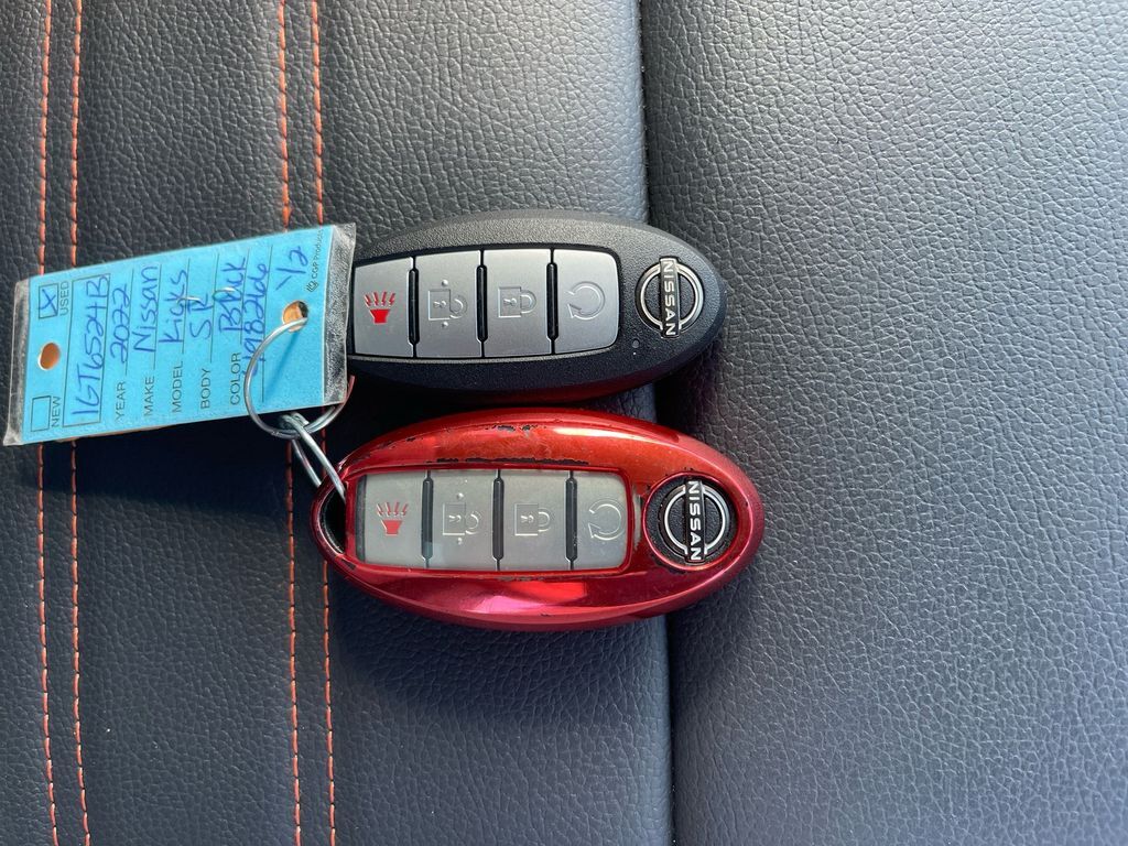 THIS VEHICLE INCLUDES THE FOLLOWING FEATURES AND OPTIONS: Interior Electronics Package (Door Pocket Light, Frameless Auto-Dimming Mirror, Interior Ambient Lighting, and Universal Remote), Premium Package (Bose Personal Plus Audio System, Heated Front Seats, Heated Steering Wheel, Prima-Tex Appointed Seat Trim, Security System, and Tonneau Cover), Technology Package (NissanConnect Services), Kicks SR, 3.927 Axle Ratio, 4-Wheel Disc Brakes, 6 Speakers, ABS brakes, Air Conditioning, Alloy wheels, AM/FM radio: SiriusXM, Apple CarPlay/Android Auto, Auto High-beam Headlights, Auto-dimming Rear-View mirror, Automatic temperature control, Blind Spot Warning, Brake assist, Bumpers: body-color, Carpeted Floor Mats w/Cargo Mat, Cloth Seat Trim, Compass, Cruise Control, Delay-off headlights, Driver door bin, Driver vanity mirror, Dual front impact airbags, Dual front side impact airbags, Electronic Stability Control, Exterior Ground Lighting, Front anti-roll bar, Front Bucket Seats, Front Center Armrest, Front fog lights, Front reading lights, Front wheel independent suspension, Fully automatic headlights, Heated door mirrors, Illuminated entry, Illuminated Kick Plates, Knee airbag, Low tire pressure warning, Occupant sensing airbag, Outside temperature display, Overhead airbag, Panic alarm, Passenger door bin, Passenger vanity mirror, Power door mirrors, Power steering, Power windows, Radio data system, Radio: AM/FM Audio System, Rear Parking Sensors, Rear reading lights, Rear side impact airbag, Rear window defroster, Rear window wiper, Remote keyless entry, Roof rack: rails only, Splash Guards Grain (4 Piece), Split folding rear seat, Sport steering wheel, SR Rear Roof Spoiler, Steering wheel mounted audio controls, Tachometer, Telescoping steering wheel, Tilt steering wheel, Traction control, Trip computer, Turn signal indicator mirrors, Variably intermittent wipers, Wheels: 17 5-Hole Alloy, and Wheels: 17 Black Alloy.