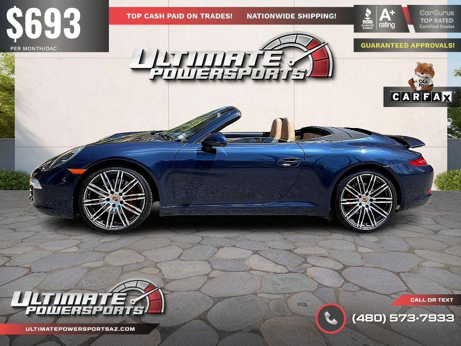 ** 1 OWNER 2016 PORSCHE 911 S CAB 997.2 CLEAN TITLE! FULLY SERVICED AT PORSCHE! HIGHWAY COMMUTE MILES! LIKE NEW! CLEAN TITLE! ** Experience exhilaration behind the wheel of this meticulously maintained 2016 Porsche 911 Carrera S Cabriolet| owned by a single enthusiast and pampered since day one.. With its sleek design and powerful performance| this Carrera S Cabriolet is a true embodiment of luxury and precision engineering. Boasting a pristine exterior finished in Sapphire Blue Metallic| every curve of this convertible exudes timeless elegance and sporty sophistication.. Step inside to discover a meticulously crafted interior that envelops you in comfort and refinement. Luxurious leather seats| premium materials| and cutting-edge technology seamlessly blend to create an unparalleled driving experience.. Under the hood| the heart of this Porsche roars to life with a potent 3.0-liter twin-turbocharged flat-six engine| delivering exhilarating performance and responsive handling with every twist and turn of the road.. Meticulously maintained with regular servicing and kept in pristine condition| this 911 Carrera S Cabriolet offers not just a car| but an investment in driving pleasure and prestige.. Don't miss your chance to own this exceptional 2016 Porsche 911 Carrera S Cabriolet. Contact us today to schedule a test drive and experience automotive excellence like never before.... Read the full description on our Website at: