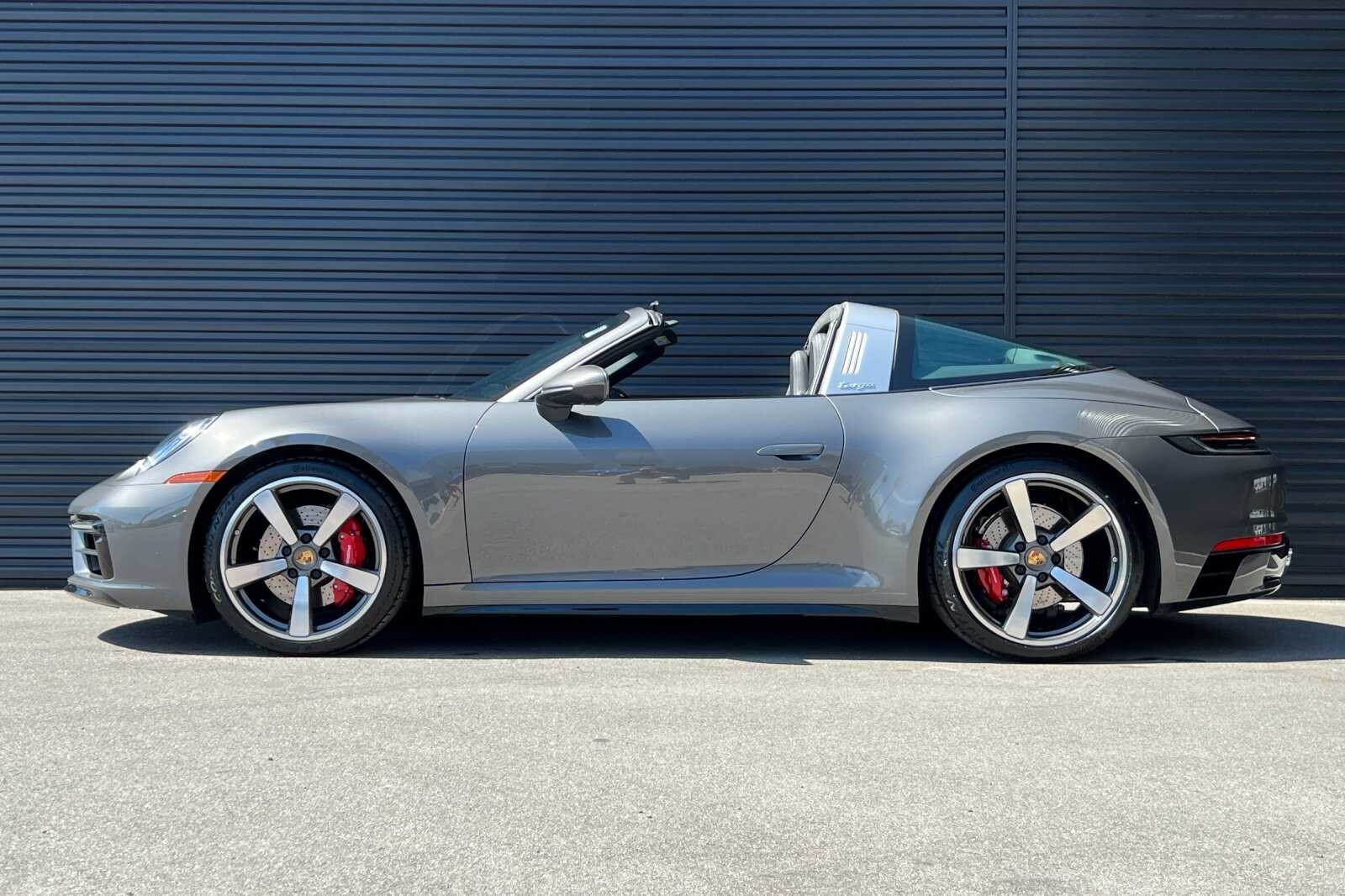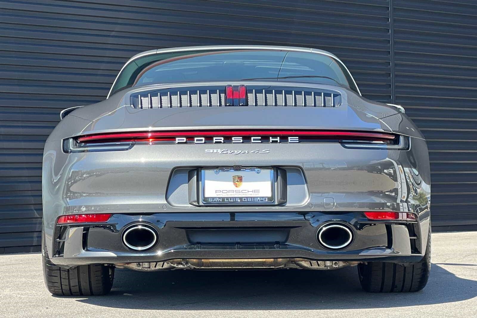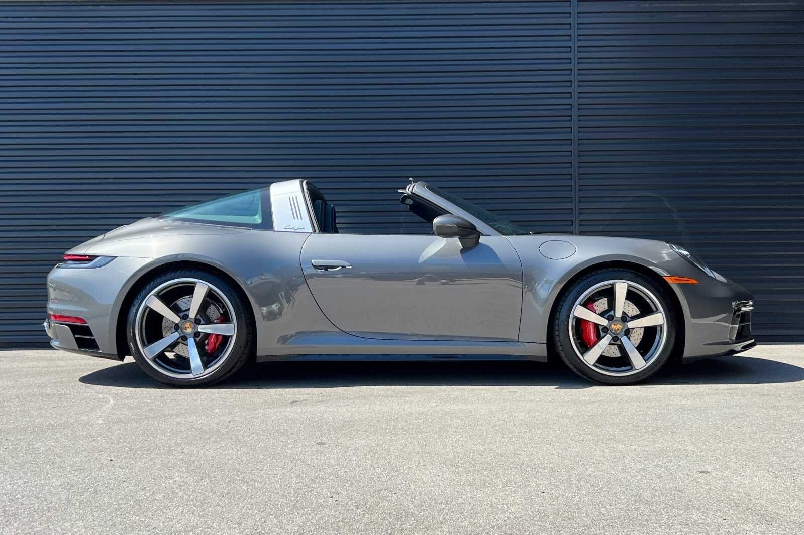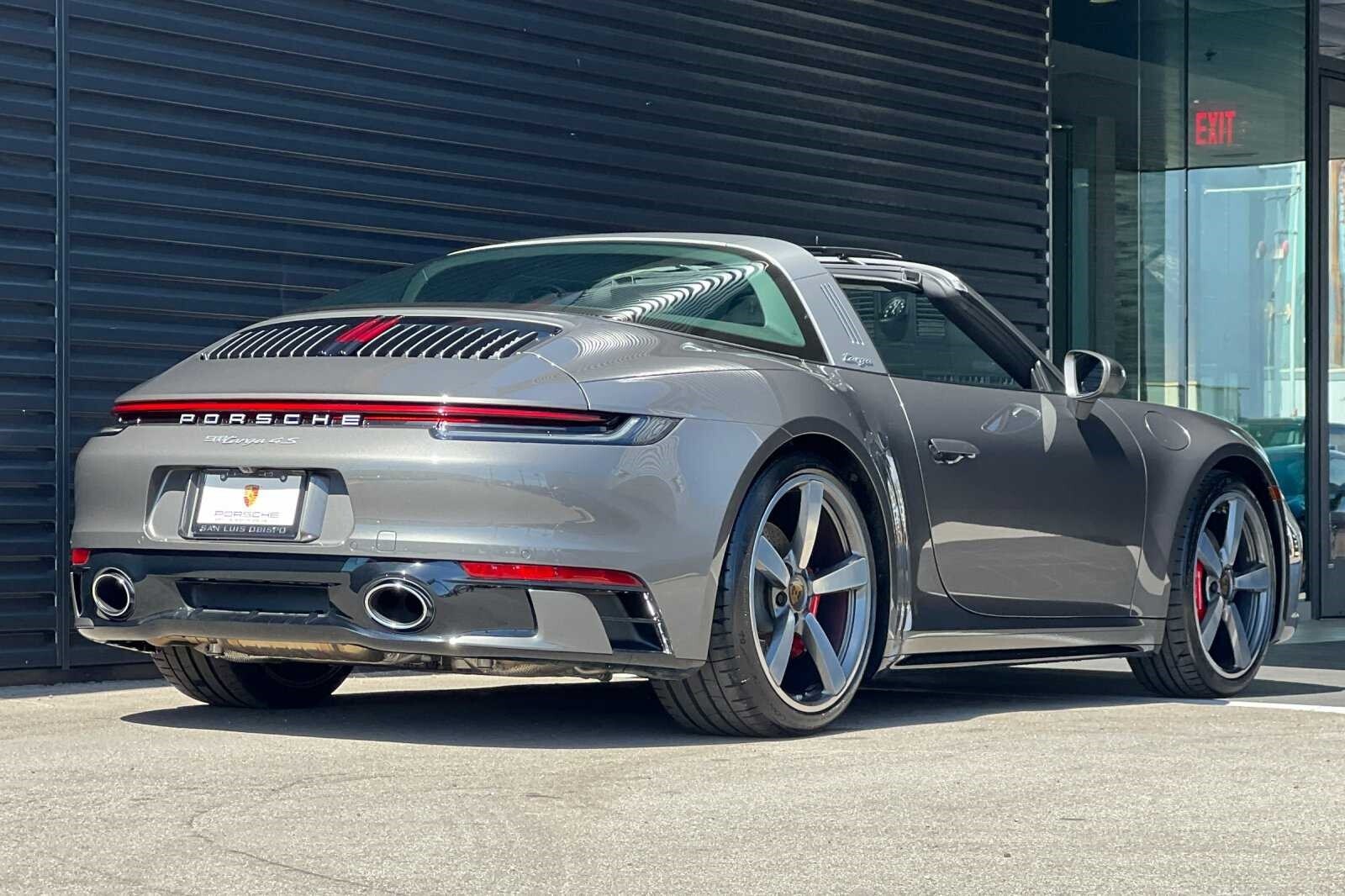 This Porsche San Luis Obispo 2021 Agate Grey Metallic Porsche 911 Targa 4S AWD is well equipped and includes these features and benefits: 18-Way Adaptive Sport Seats Plus w/Memory Package, Smoking Package, Sport Chrono Package, Sport Package (Sport Exhaust System w/Tailpipes in Silver), SportDesign Package in High Gloss Black, Storage Package, Porsche Approved Certified Pre-Owned Certified, AWD, BOSE Surround Sound System, Navigation System, Porsche Dynamic Chassis Control, Porsche InnoDrive w/ACC & ALK, Power Steering Plus, Rear Axle Steering, SportDesign Front Fascia, Surround View, Wheels: 20 Front/21 Rear Carrera Exclusive Design, 4-Wheel Disc Brakes, 8 Speakers, ABS brakes, Adaptive suspension, Air Conditioning, Alloy wheels, Apple CarPlay, Auto-dimming door mirrors, Auto-dimming Rear-View mirror, Automatic temperature control, Brake assist, Bumpers: body-color, Convertible roof lining, Delay-off headlights, Driver door bin, Driver vanity mirror, Dual front impact airbags, Dual front side impact airbags, Electronic Stability Control, Exterior Parking Camera Rear, Four wheel independent suspension, Front anti-roll bar, Front Bucket Seats, Front Center Armrest, Front dual zone A/C, Front reading lights, Fully automatic headlights, Garage door transmitter: HomeLink, Glass rear window, Heated door mirrors, Heated front seats, Illuminated entry, Integrated roll-over protection, Leather steering wheel, Low tire pressure warning, Occupant sensing airbag, Outside temperature display, Overhead airbag, Overhead console, Passenger door bin, Passenger vanity mirror, Porsche Communication Management, Power convertible roof, Power door mirrors, Power driver seat, Power passenger seat, Power steering, Power windows, Radio data system, Rain sensing wipers, Rear anti-roll bar, Rear fog lights, Rear window defroster, Remote keyless entry, Security system, Speed control, Split folding rear seat, Spoiler, Sport steering wheel, Steering wheel mounted audio controls, Tachometer, Telescoping steering wheel, Tilt steering wheel, Traction control, Trip computer, and Variably intermittent wipers. 360 Camera, Active Parking Assist, Adaptive Cruise Control, Adaptive Headlights, Android Auto, Apple Carplay, Automatic Headlights, Blind-Spot Monitors, Bluetooth, Collision Avoidance System, Collision Warning Alert System, Drowsiness Alert, Heated/Cooled Seats, Keyless Access w/Push Button Start, Lane Keeping Assist, Navigation, Smartphone App Integration, Touchscreen Controls, Voice Recognition, Wi-Fi Hotspot, AWD, 18-Way Adaptive Sport Seats Plus w/Memory Package, BOSE Surround Sound System, Navigation System, Porsche Dynamic Chassis Control, Porsche InnoDrive w/ACC & ALK, Power Steering Plus, Rear Axle Steering, Smoking Package, Sport Chrono Package, Sport Exhaust System w/Tailpipes in Silver, Sport Package, SportDesign Front Fascia, SportDesign Package in High Gloss Black, Storage Package, Surround View, Wheels: 20 Front/21 Rear Carrera Exclusive Design.