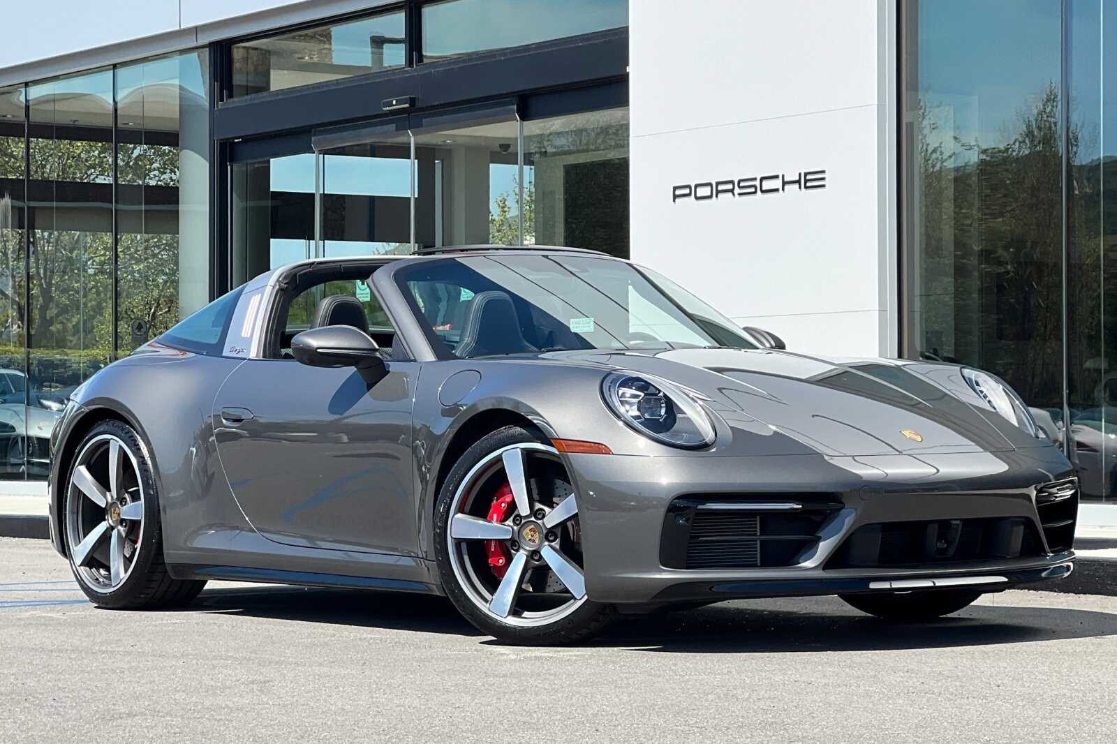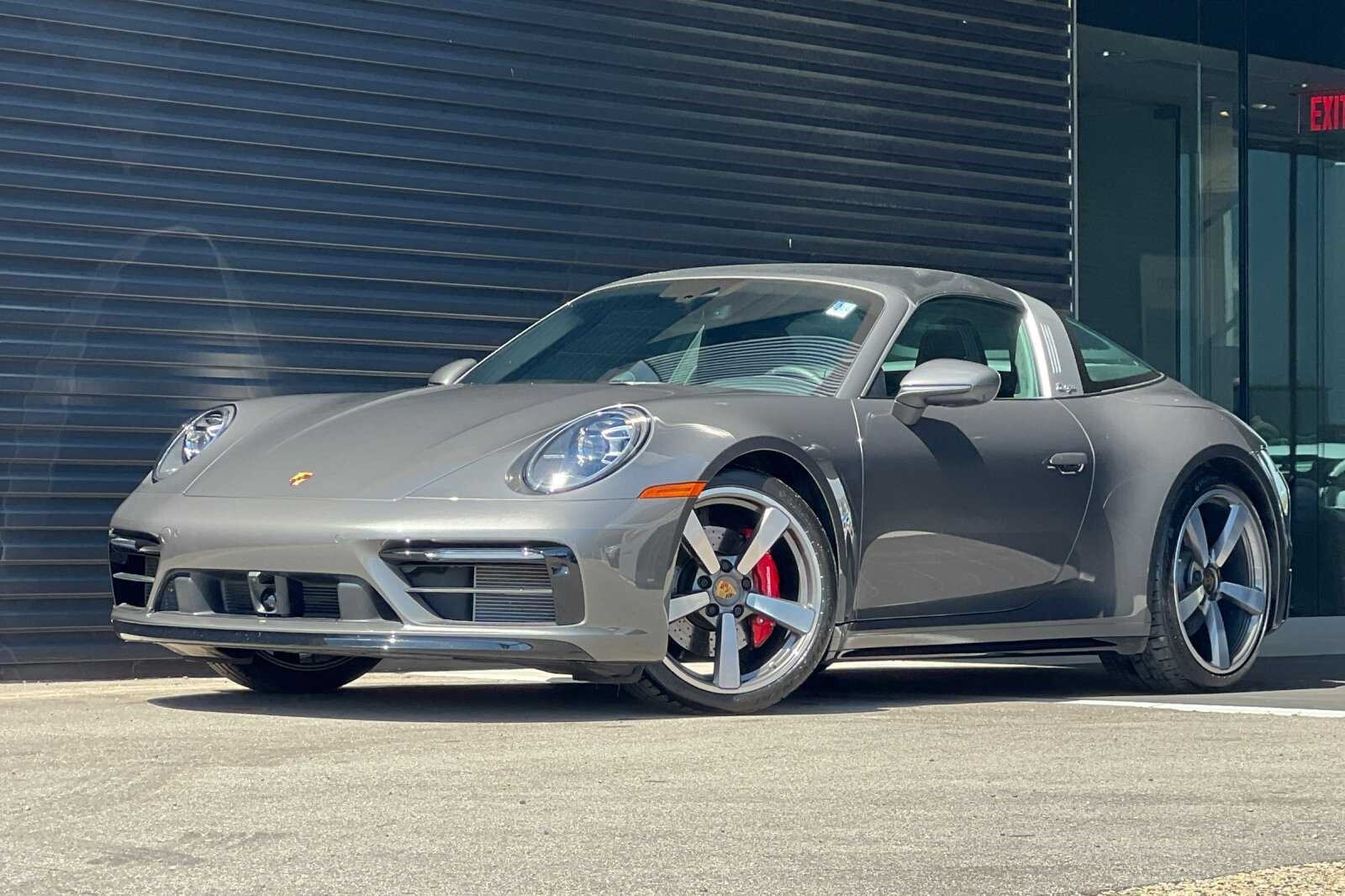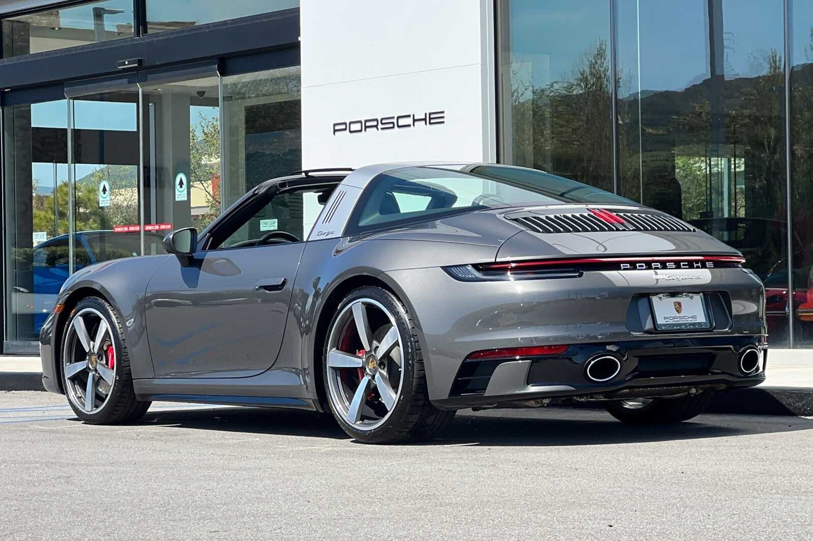 This Porsche San Luis Obispo 2021 Agate Grey Metallic Porsche 911 Targa 4S AWD is well equipped and includes these features and benefits: 18-Way Adaptive Sport Seats Plus w/Memory Package, Smoking Package, Sport Chrono Package, Sport Package (Sport Exhaust System w/Tailpipes in Silver), SportDesign Package in High Gloss Black, Storage Package, Porsche Approved Certified Pre-Owned Certified, AWD, BOSE Surround Sound System, Navigation System, Porsche Dynamic Chassis Control, Porsche InnoDrive w/ACC & ALK, Power Steering Plus, Rear Axle Steering, SportDesign Front Fascia, Surround View, Wheels: 20 Front/21 Rear Carrera Exclusive Design, 4-Wheel Disc Brakes, 8 Speakers, ABS brakes, Adaptive suspension, Air Conditioning, Alloy wheels, Apple CarPlay, Auto-dimming door mirrors, Auto-dimming Rear-View mirror, Automatic temperature control, Brake assist, Bumpers: body-color, Convertible roof lining, Delay-off headlights, Driver door bin, Driver vanity mirror, Dual front impact airbags, Dual front side impact airbags, Electronic Stability Control, Exterior Parking Camera Rear, Four wheel independent suspension, Front anti-roll bar, Front Bucket Seats, Front Center Armrest, Front dual zone A/C, Front reading lights, Fully automatic headlights, Garage door transmitter: HomeLink, Glass rear window, Heated door mirrors, Heated front seats, Illuminated entry, Integrated roll-over protection, Leather steering wheel, Low tire pressure warning, Occupant sensing airbag, Outside temperature display, Overhead airbag, Overhead console, Passenger door bin, Passenger vanity mirror, Porsche Communication Management, Power convertible roof, Power door mirrors, Power driver seat, Power passenger seat, Power steering, Power windows, Radio data system, Rain sensing wipers, Rear anti-roll bar, Rear fog lights, Rear window defroster, Remote keyless entry, Security system, Speed control, Split folding rear seat, Spoiler, Sport steering wheel, Steering wheel mounted audio controls, Tachometer, Telescoping steering wheel, Tilt steering wheel, Traction control, Trip computer, and Variably intermittent wipers. 360 Camera, Active Parking Assist, Adaptive Cruise Control, Adaptive Headlights, Android Auto, Apple Carplay, Automatic Headlights, Blind-Spot Monitors, Bluetooth, Collision Avoidance System, Collision Warning Alert System, Drowsiness Alert, Heated/Cooled Seats, Keyless Access w/Push Button Start, Lane Keeping Assist, Navigation, Smartphone App Integration, Touchscreen Controls, Voice Recognition, Wi-Fi Hotspot, AWD, 18-Way Adaptive Sport Seats Plus w/Memory Package, BOSE Surround Sound System, Navigation System, Porsche Dynamic Chassis Control, Porsche InnoDrive w/ACC & ALK, Power Steering Plus, Rear Axle Steering, Smoking Package, Sport Chrono Package, Sport Exhaust System w/Tailpipes in Silver, Sport Package, SportDesign Front Fascia, SportDesign Package in High Gloss Black, Storage Package, Surround View, Wheels: 20 Front/21 Rear Carrera Exclusive Design.