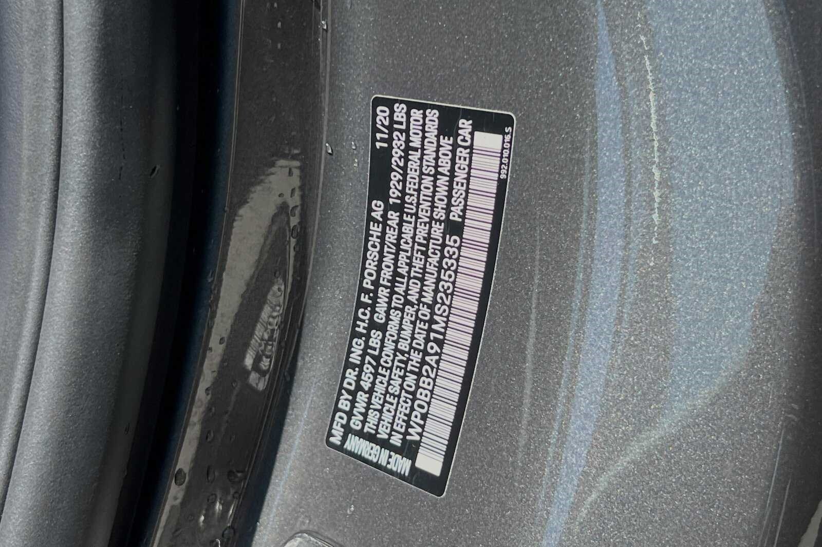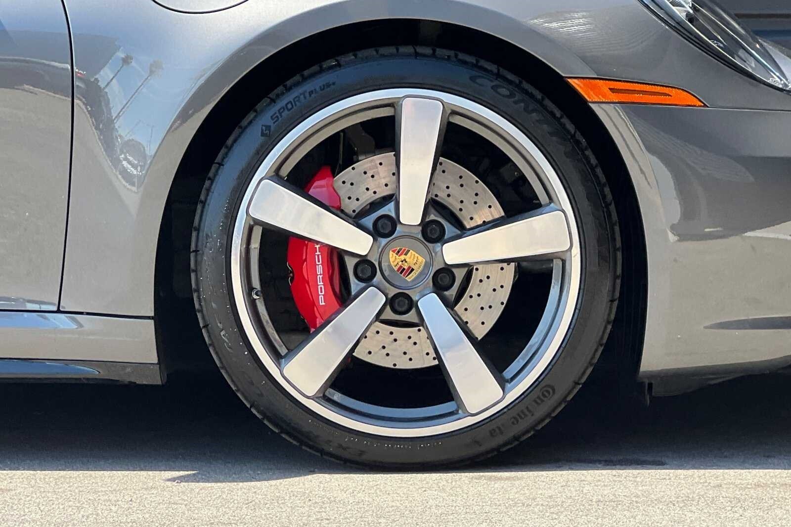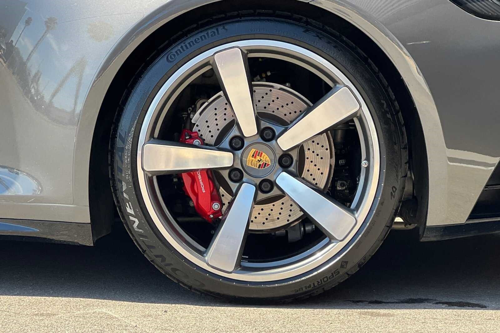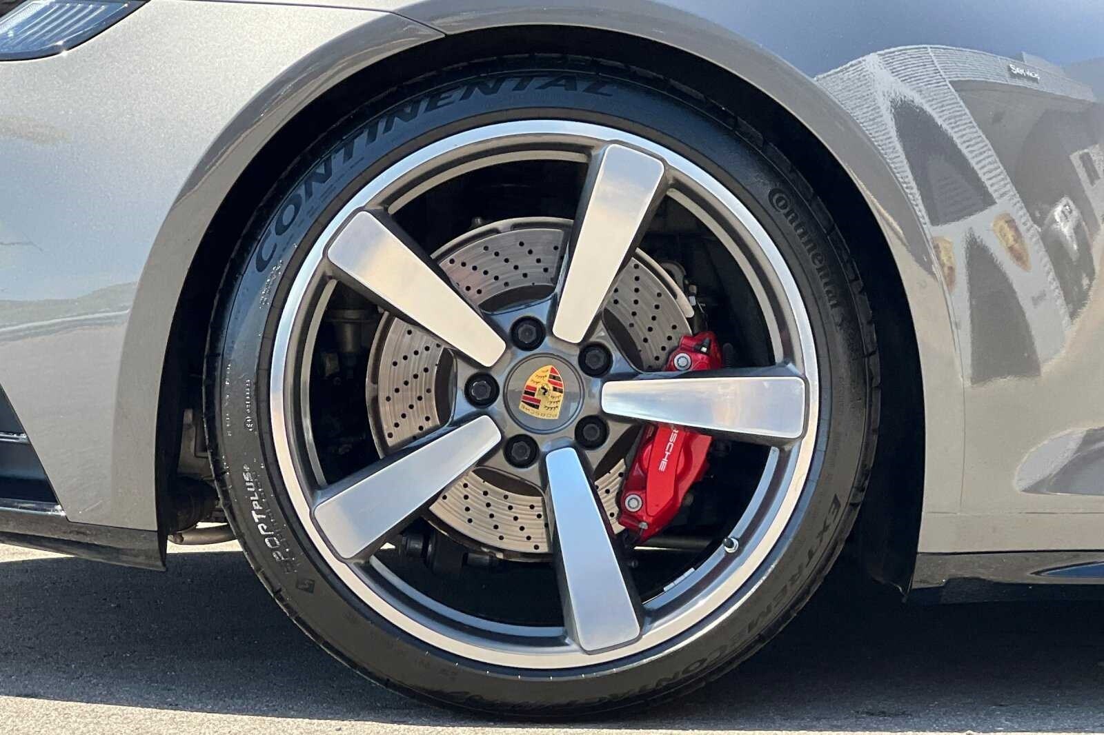 This Porsche San Luis Obispo 2021 Agate Grey Metallic Porsche 911 Targa 4S AWD is well equipped and includes these features and benefits: 18-Way Adaptive Sport Seats Plus w/Memory Package, Smoking Package, Sport Chrono Package, Sport Package (Sport Exhaust System w/Tailpipes in Silver), SportDesign Package in High Gloss Black, Storage Package, Porsche Approved Certified Pre-Owned Certified, AWD, BOSE Surround Sound System, Navigation System, Porsche Dynamic Chassis Control, Porsche InnoDrive w/ACC & ALK, Power Steering Plus, Rear Axle Steering, SportDesign Front Fascia, Surround View, Wheels: 20 Front/21 Rear Carrera Exclusive Design, 4-Wheel Disc Brakes, 8 Speakers, ABS brakes, Adaptive suspension, Air Conditioning, Alloy wheels, Apple CarPlay, Auto-dimming door mirrors, Auto-dimming Rear-View mirror, Automatic temperature control, Brake assist, Bumpers: body-color, Convertible roof lining, Delay-off headlights, Driver door bin, Driver vanity mirror, Dual front impact airbags, Dual front side impact airbags, Electronic Stability Control, Exterior Parking Camera Rear, Four wheel independent suspension, Front anti-roll bar, Front Bucket Seats, Front Center Armrest, Front dual zone A/C, Front reading lights, Fully automatic headlights, Garage door transmitter: HomeLink, Glass rear window, Heated door mirrors, Heated front seats, Illuminated entry, Integrated roll-over protection, Leather steering wheel, Low tire pressure warning, Occupant sensing airbag, Outside temperature display, Overhead airbag, Overhead console, Passenger door bin, Passenger vanity mirror, Porsche Communication Management, Power convertible roof, Power door mirrors, Power driver seat, Power passenger seat, Power steering, Power windows, Radio data system, Rain sensing wipers, Rear anti-roll bar, Rear fog lights, Rear window defroster, Remote keyless entry, Security system, Speed control, Split folding rear seat, Spoiler, Sport steering wheel, Steering wheel mounted audio controls, Tachometer, Telescoping steering wheel, Tilt steering wheel, Traction control, Trip computer, and Variably intermittent wipers. 360 Camera, Active Parking Assist, Adaptive Cruise Control, Adaptive Headlights, Android Auto, Apple Carplay, Automatic Headlights, Blind-Spot Monitors, Bluetooth, Collision Avoidance System, Collision Warning Alert System, Drowsiness Alert, Heated/Cooled Seats, Keyless Access w/Push Button Start, Lane Keeping Assist, Navigation, Smartphone App Integration, Touchscreen Controls, Voice Recognition, Wi-Fi Hotspot, AWD, 18-Way Adaptive Sport Seats Plus w/Memory Package, BOSE Surround Sound System, Navigation System, Porsche Dynamic Chassis Control, Porsche InnoDrive w/ACC & ALK, Power Steering Plus, Rear Axle Steering, Smoking Package, Sport Chrono Package, Sport Exhaust System w/Tailpipes in Silver, Sport Package, SportDesign Front Fascia, SportDesign Package in High Gloss Black, Storage Package, Surround View, Wheels: 20 Front/21 Rear Carrera Exclusive Design.