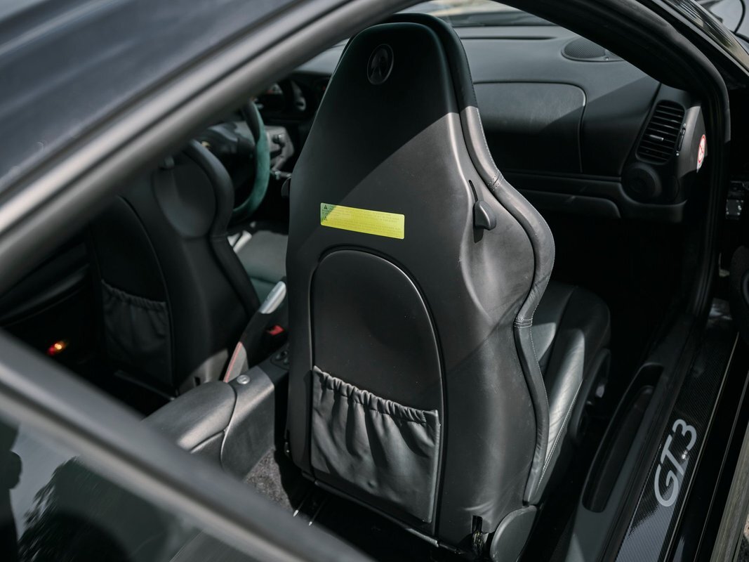 This vehicle was well cared for, and still showcases its original black paint on every body panel. The painted model designation and xenon headlight package make the exterior of this beautiful GT3 standout from the rest.