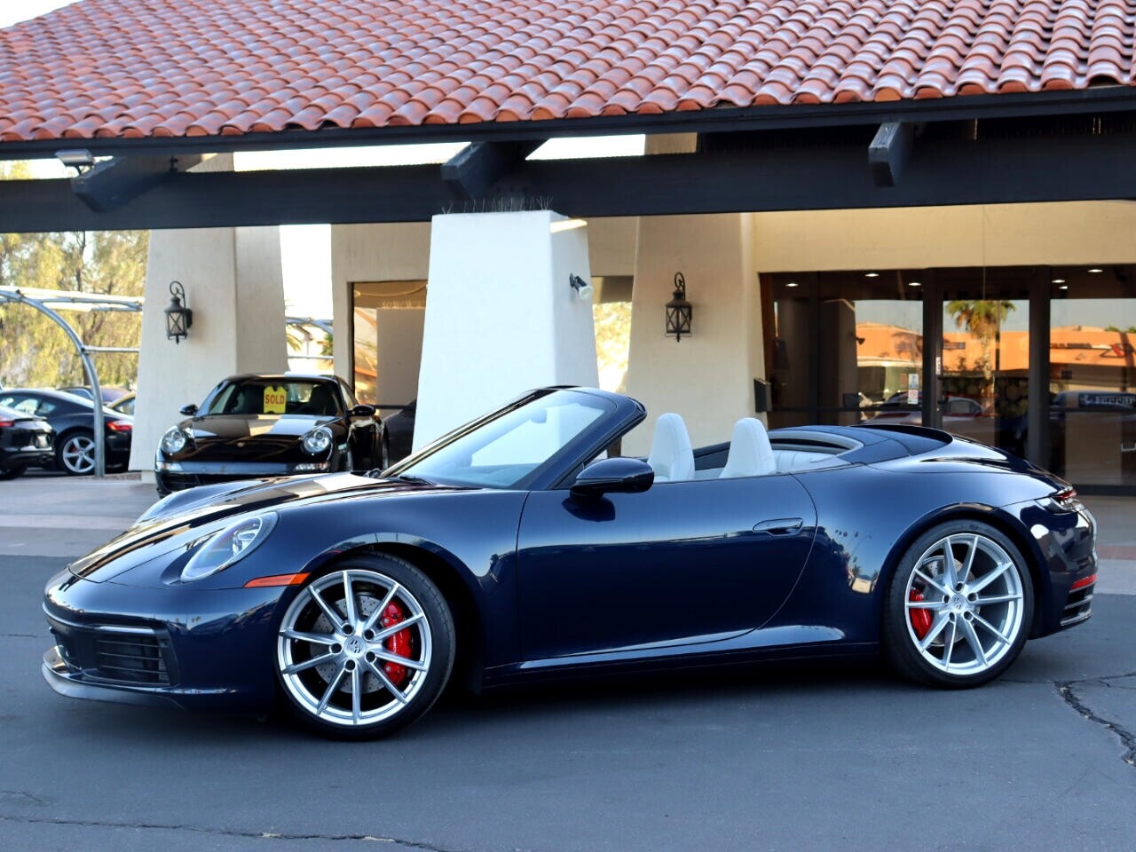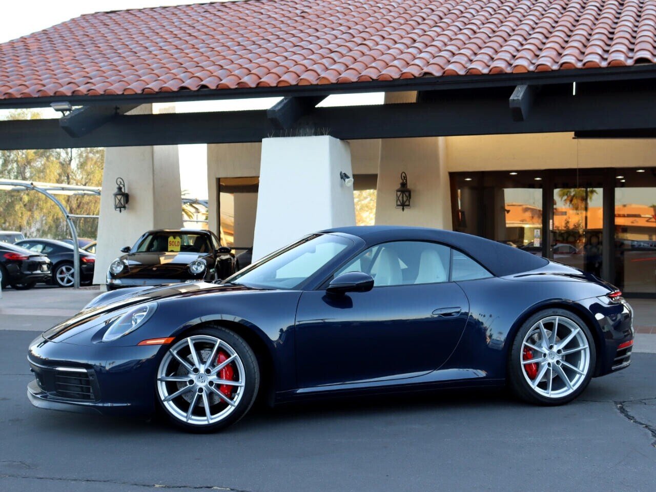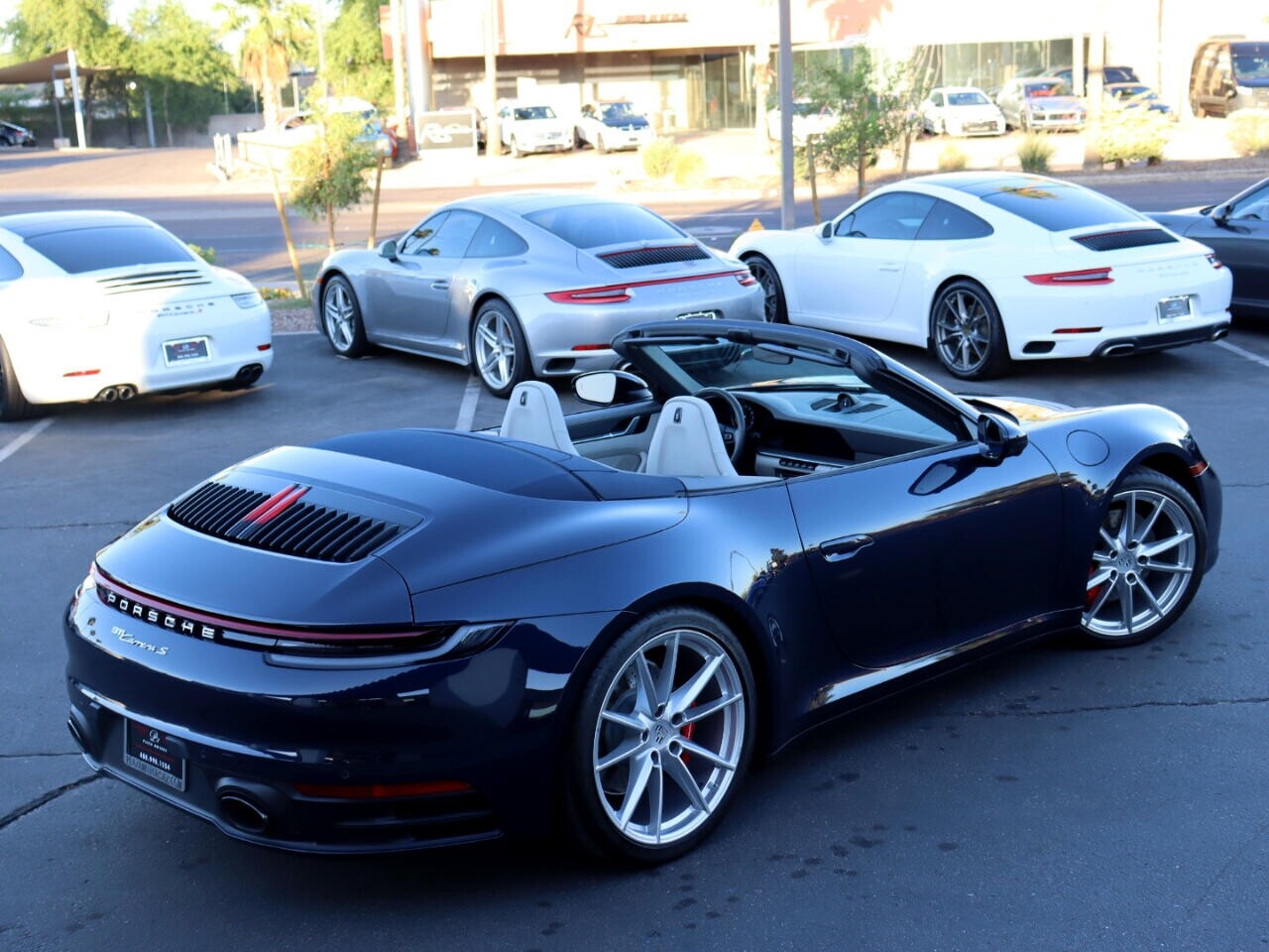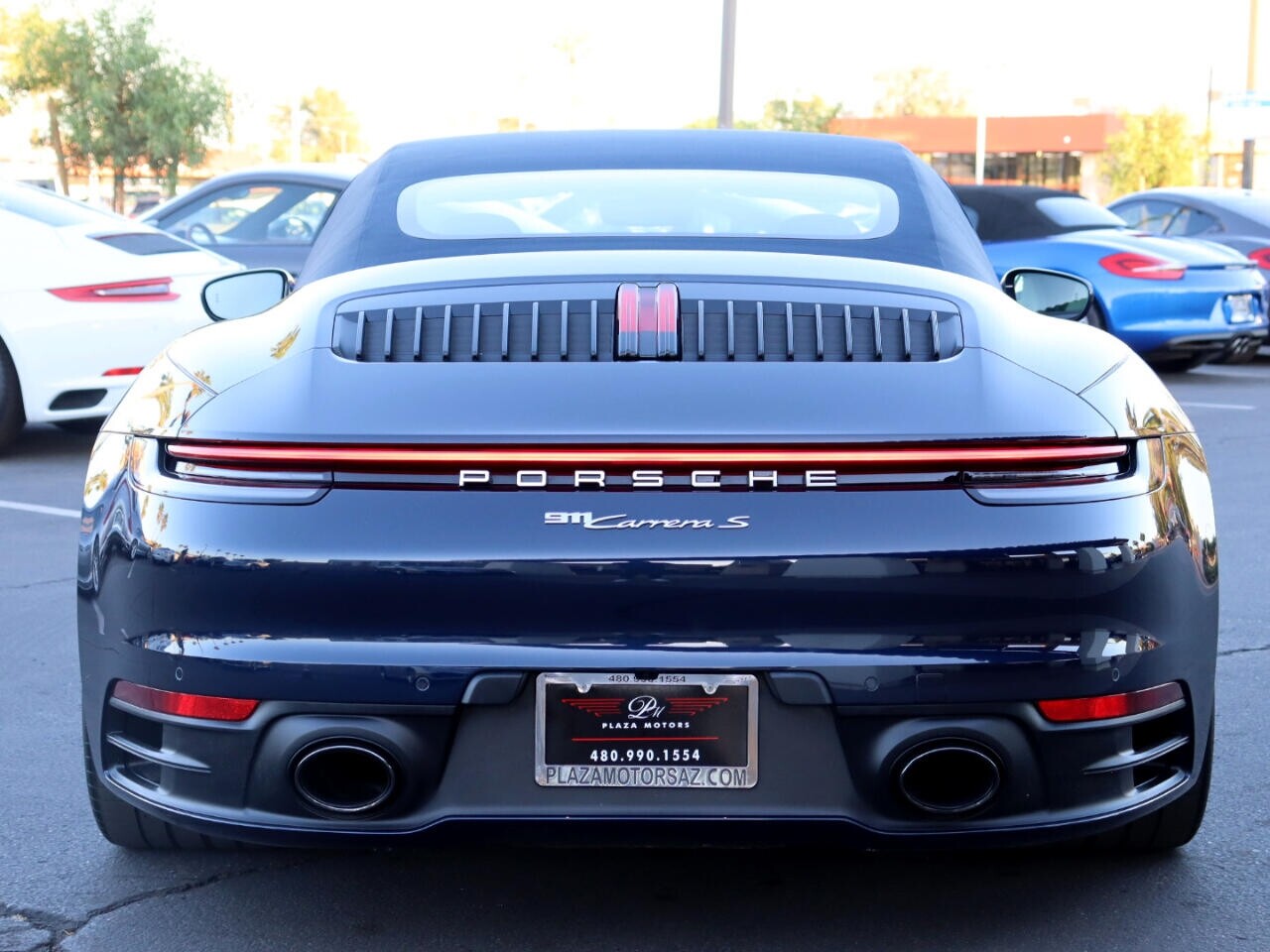 2020 Porsche 911 Carrera S Cabriolet. 3.0L Twin Turbo / 443 HP, 8-Speed PDK Automatic Transmission. Night Blue Metallic w/Two Tone Slate Gray/Chalk Full leather interior and Blue Convertible Top. Original MSRP $155,320. Highly Optioned Porsche with the Sport Package, Premium Package, Front Axle Lift System, Apple Car Play, Navigation, Bose Surround Sound, SAT/HD Radio, Bluetooth, Streaming Audio, Power Tilt/Telescope Steering Wheel, 14-Way Power Memory Seats, Heated and Ventilated Seats, Seat Belts in Chalk, Interior Strip in Leather, Sport Chrono Package, Sport Exhaust, Sport Suspension, Lane Keeping Assist, Lane Change Change Assist, Adaptive Cruise Control, Park Assist Front and Rear w/Surround View Camera, Back-Up Camera, Power Folding Mirrors, Power Steering Plus, Proximity Key w/Key-Less Start, LED Headlights w/PDLS, 20/21 Inch Alloy Wheels and much more. Only 8k miles. Clean Car Fax. Absolutely gorgeous car. Runs and drives great. We have Financing and Extended Warranties available. Please give us a call or visit our website at for more information. Visit Plaza Motors online at to see more pictures of this vehicle or call us at855-205-3475 today to schedule your test drive.