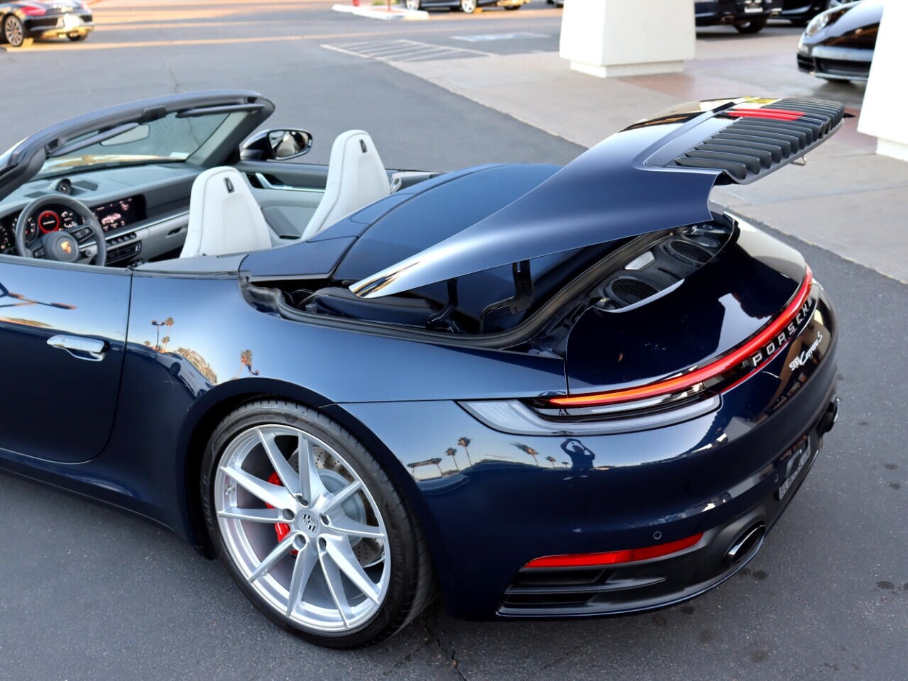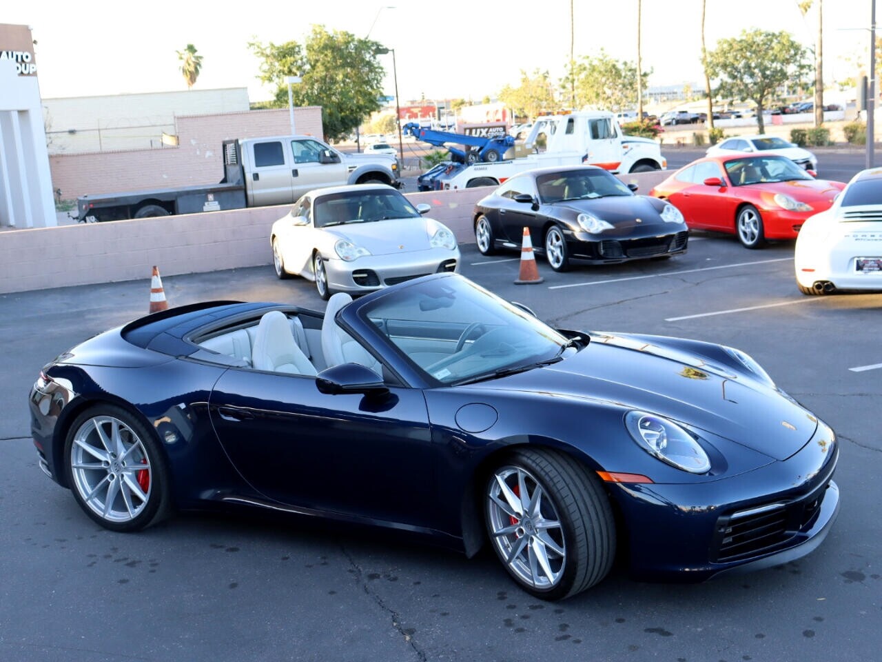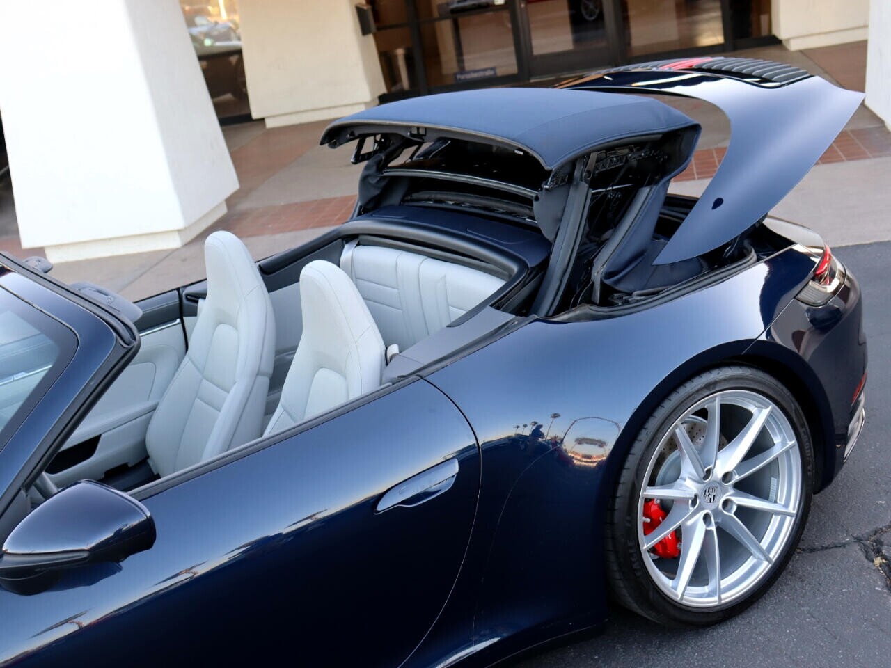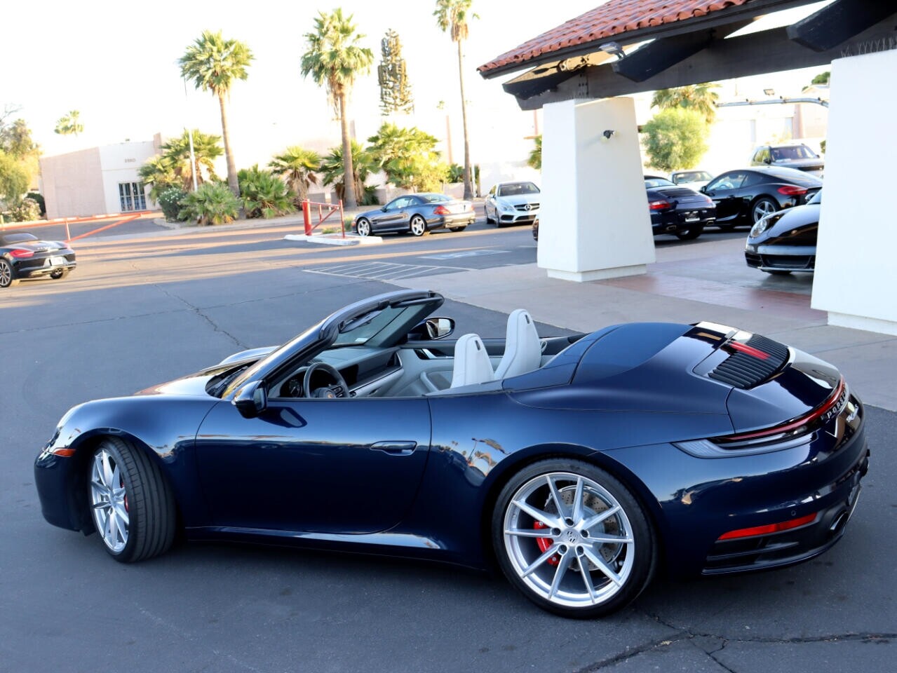 2020 Porsche 911 Carrera S Cabriolet. 3.0L Twin Turbo / 443 HP, 8-Speed PDK Automatic Transmission. Night Blue Metallic w/Two Tone Slate Gray/Chalk Full leather interior and Blue Convertible Top. Original MSRP $155,320. Highly Optioned Porsche with the Sport Package, Premium Package, Front Axle Lift System, Apple Car Play, Navigation, Bose Surround Sound, SAT/HD Radio, Bluetooth, Streaming Audio, Power Tilt/Telescope Steering Wheel, 14-Way Power Memory Seats, Heated and Ventilated Seats, Seat Belts in Chalk, Interior Strip in Leather, Sport Chrono Package, Sport Exhaust, Sport Suspension, Lane Keeping Assist, Lane Change Change Assist, Adaptive Cruise Control, Park Assist Front and Rear w/Surround View Camera, Back-Up Camera, Power Folding Mirrors, Power Steering Plus, Proximity Key w/Key-Less Start, LED Headlights w/PDLS, 20/21 Inch Alloy Wheels and much more. Only 8k miles. Clean Car Fax. Absolutely gorgeous car. Runs and drives great. We have Financing and Extended Warranties available. Please give us a call or visit our website at for more information. Visit Plaza Motors online at to see more pictures of this vehicle or call us at855-205-3475 today to schedule your test drive.