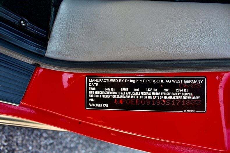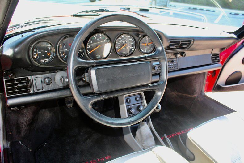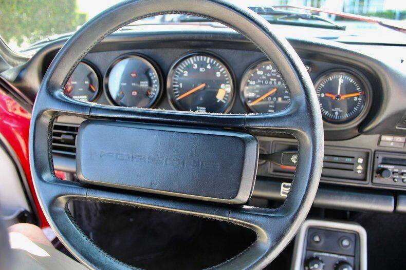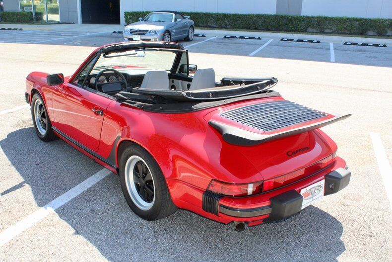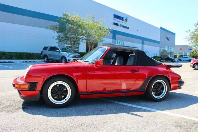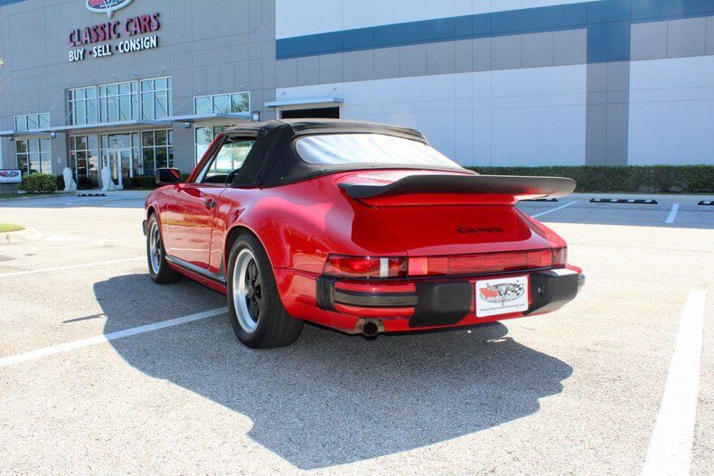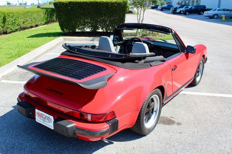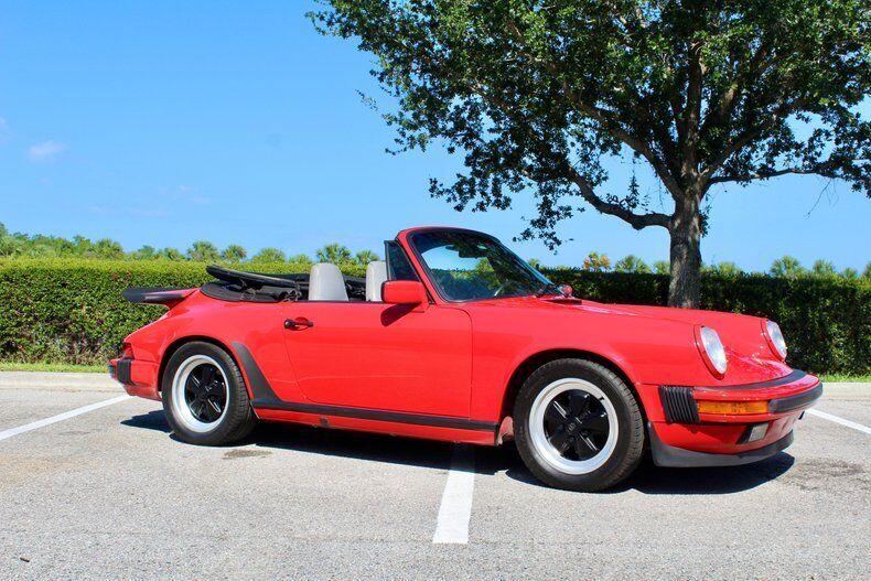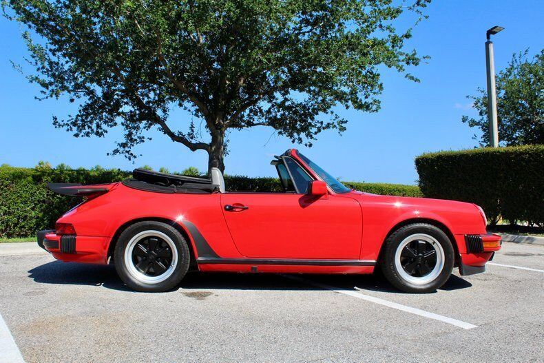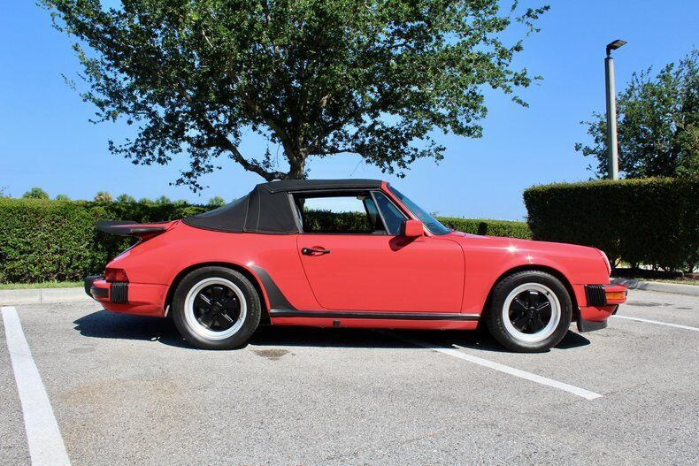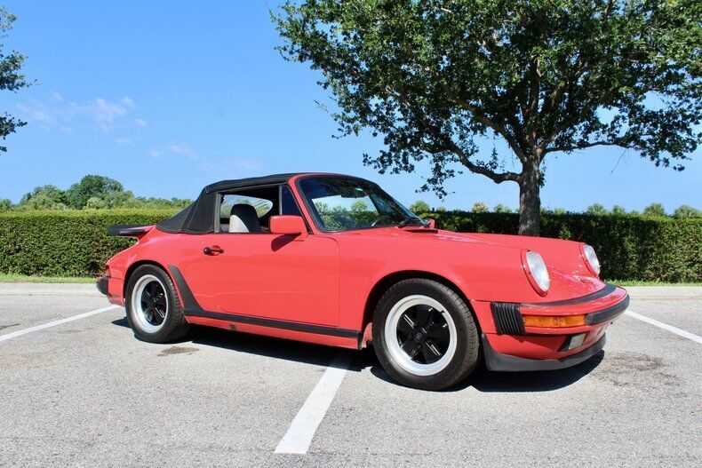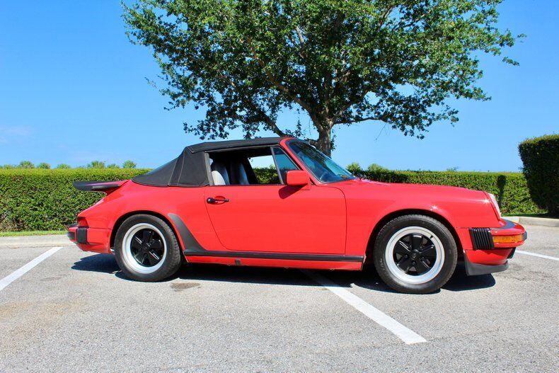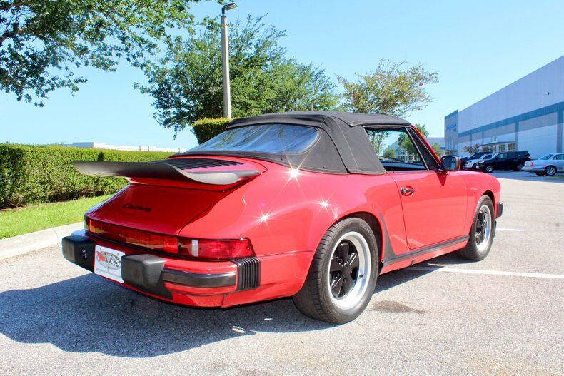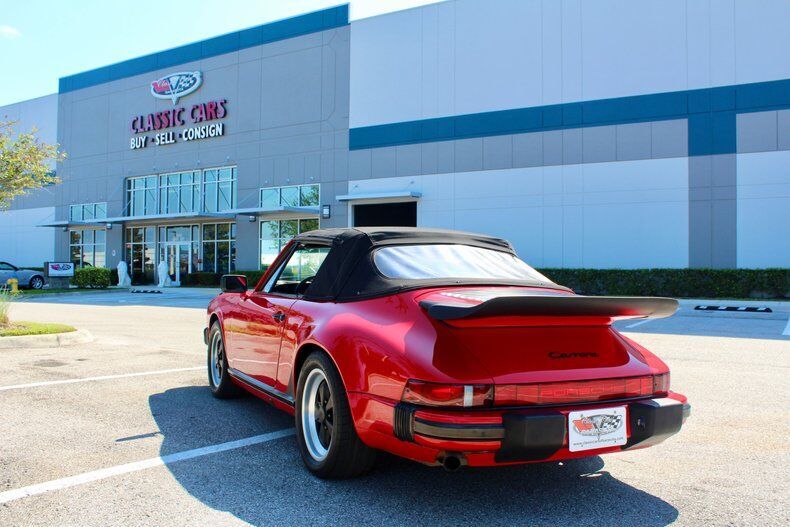 1988 Porsche 911 Carrera 2dr Cabriolet This Porsche 911 is a 3 owner, clean CarFax vehicle. Vehicle has a Red exterior over black leather interior and black cloth convertible soft top. It is powered by a flat 6, 214hp engine paired with 5-Speed manual transmission. Standard goodies included leather upholstery, air conditioning, power windows, a sunroof, and 15-inch alloys, while cruise control, 16-inch wheels, and an AM/FM/cassette stereo were popular options. For those who wanted to appear faster than they actually were, a Turbo Look appearance package was available on coupes, which provided the large whale tail and wider rear wheelwells, but not the actual turbocharger. The 3.2-liter 1984 Porsche 911 Carrera debuted hot on the heels of a very successful run of 911SC models, built from 1978 to 1983. The Carrera shared most of its visual cues with its immediate predecessor, but benefitted from added power and performance, as well as other evolutionary updates. Power output increased in 1987, up to 214 hp, with an added bump in torque as well, from 185 to 195 ft-lb. The clutch was upgraded from mechanical to hydraulic operation, and the old Getrag five-speed was replaced with a much better Getrag G50 unit with improved synchromesh. EXTERIOR: aˆc Porsche Red aˆc Whale Tale aˆc Black tire and wheels aˆc Black cloth convertible top INTERIOR: aˆc Black leather aˆc Air Conditioning aˆc AM/FM Cassette player aˆc Power windows MECHANICS: aˆc 6-cyl. 3165cc/214hp Bosch Motronic FI aˆc Power brakes aˆc Power steering UNDERCARRIAGE: aˆc Clean Call us at941-208-6886, a live person answers the phones from 9am - 9pm (EST) Financing is available on our website We can ship this vehicle worldwide door to door Our indoor showroom is located at 7910 25th Court East Unit 107 Sarasota, FL 34243