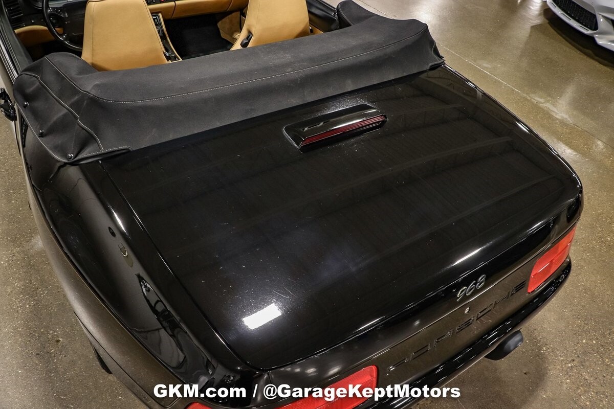 The sleek black exterior showcases the timeless design of the 968, accentuating its Porsche heritage. It exudes a sense of sophistication and sportiness that turns heads wherever it goes. The newer convertible top not only complements the exterior beautifully but also adds the thrill of open-air driving to this classic.