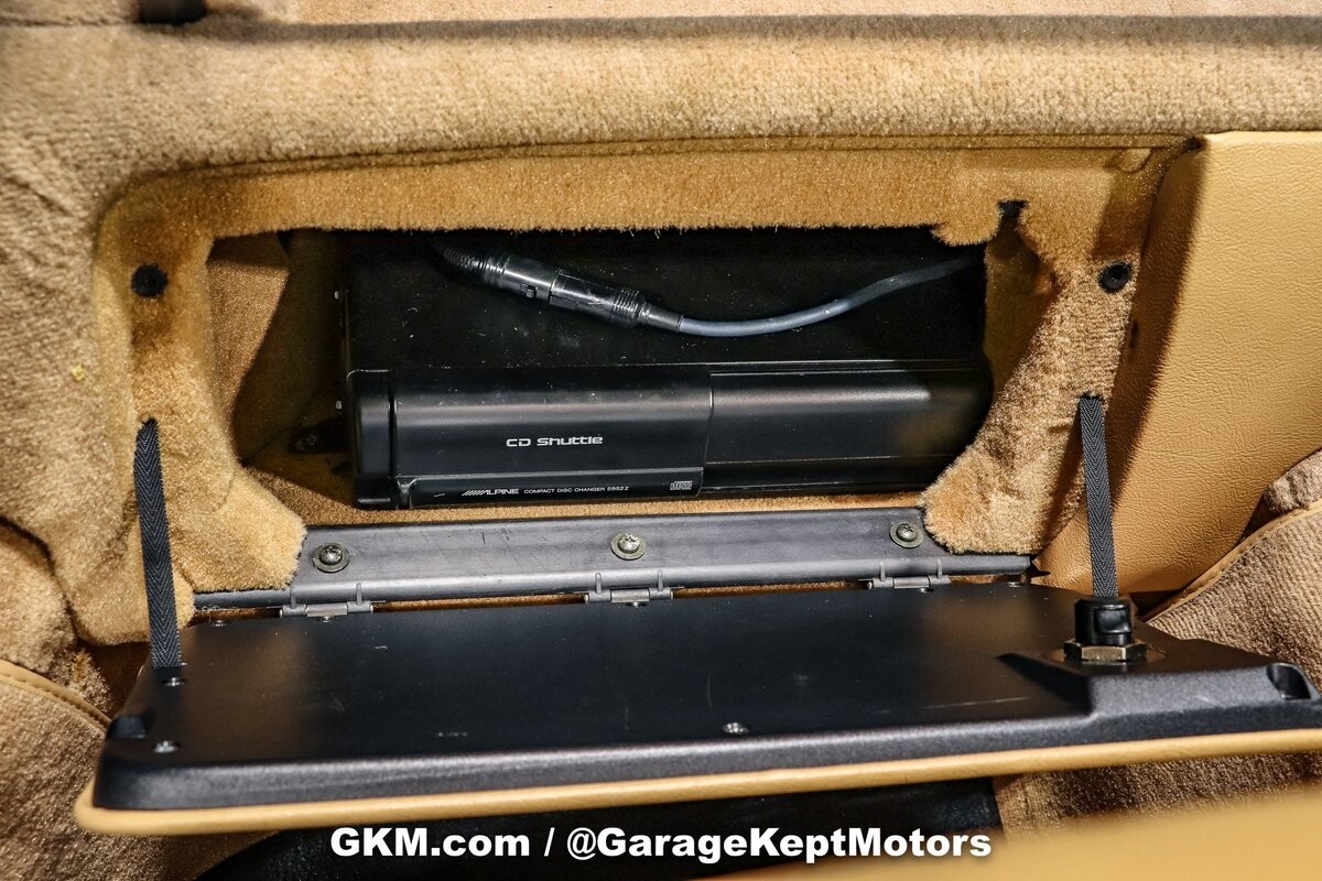 Inside, a tasteful tan interior creates an inviting and luxurious atmosphere. The addition of an Alpine radio with Bluetooth functionality seamlessly combines modern convenience with classic charm, offering both an enjoyable driving experience and entertainment on the go.