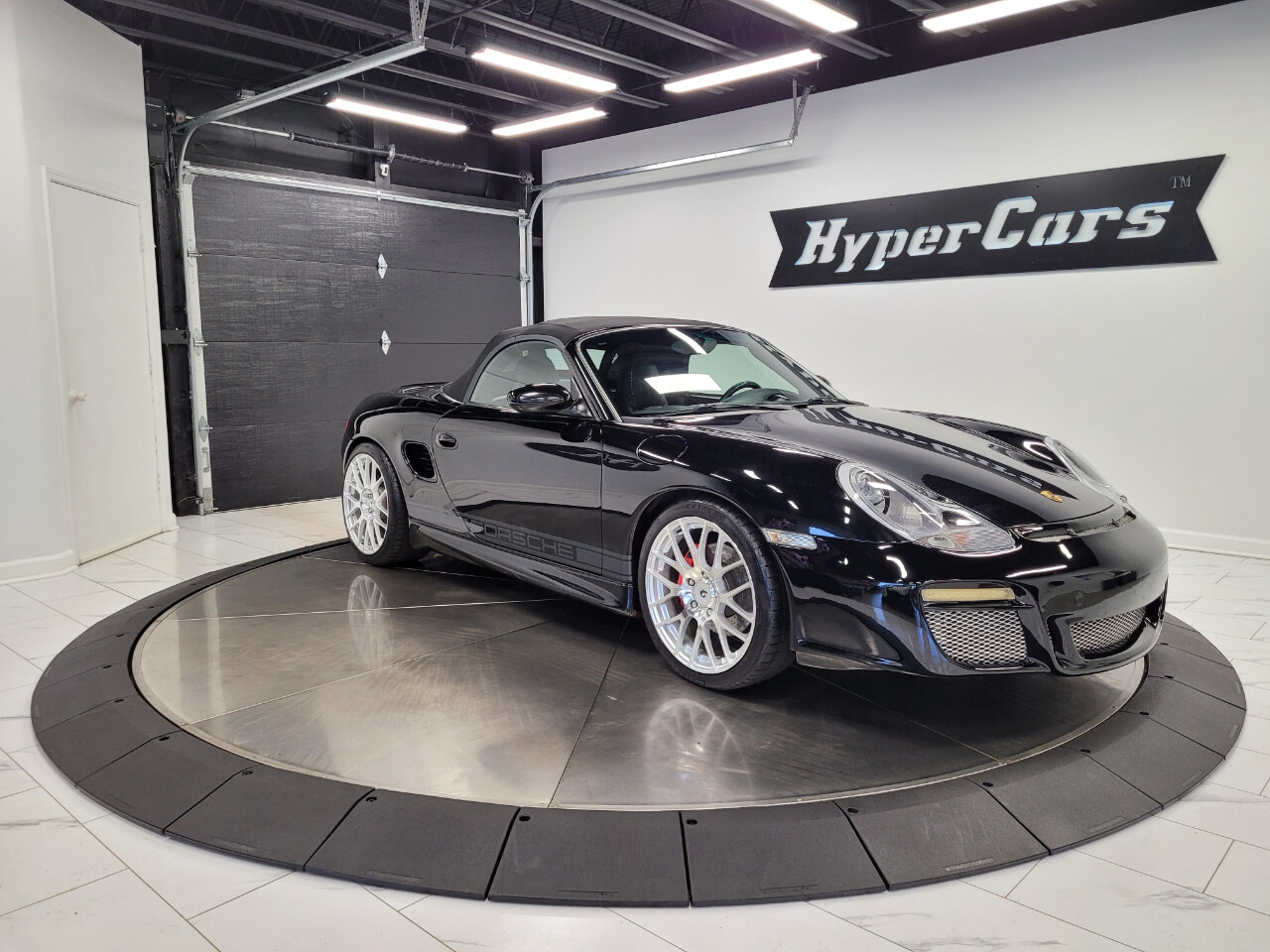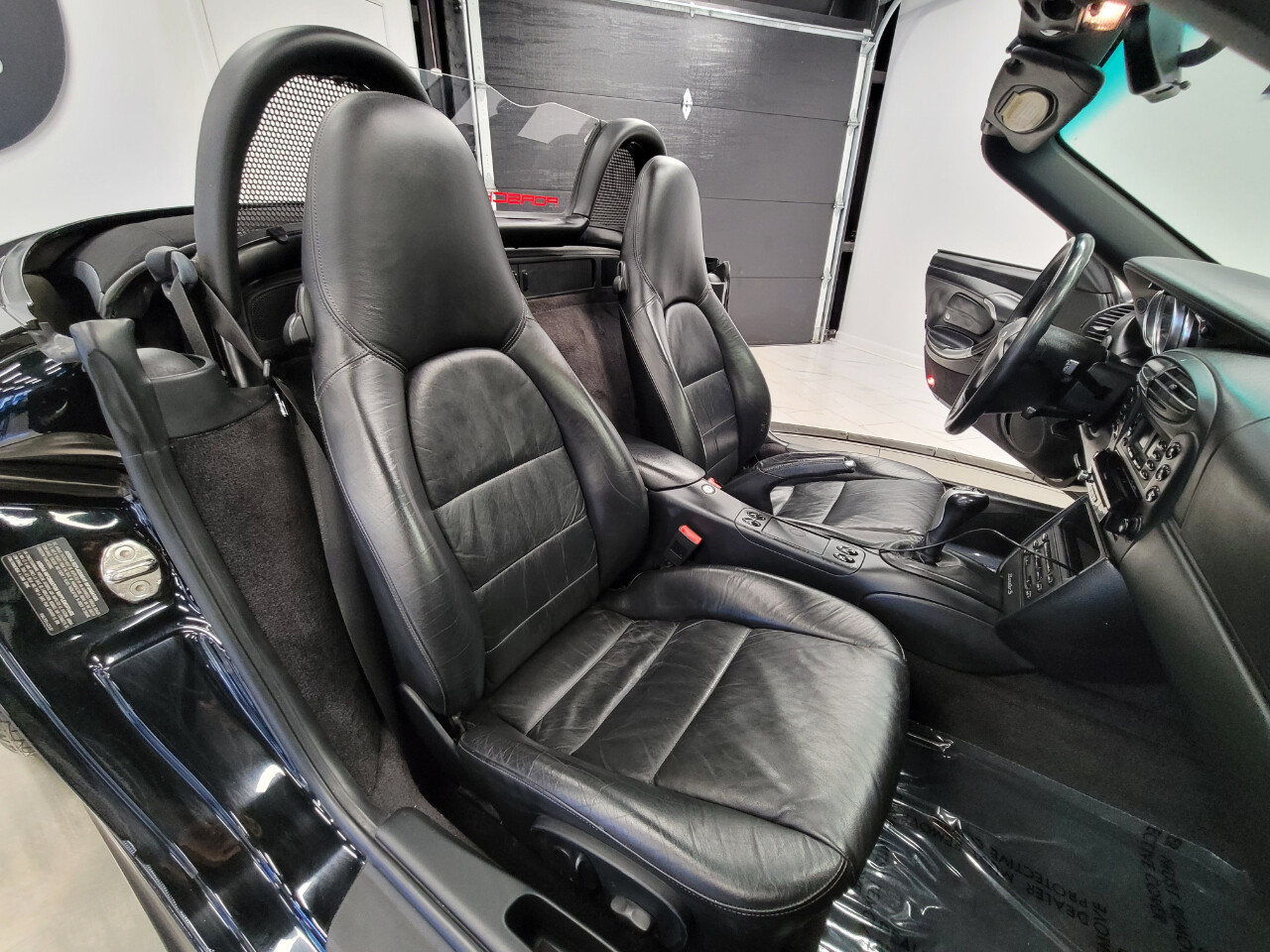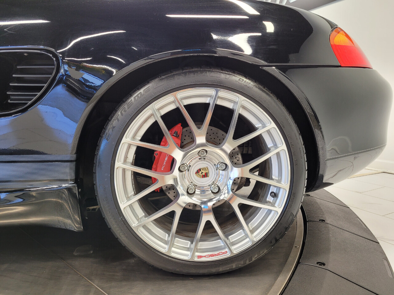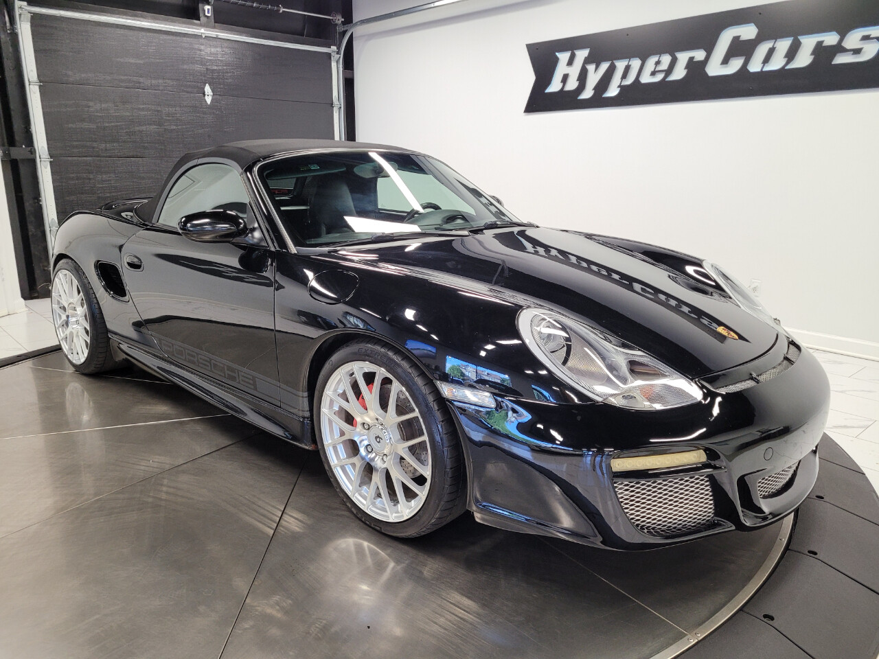 Powered convertible, 6 speed manual transmission, premium leather interior, upgraded Porsche wheels, GT3 style upgraded front bumper, and aftermarket exh.