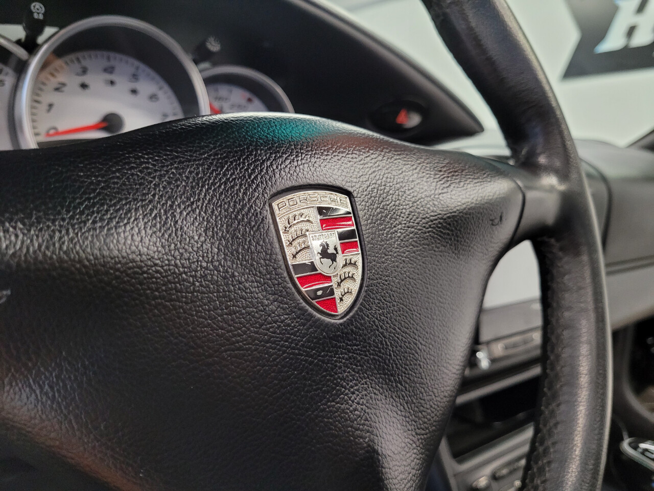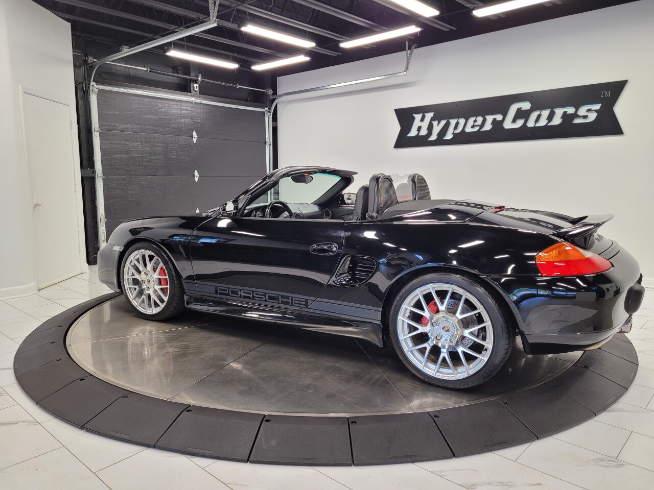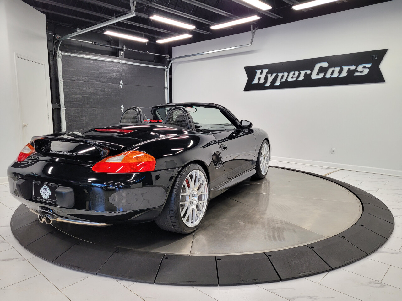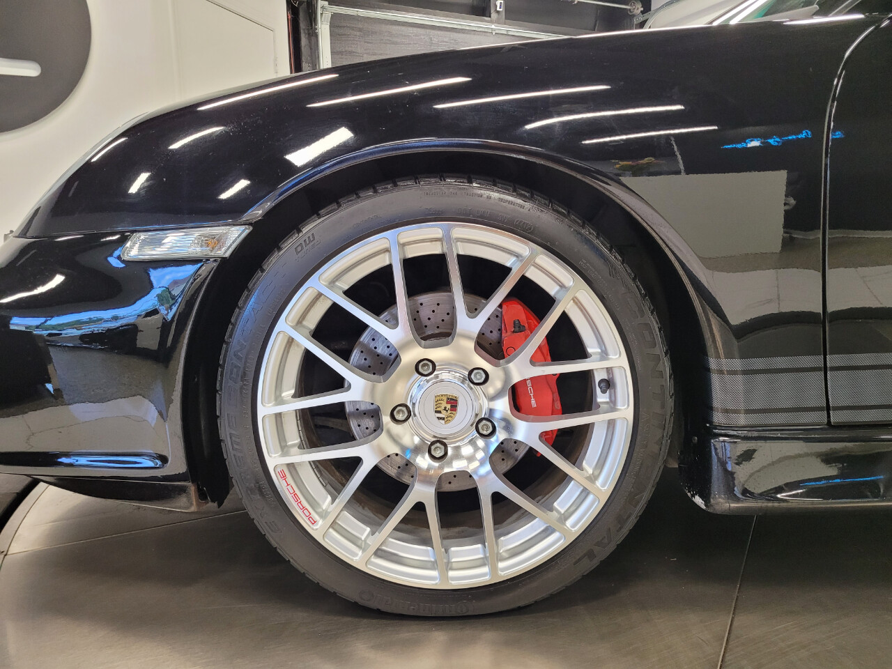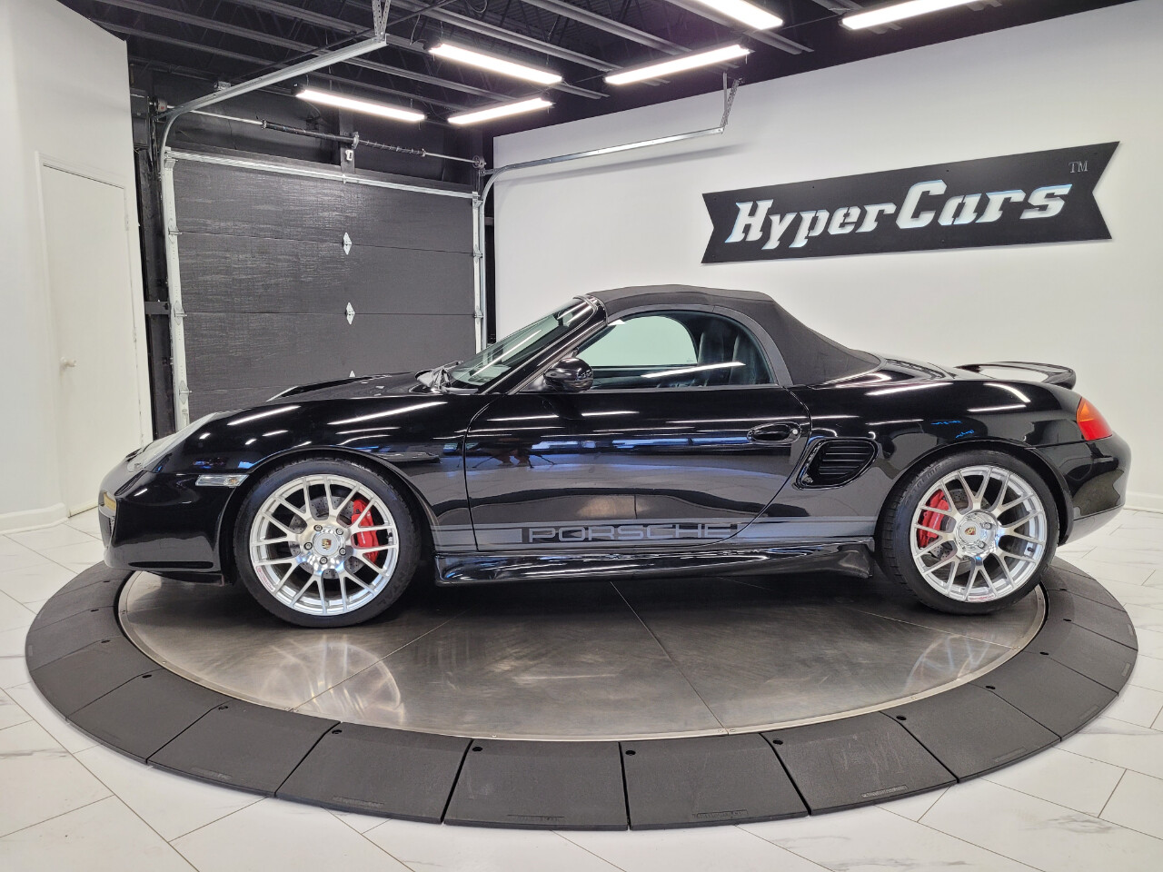 Powered convertible, 6 speed manual transmission, premium leather interior, upgraded Porsche wheels, GT3 style upgraded front bumper, and aftermarket exh.