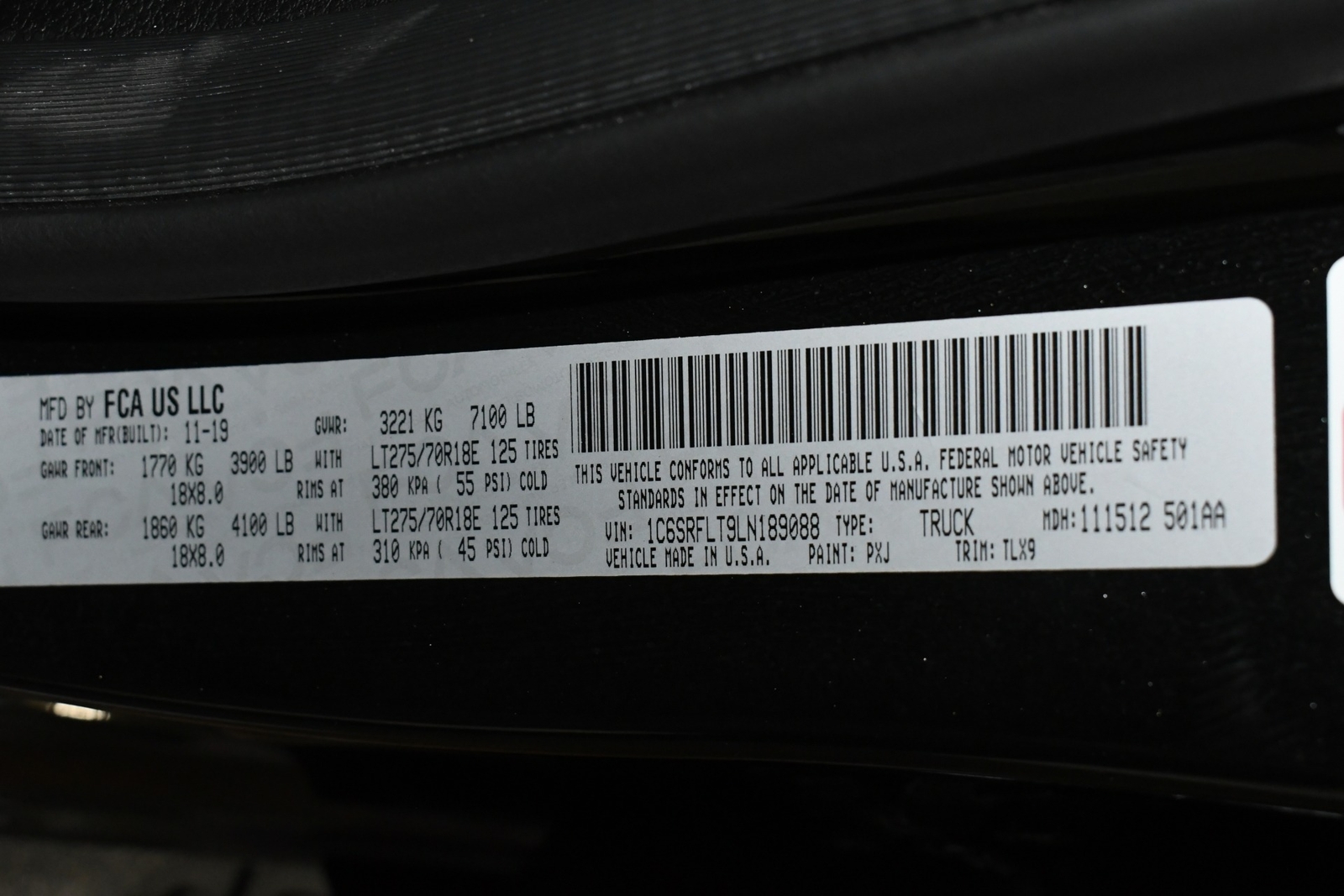 - Matching 275/70/18 Tires w/80-85% Tread -