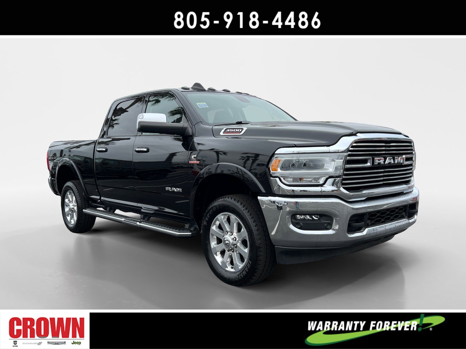 Certified. Diamond Black Crystal Pearlcoat 2022 Ram 3500 Laramie 4WD 6-Speed Automatic 6.7L I6 ** 1 Owner Clean CarFax **, 10 Speakers, 115V Auxiliary Rear Power Outlet, 20 x 8 Polished Aluminum Wheels, 4G LTE Wi-Fi Hot Spot, 8.4 Touchscreen Display, Active Noise Control System, Adjustable pedals, Apple CarPlay, Apple CarPlay/Android Auto, Automatic temperature control, Bluetooth Handsfree Phone & Audio, Center Hub, Chrome Flat Wheel-to-Wheel Side Steps, Clearance Lamps, Compass, Connectivity - US/Canada, Front dual zone A/C, Front fog lights, Fully automatic headlights, Garage door transmitter, Google Android Auto, GPS Antenna Input, Heated door mirrors, Heated Front Seats, Heated Steering Wheel, Integrated Center Stack Radio, Integrated Voice Command w/Bluetooth, Leather Trim 40/20/40 Bench Seat, Outside temperature display, Overhead console, ParkView Rear Back-Up Camera, Power 8-Way Adjustable Passenger Seat, Power driver seat, Quick Order Package 2HH Laramie, Radio: Uconnect 5 w/8.4 Display, Rear 60/40 Folding Seat, Rear window defroster, Remote keyless entry, Security system, Selectable Tire Fill Alert, SiriusXM Satellite Radio, Split folding rear seat, Steering wheel mounted audio controls, Vendor Painted Cargo Box.FCA US LLC Certified Pre-Owned Details:* Roadside Assistance* 125 Point Inspection* Powertrain Limited Warranty: 84 Month/100,000 Mile (whichever comes first) from original in-service date* Limited Warranty: 3 Month/3,000 Mile (whichever comes first) after new car warranty expires or from certified purchase date* Includes First Day Rental, Car Rental Allowance, and Trip Interruption Benefits. SiriusXM 3 month trial subscription.* Warranty Deductible: $100* Vehicle History* Transferable WarrantyHere at Crown Dodge Chrysler Jeep RAM, we believe that great service means more than just offering our new Dodge, Chrysler, Jeep, and RAM lineup. We believe that great service also includes helpful advice, friendly car financing, and the highest quality parts and repairs for your car. Our staff works hard to make your full automotive experience at our car dealership in Ventura, CA enjoyable, and we look forward to helping you today! All vehicles at Crown Dodge have our SWAT security system $995,Clear Shield $395, Pulse $395, Wheel Locks $395, Windshield Protection $995, Nitro Fill $499, Screen Protector $395 and $1295 Paint/Fabric Protection pre-installed. Prices on the website do not include dealer-added equipment. Discounts include $2,000 Trade-In Dealer Assist Cash. Must trade in a 2015 or newer vehicle on a retail purchase. Trade-in must have less than 15,000 miles on average per year stated on Carfax Report, clean title, and Clean vehicle history report. Expires 02/19/2024. Expires 02/29/2024.