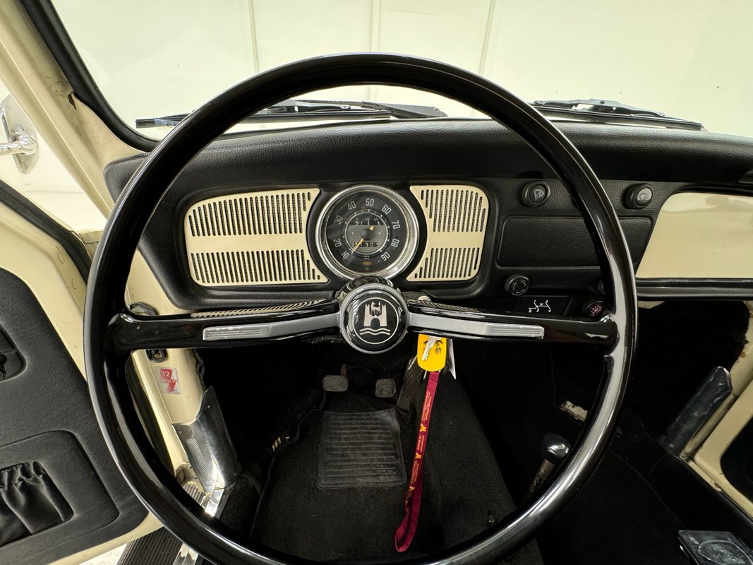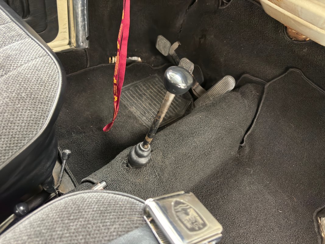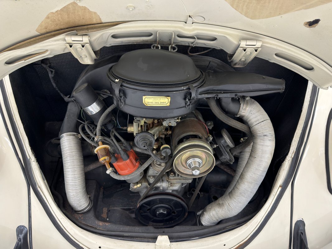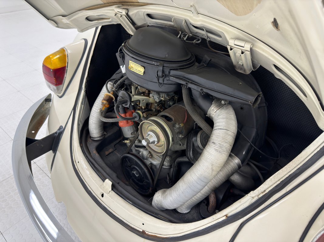 Out back, we pop the rear engine cover to find a very clean 1600cc flat 4 cylinder powerplant fueled by a 1-barrel carburetor and tied to a 4-speed manual transmission which keeps the spin to the back and 4.125 gears. Drum brakes are on all four wheels.
