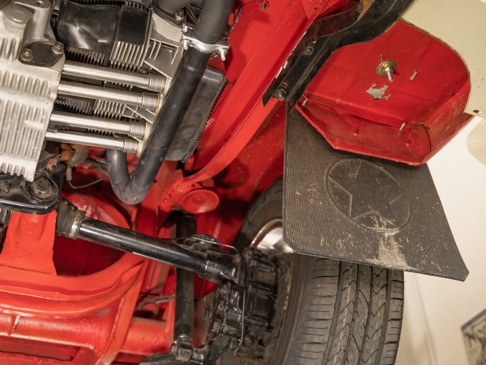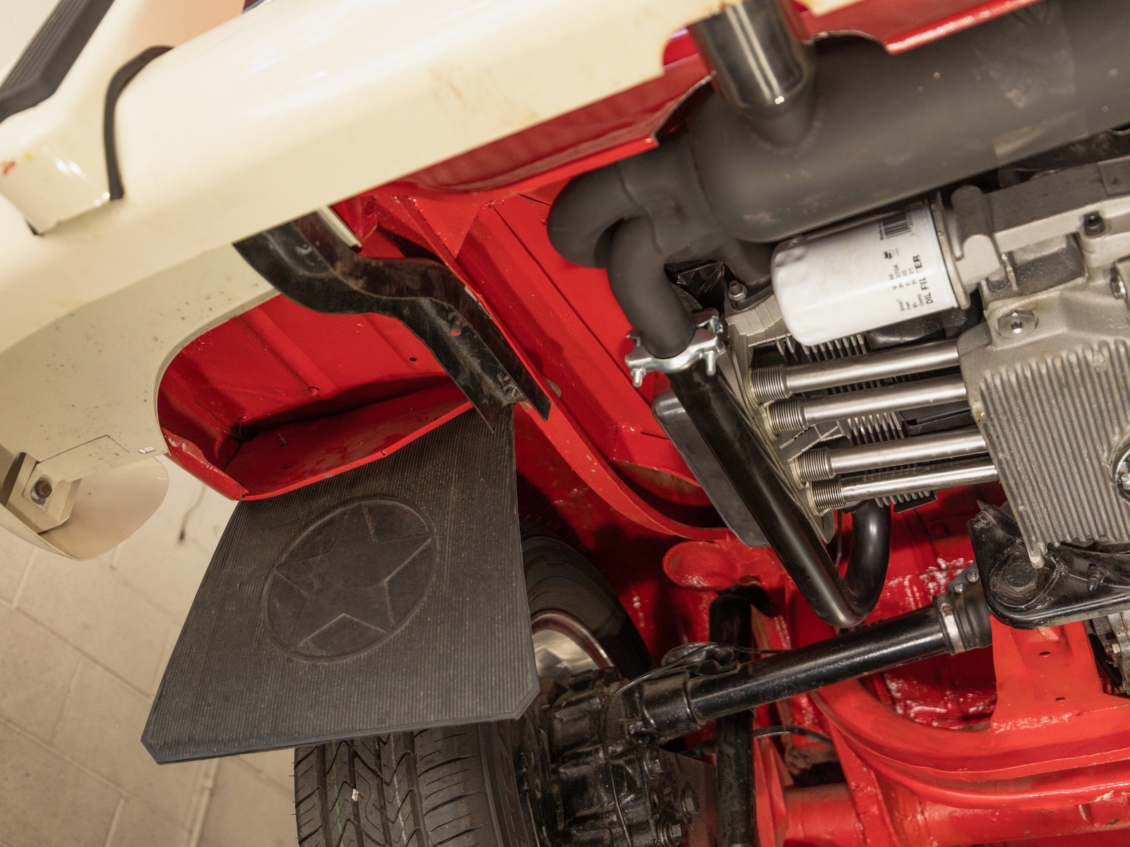 This Brazilian-made 23-window bus with a third headlight option is powered by a 1830cc engine paired with a 4-speed manual transmission. It is equipped with a new clutch assembly, dual carburetors, a new alternator and a new exhaust header. The bus rolls on new 15x6-inch polished aluminum wheels wrapped in new tires. It features pop-out Safari front windows, as well as front and rear roof racks with a sliding black canvas top. The interior is gray and white with third-row seating and curtains on the windows.