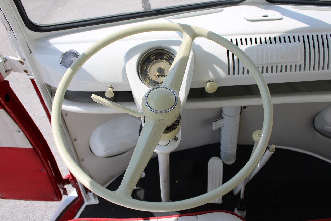 Step back in time with this iconic 1965 Volkswagen Kombi T1, a classic symbol of freedom and adventure. This vintage beauty boasts a striking red and white exterior that captures the essence of the 1960s, making it a head-turner wherever it goes. Complementing its vibrant exterior is a pristine white interior, offering a clean and timeless look that enhances the overall charm of this beloved vehicle.
