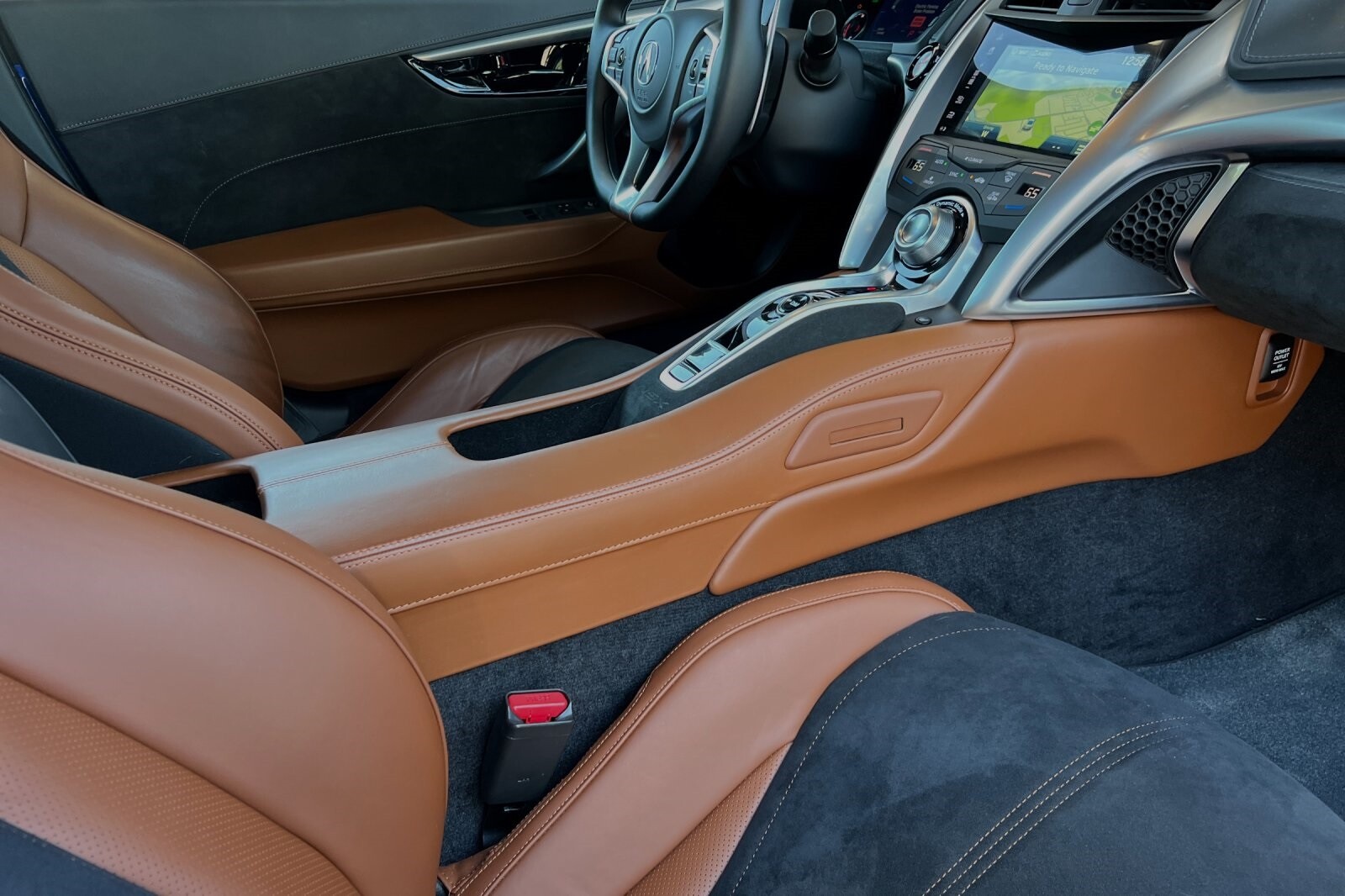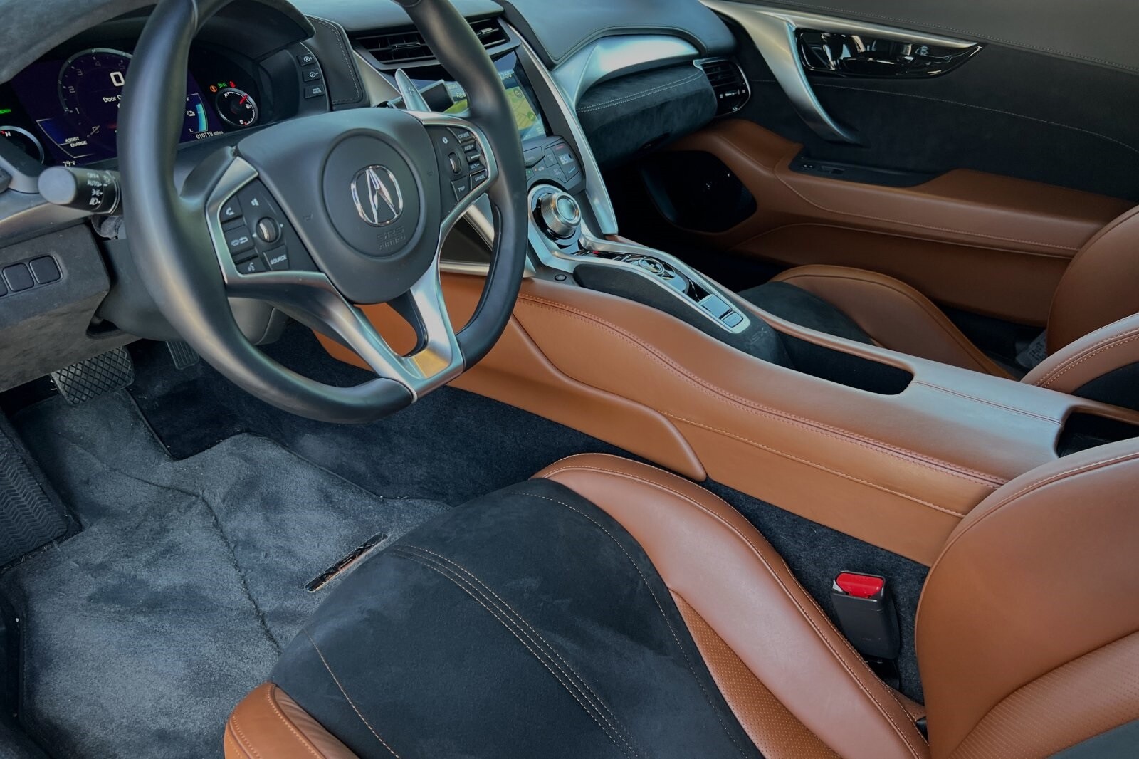 This Porsche San Luis Obispo 2017 Blue Acura NSX AWD is well equipped and includes these features and benefits: Leather, 4-Wheel Disc Brakes, 8 Speakers, ABS brakes, Adaptive suspension, Air Conditioning, Alloy wheels, AM/FM radio, Apple CarPlay/Android Auto, Auto-dimming Rear-View mirror, Automatic temperature control, Brake assist, Bumpers: body-color, Compass, Delay-off headlights, Dual front impact airbags, Dual front side impact airbags, Electronic Stability Control, Exterior Parking Camera Rear, Four wheel independent suspension, Front anti-roll bar, Front Bucket Seats, Front dual zone A/C, Front reading lights, Garage door transmitter: HomeLink, Heated door mirrors, Illuminated entry, Knee airbag, Low tire pressure warning, Manual Sport Seats, Milano Leather/Alcantara Seat Trim, Occupant sensing airbag, Outside temperature display, Overhead airbag, Panic alarm, Power door mirrors, Power steering, Power windows, Premium Audio System, Radio data system, Rain sensing wipers, Rear anti-roll bar, Rear window defroster, Remote keyless entry, Security system, Speed control, Speed-sensing steering, Speed-Sensitive Wipers, Sport steering wheel, Steering wheel mounted audio controls, Tachometer, Telescoping steering wheel, Tilt steering wheel, Traction control, Trip computer, Turn signal indicator mirrors, Variably intermittent wipers, and Wheels: 19 x 8.5 Fr/20 x 11 Rr Alum Y-Spoke. Leather.